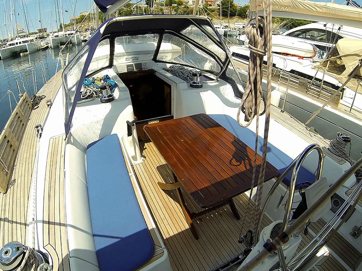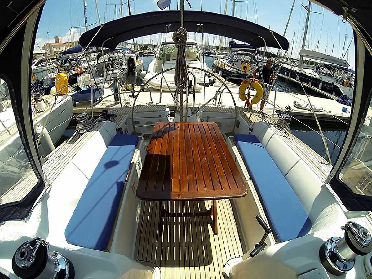 Heizung, Cockpit-Kissen, Sprayhood, Außenbordmotor, Teakdeck, Beiboot, Wi-Fi und Internet