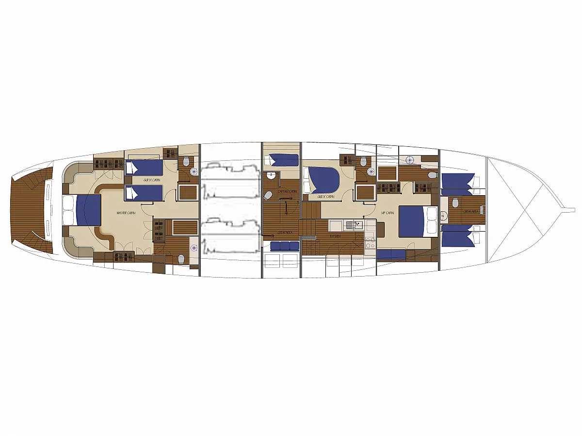 4 1 Master, 1 VIP, 1 Twin, 1 Double Cabins