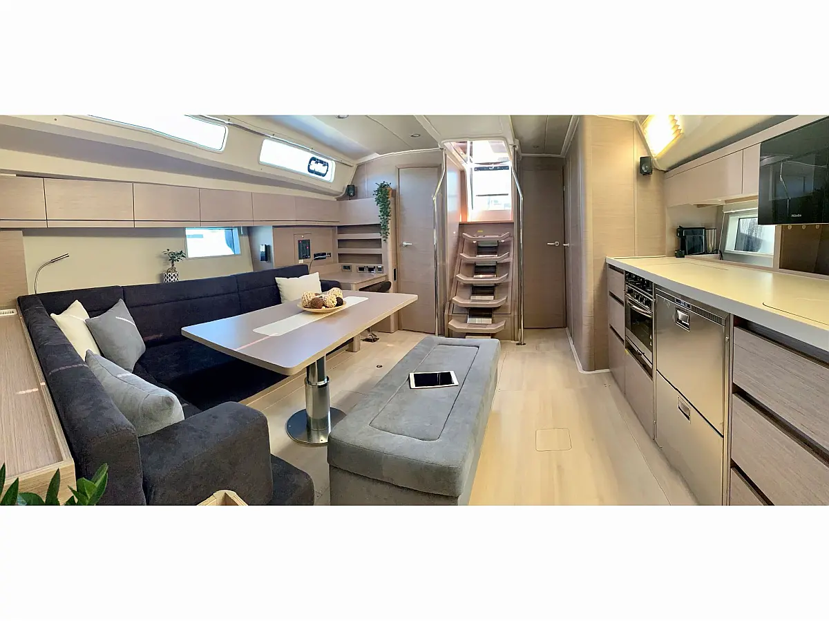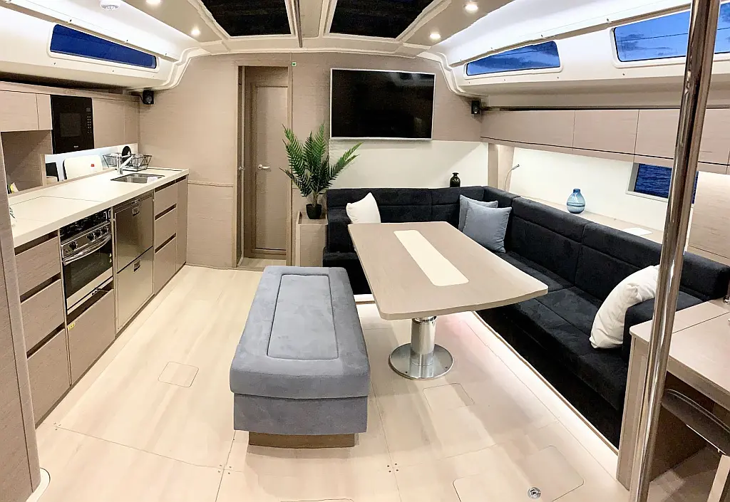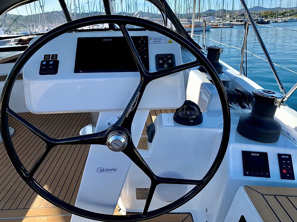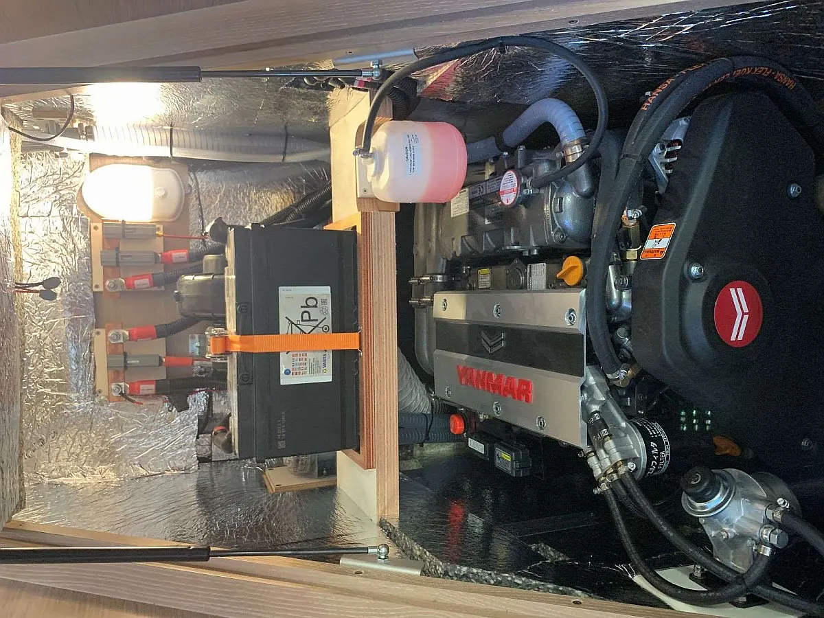Klimaanlage, Bimini, Generator, Sprayhood, Elektrische Winch (Segel), Solar-Panele, Beiboot, Außenbordmotor, Cockpit-Kissen, Grill im Cockpit, Kühlschrank, Elektrische Toilette, Inverter, Wassermacher, Wi-Fi und Internet, Kaffeemaschine, Fäkalientank, Eismaschine