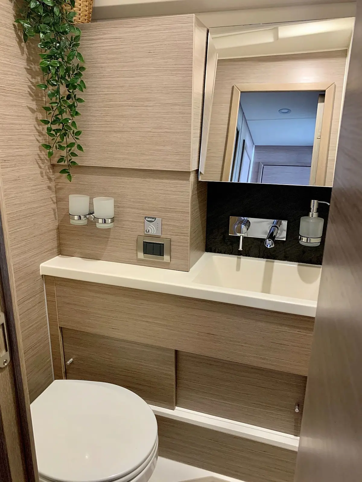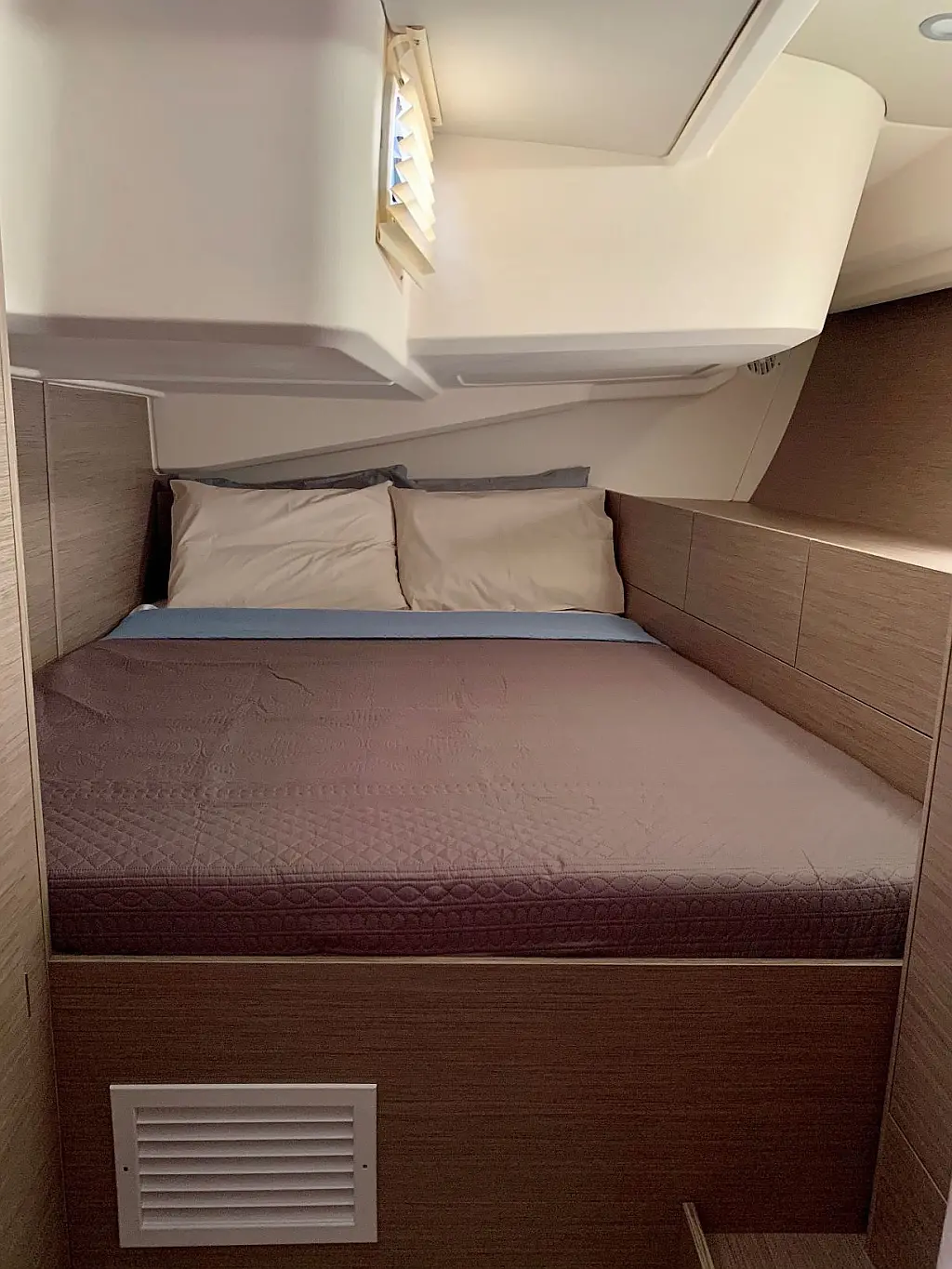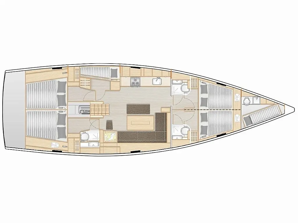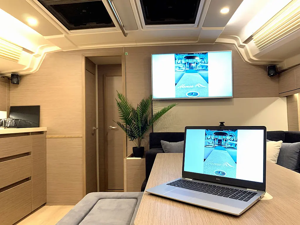 Klimaanlage, Bimini, Generator, Sprayhood, Elektrische Winch (Segel), Solar-Panele, Beiboot, Außenbordmotor, Cockpit-Kissen, Grill im Cockpit, Kühlschrank, Elektrische Toilette, Inverter, Wassermacher, Wi-Fi und Internet, Kaffeemaschine, Fäkalientank, Eismaschine