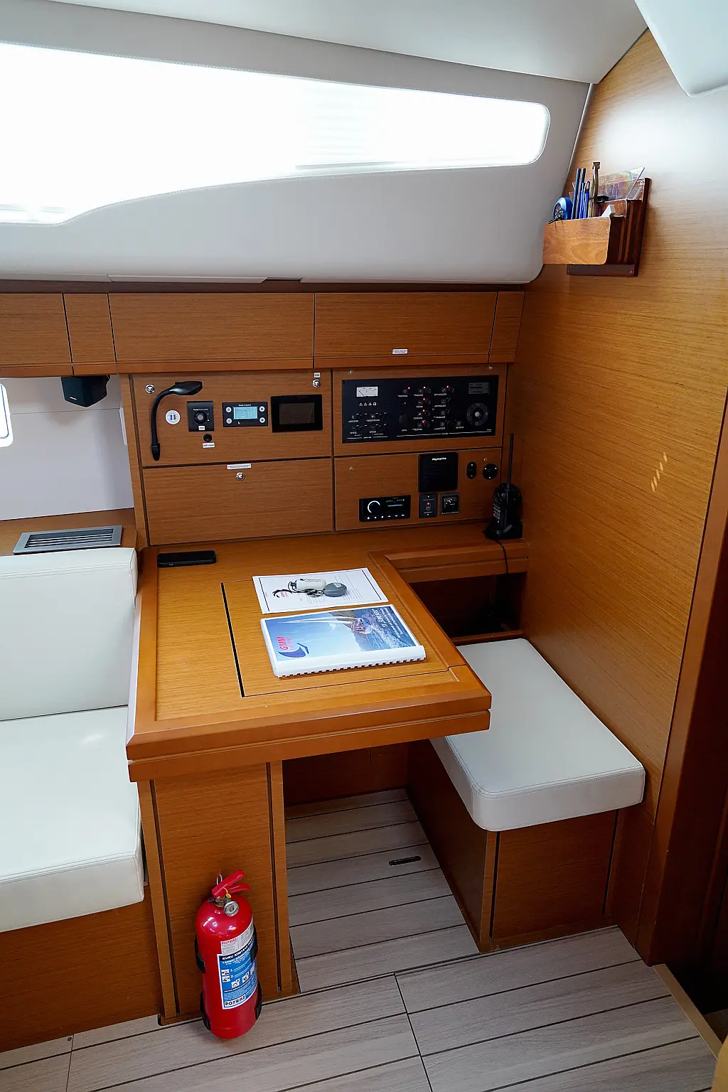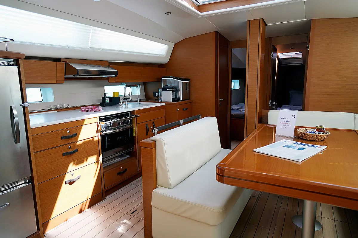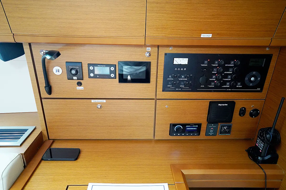 Beiboot, Elektrische Winch (Segel), Kühlschrank, Inverter, Generator, Heizung, Kaffeemaschine, Klimaanlage, Wassermacher, Elektrische Toilette, Eismaschine, Sprayhood, Bimini, Solar-Panele
