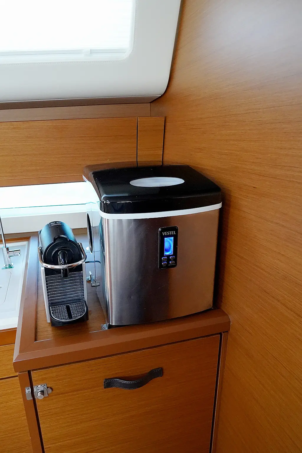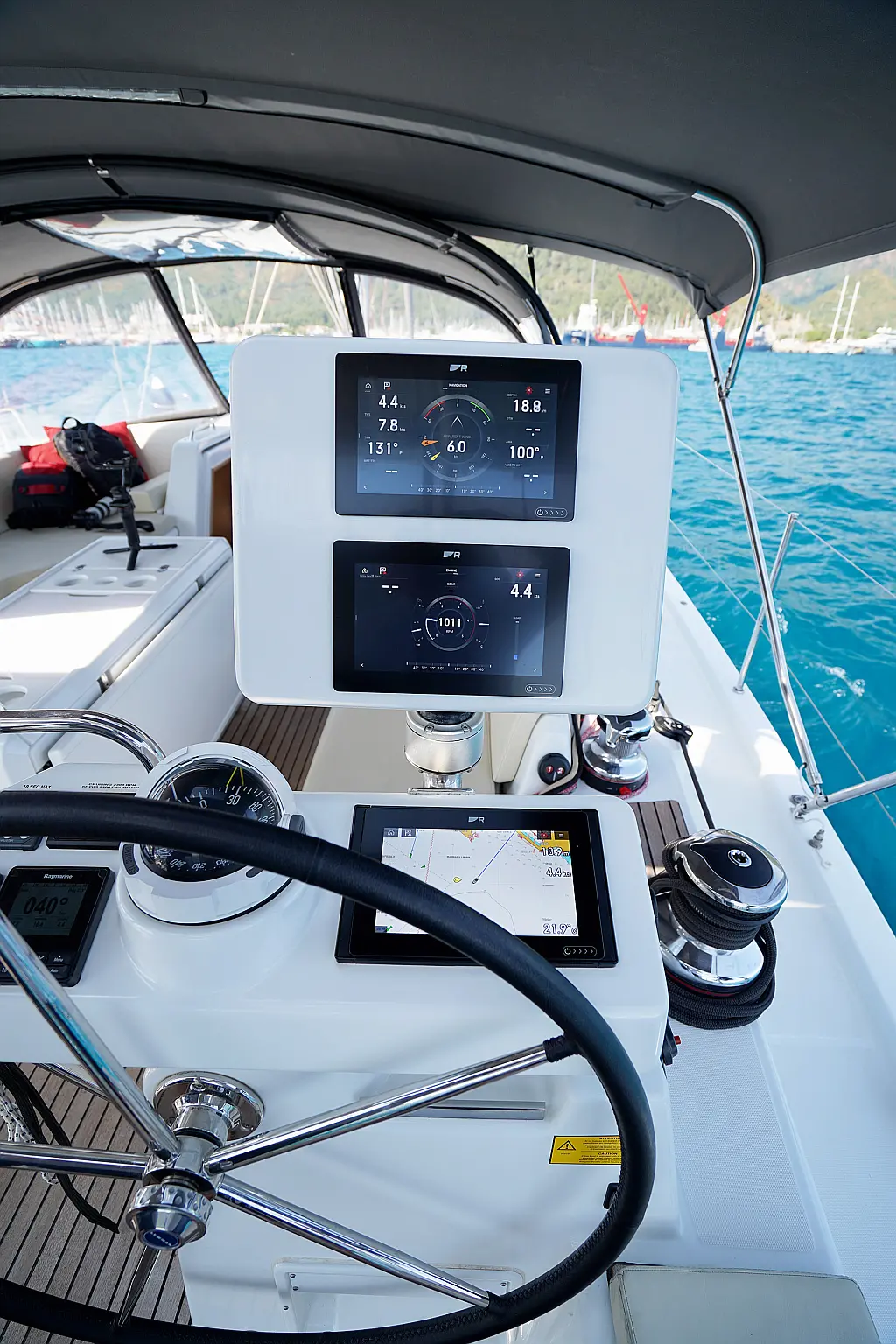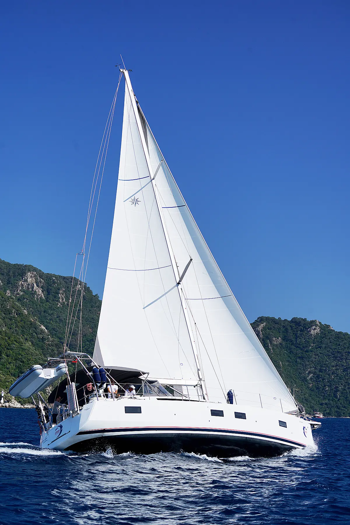 Beiboot, Elektrische Winch (Segel), Kühlschrank, Inverter, Generator, Heizung, Kaffeemaschine, Klimaanlage, Wassermacher, Elektrische Toilette, Eismaschine, Sprayhood, Bimini, Solar-Panele