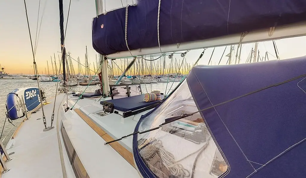 Sprayhood, Solar-Panele, Elektrische Toilette, Beiboot, Bimini, Kühlschrank, Elektrische Winch (Segel)
