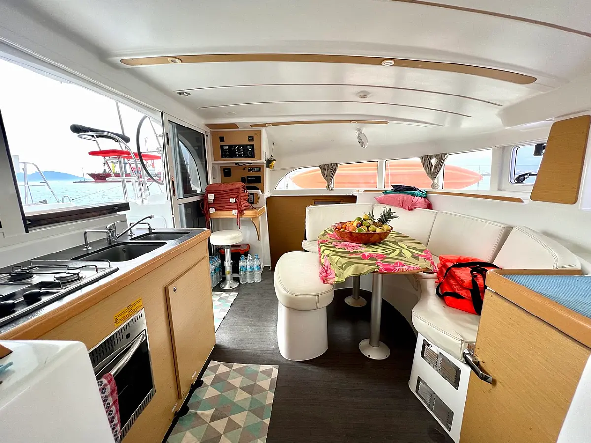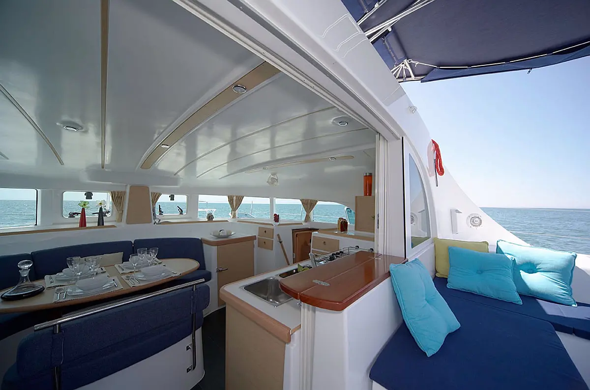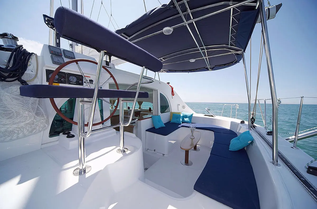 Grill im Cockpit, Bimini, Cockpit-Kissen, Wassermacher, Kühlschrank, Solar-Panele