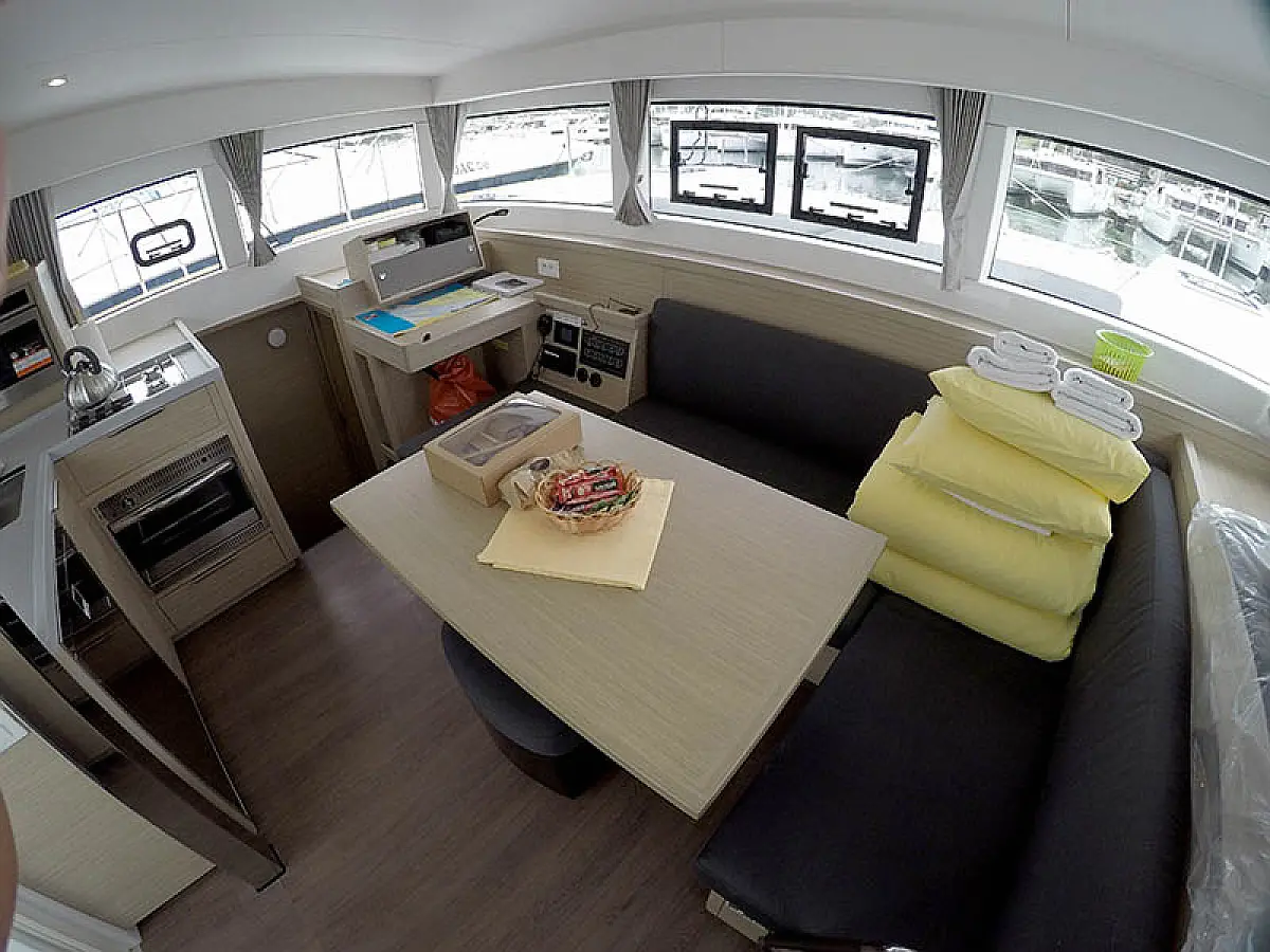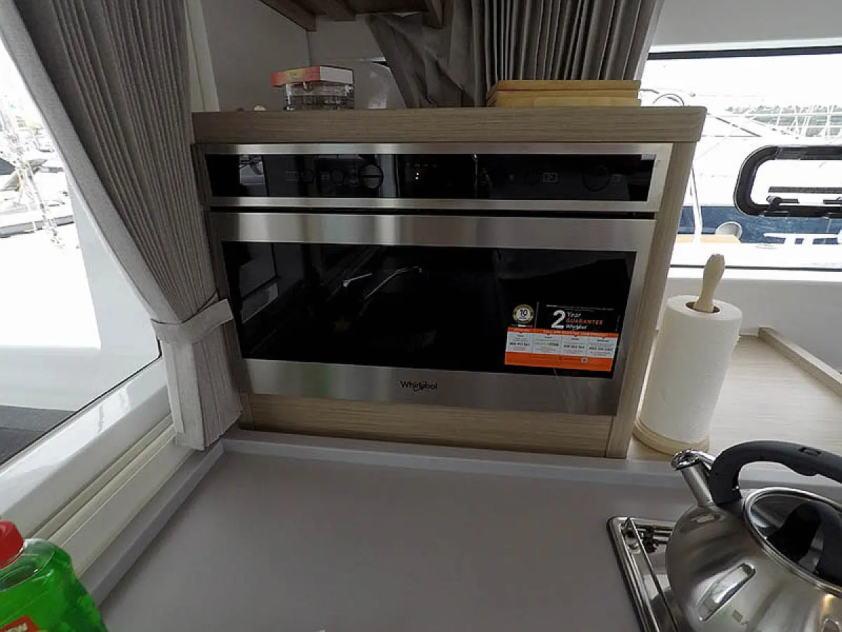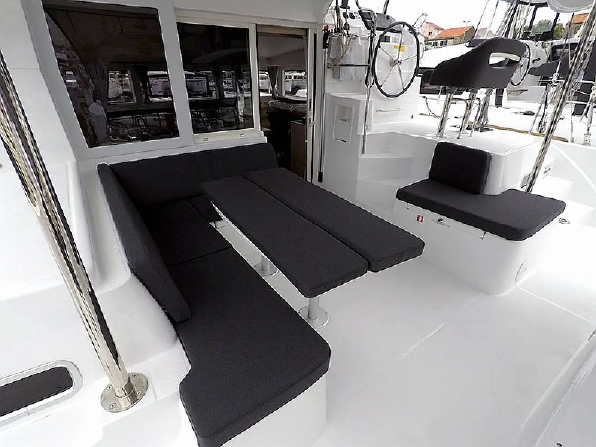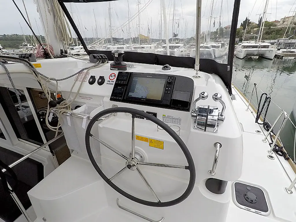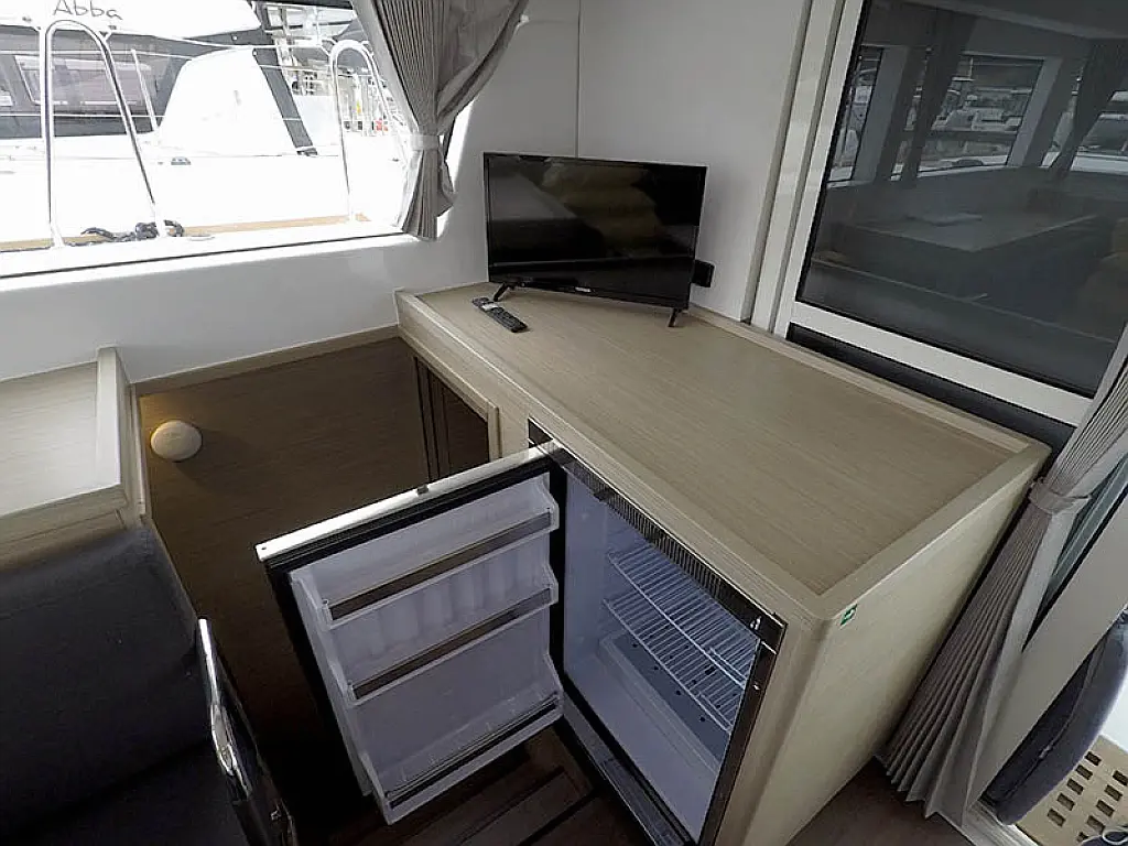 Generator, Solar-Panele, Klimaanlage, Kühlschrank, Bimini, Cockpit-Kissen, Außenbordmotor, Beiboot, Wi-Fi und Internet