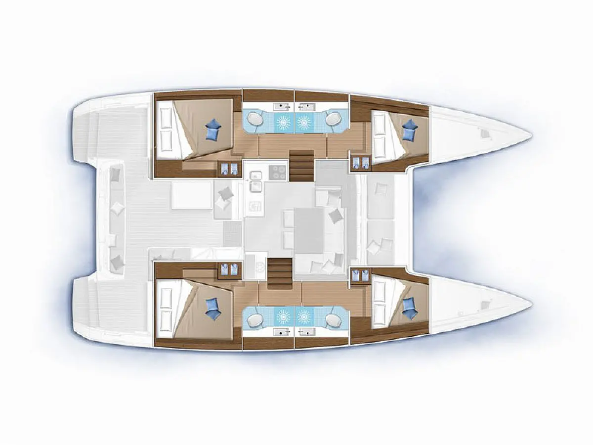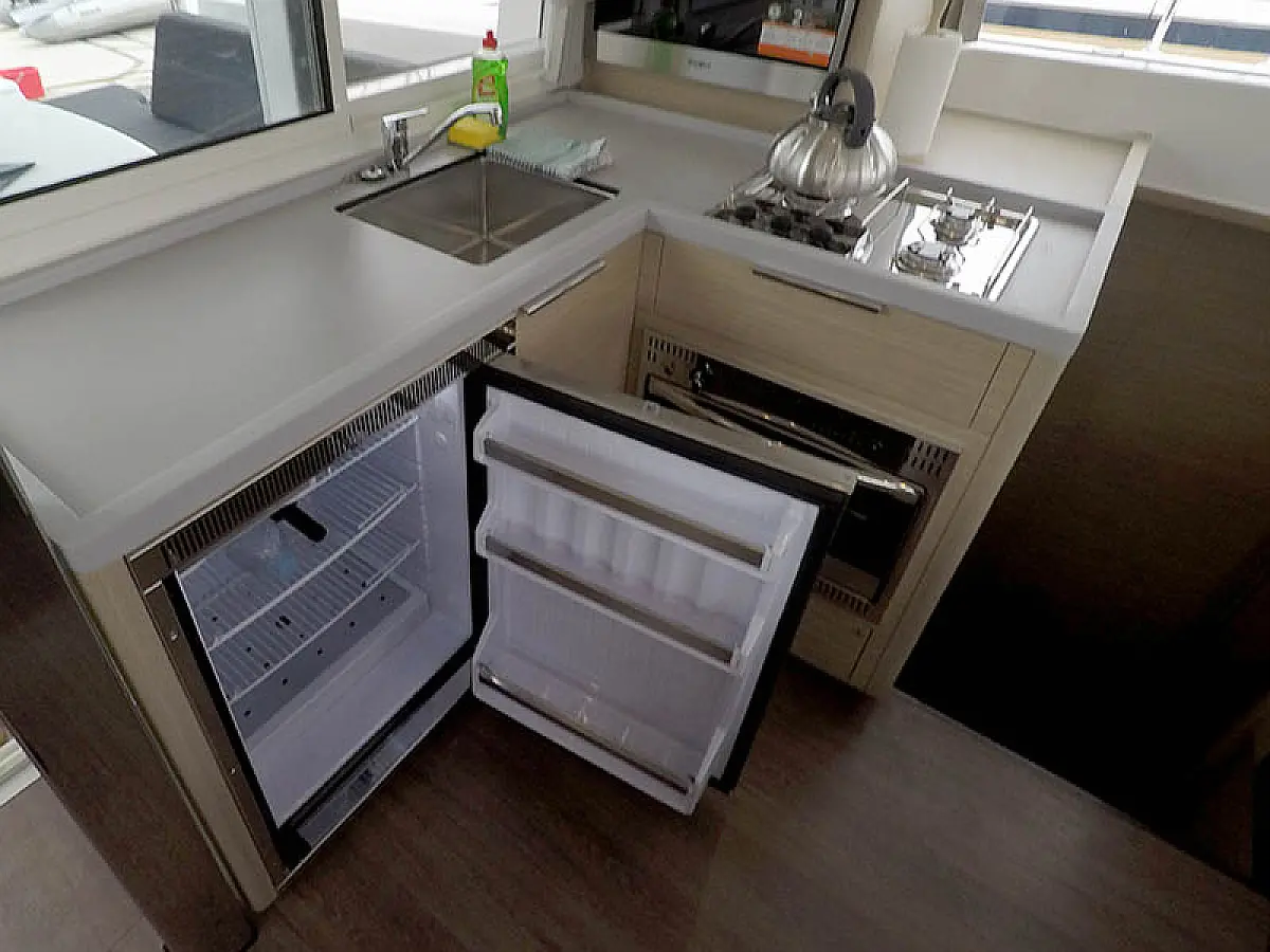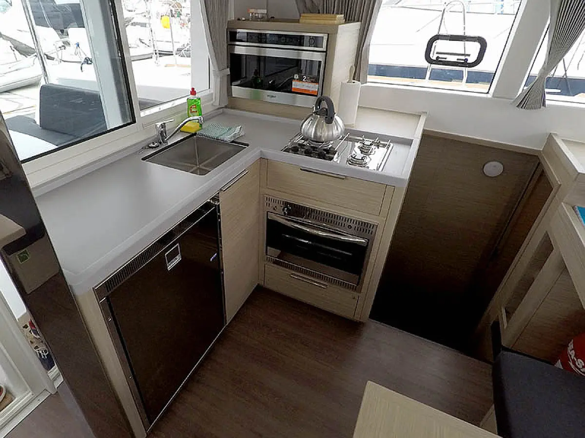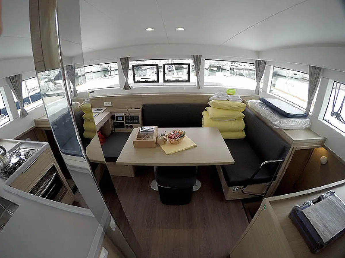 Generator, Solar-Panele, Klimaanlage, Kühlschrank, Bimini, Cockpit-Kissen, Außenbordmotor, Beiboot, Wi-Fi und Internet