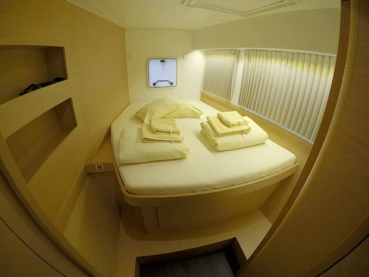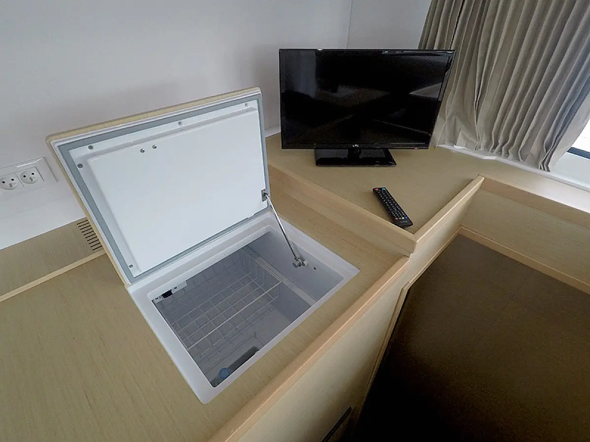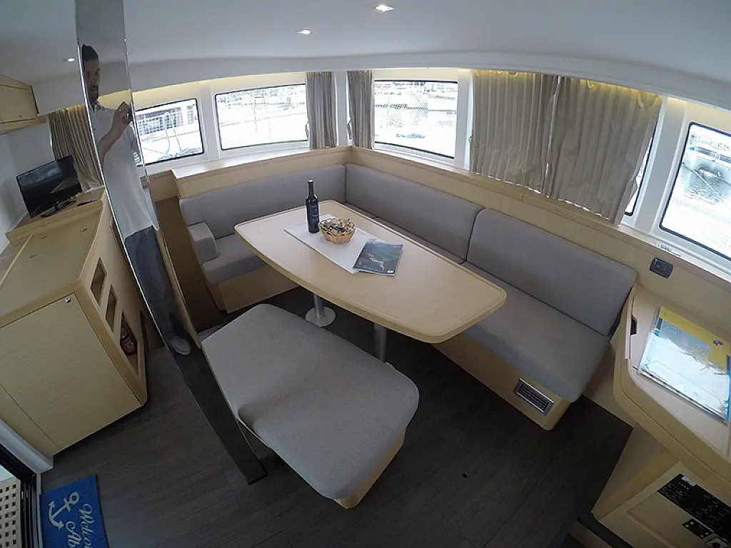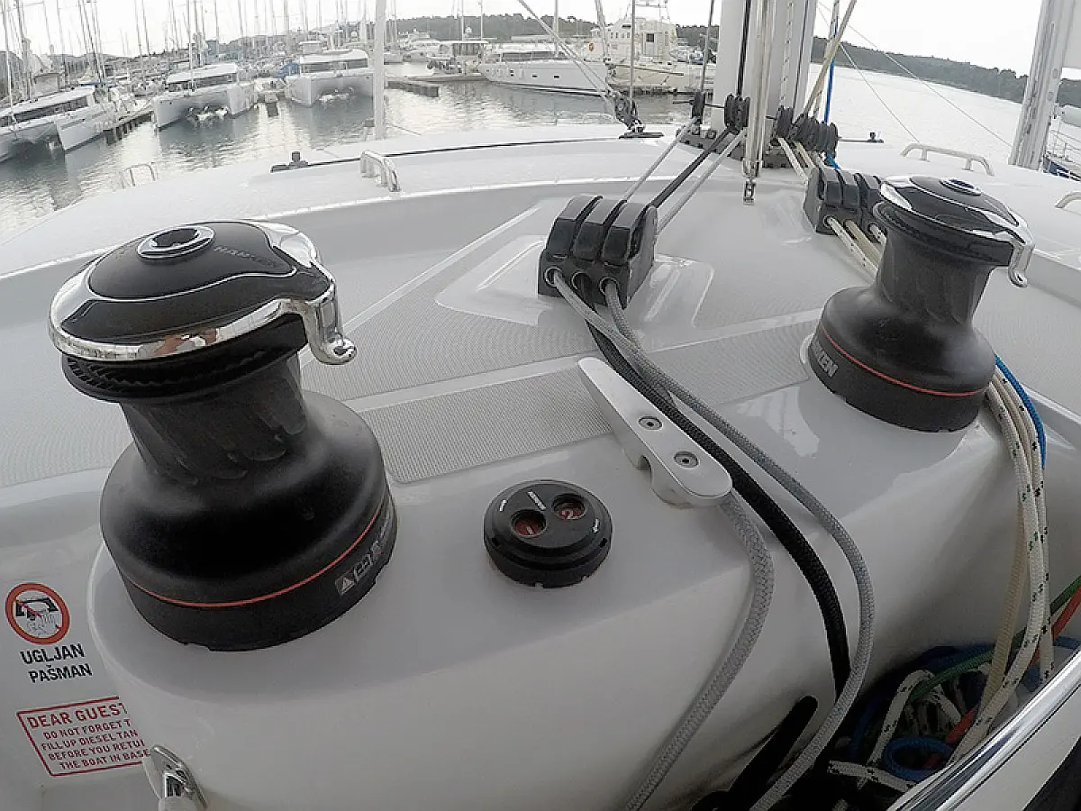 Generator, Heizung, Wassermacher, Solar-Panele, Klimaanlage, Kühlschrank, Bimini, Cockpit-Kissen, Außenbordmotor, Beiboot, Elektrische Winch (Segel), Wi-Fi und Internet