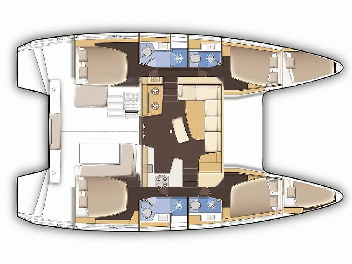 Lautsprecher im Cockpit, Klimaanlage, Heizung, Bimini, Badeplattform, Kühlschrank, Generator, Außenbordmotor, Beiboot