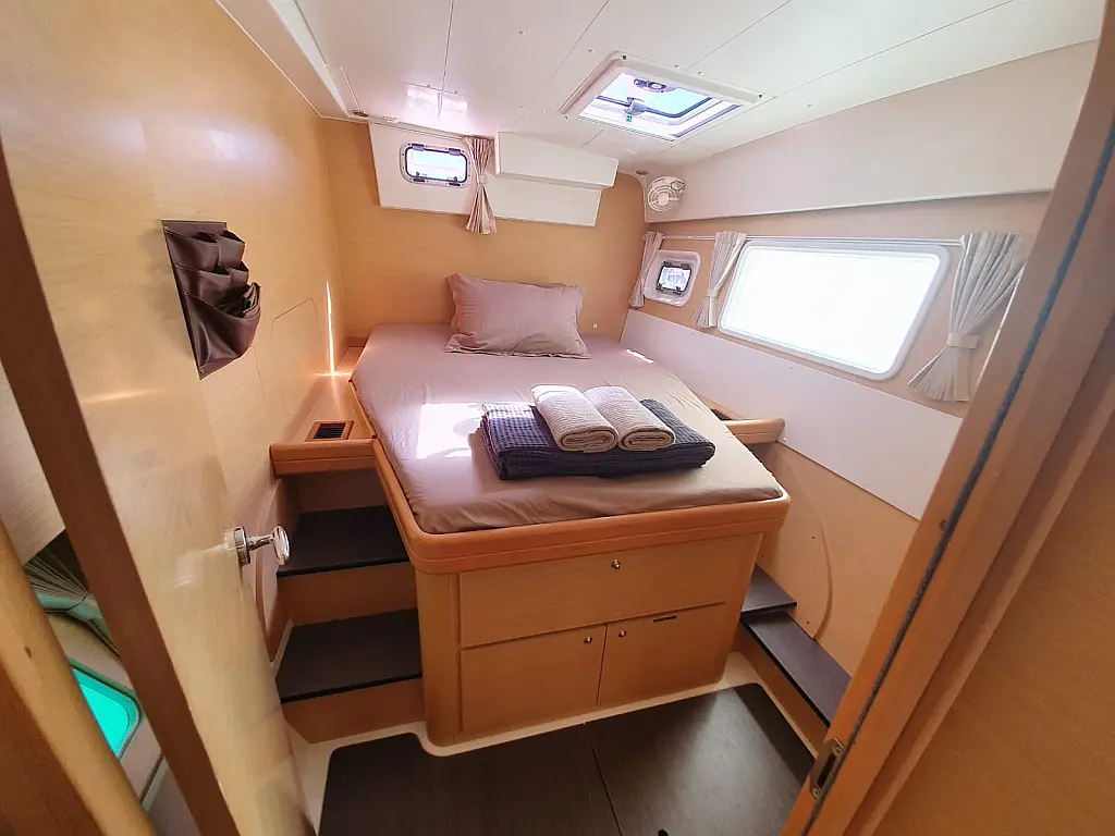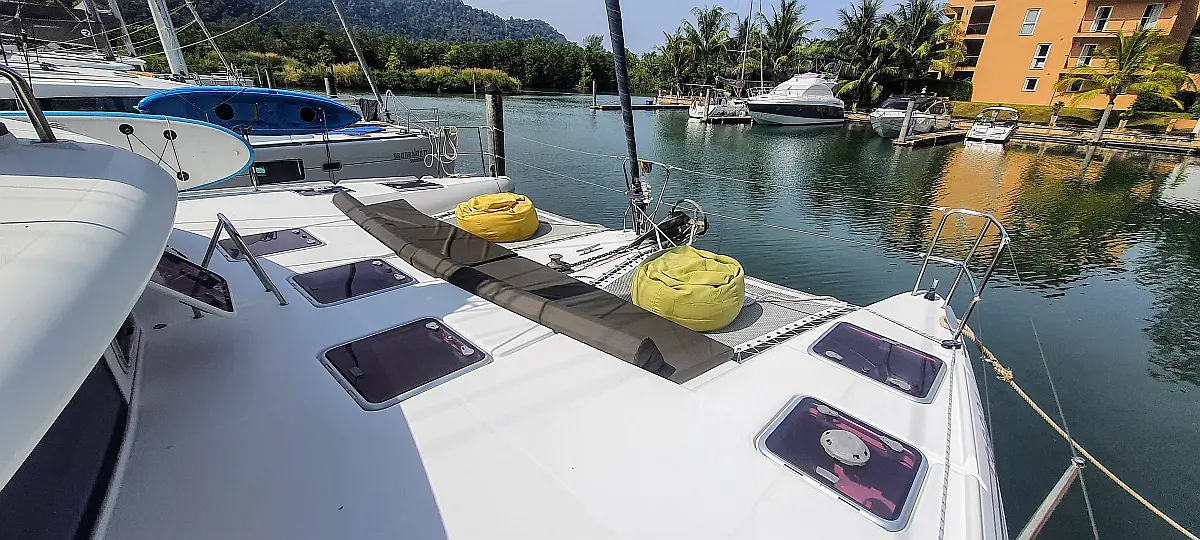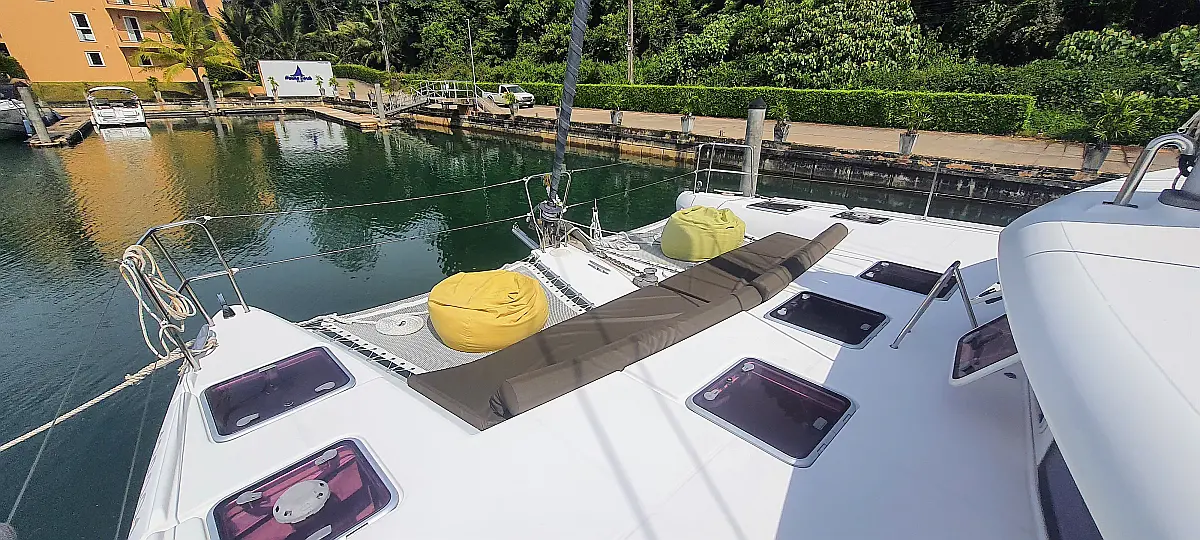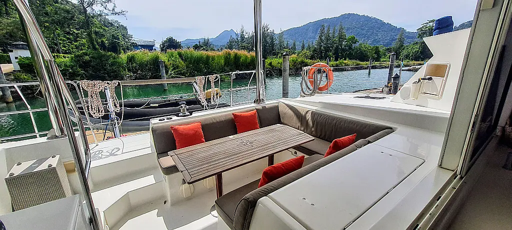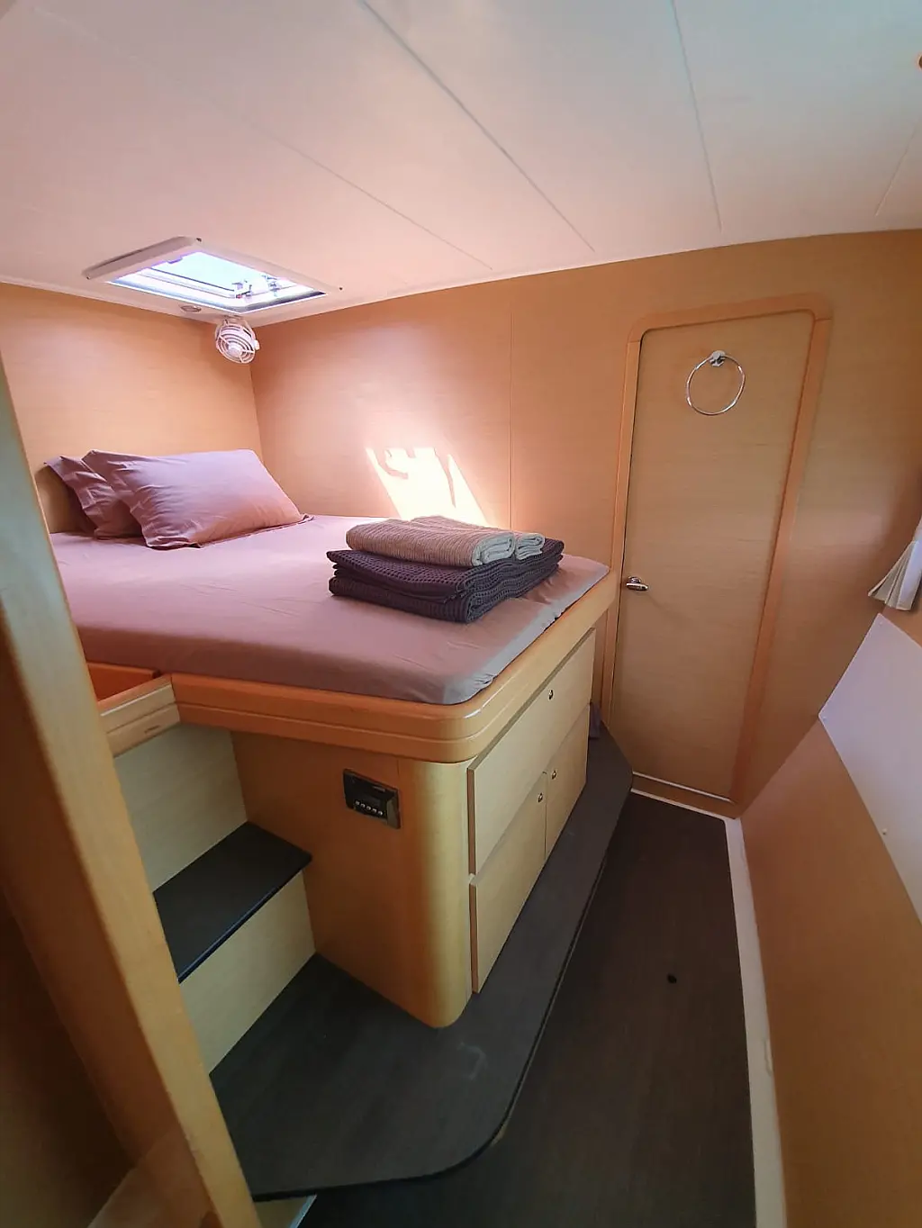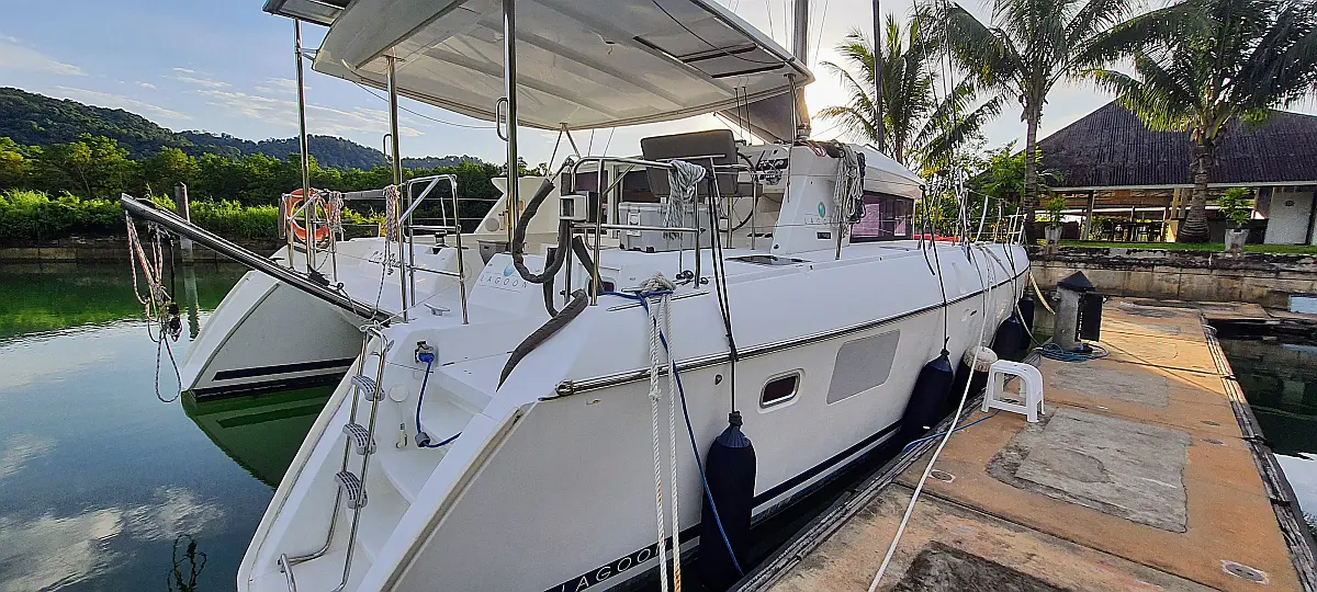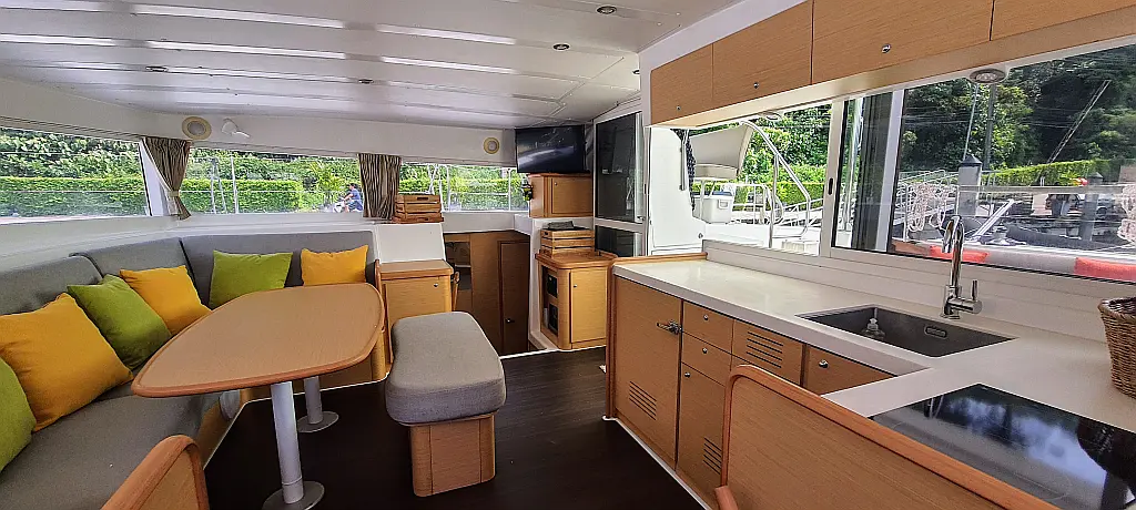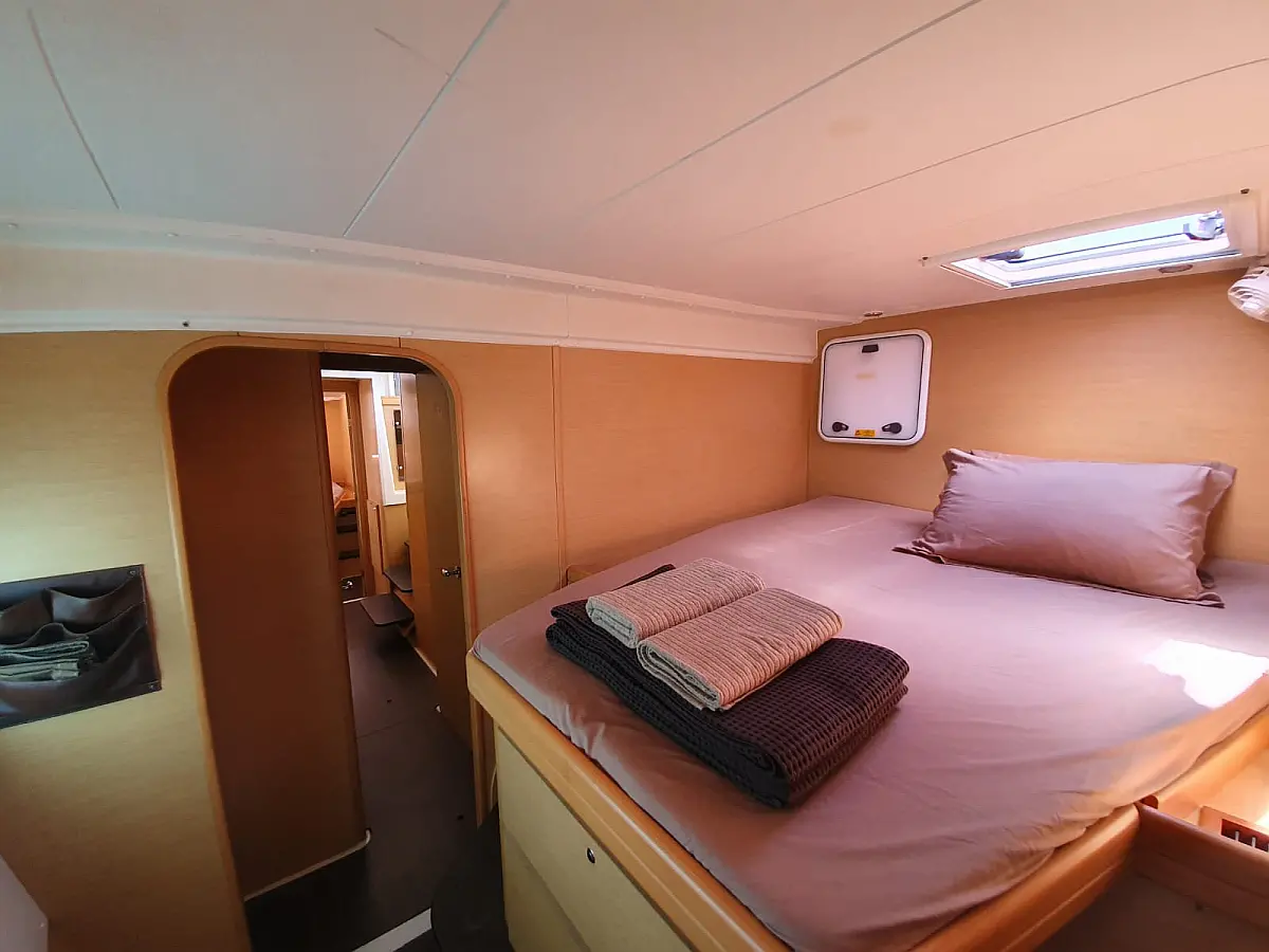 Lautsprecher im Cockpit, Wassermacher, Klimaanlage, Bimini, Kühlschrank, Generator, Solar-Panele, Außenbordmotor, Beiboot, Grill im Cockpit