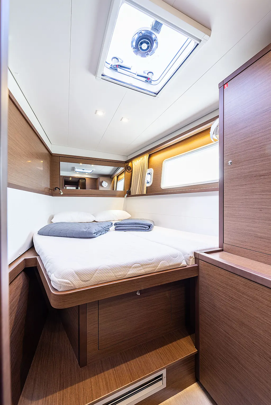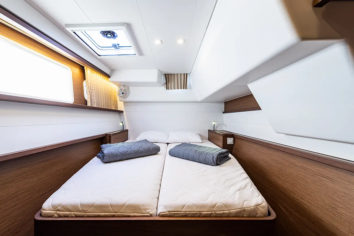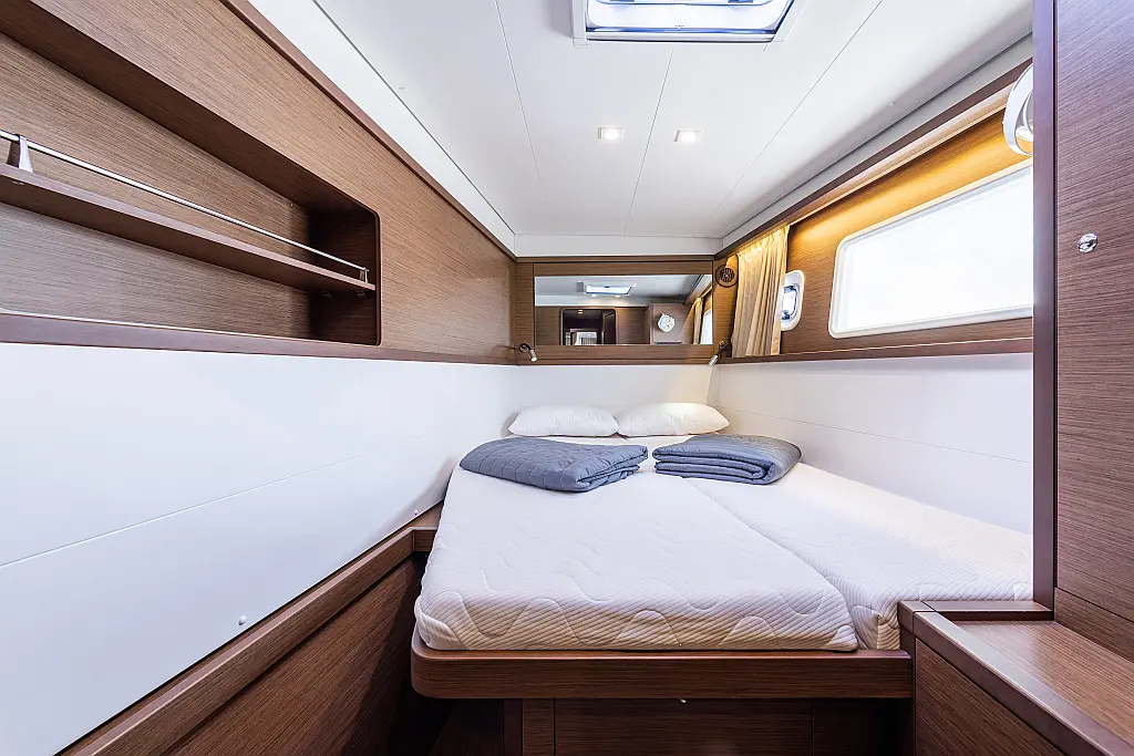 6 (4 double-bed cabins +2 bow cabins)