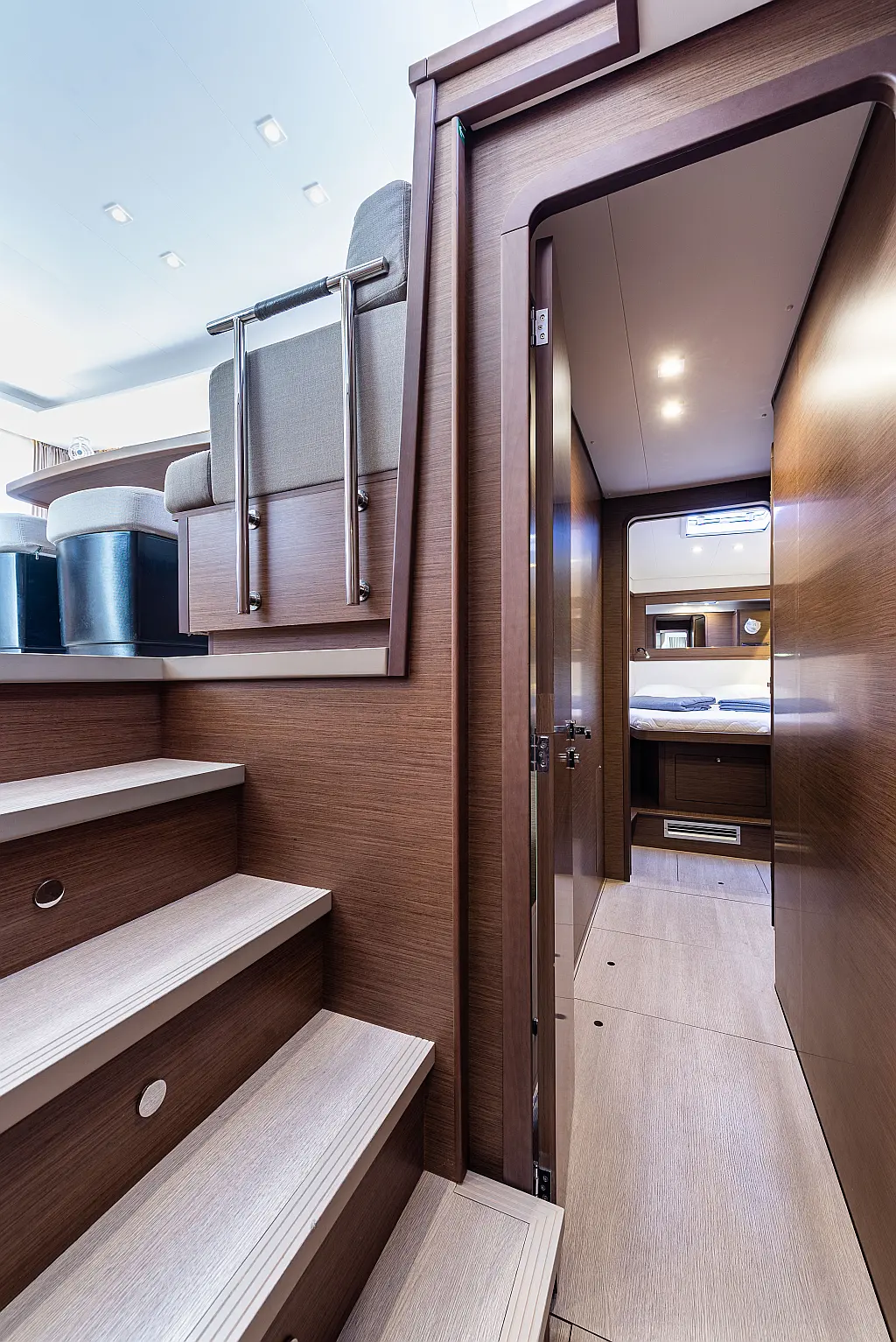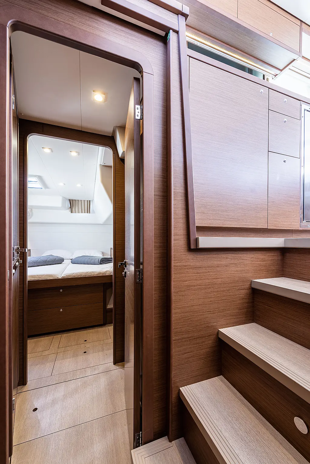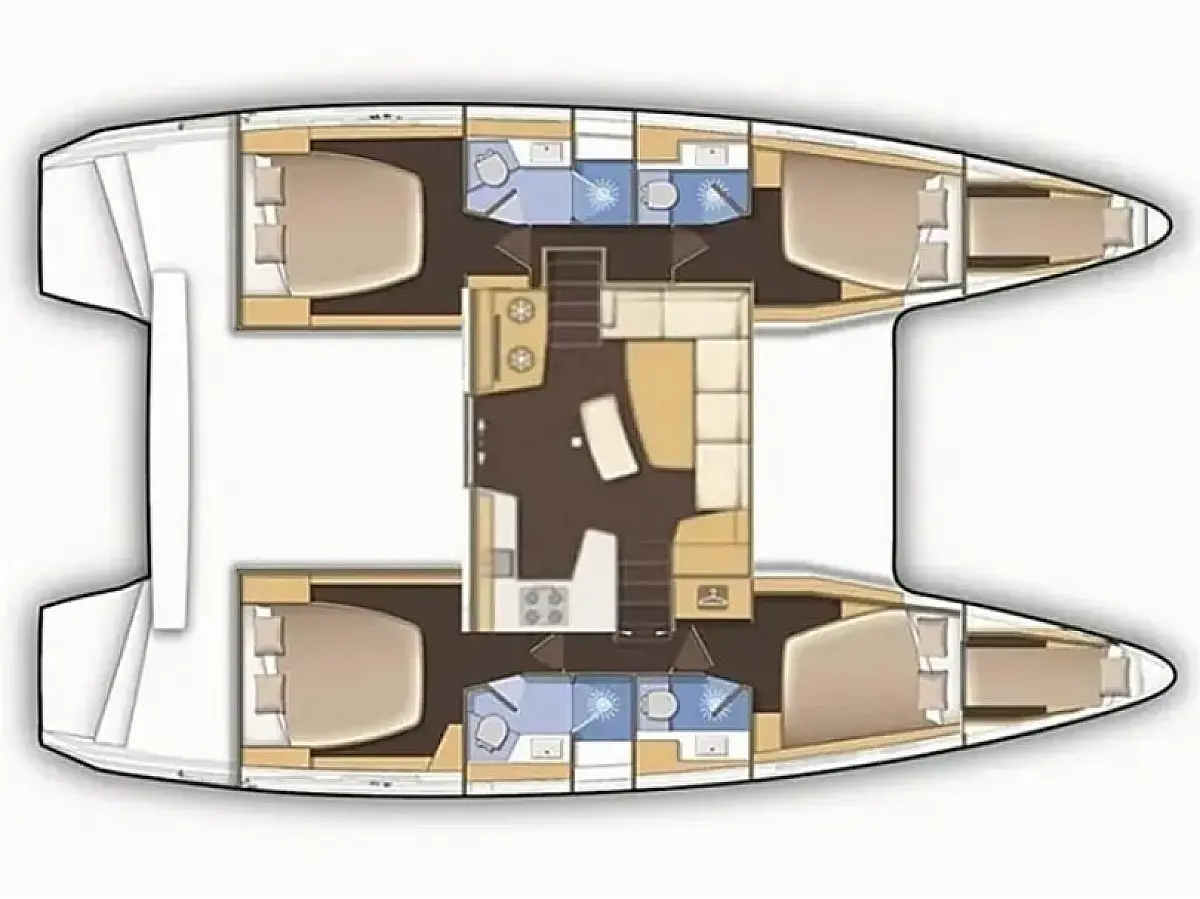 6 (4 double-bed cabins +2 bow cabins)