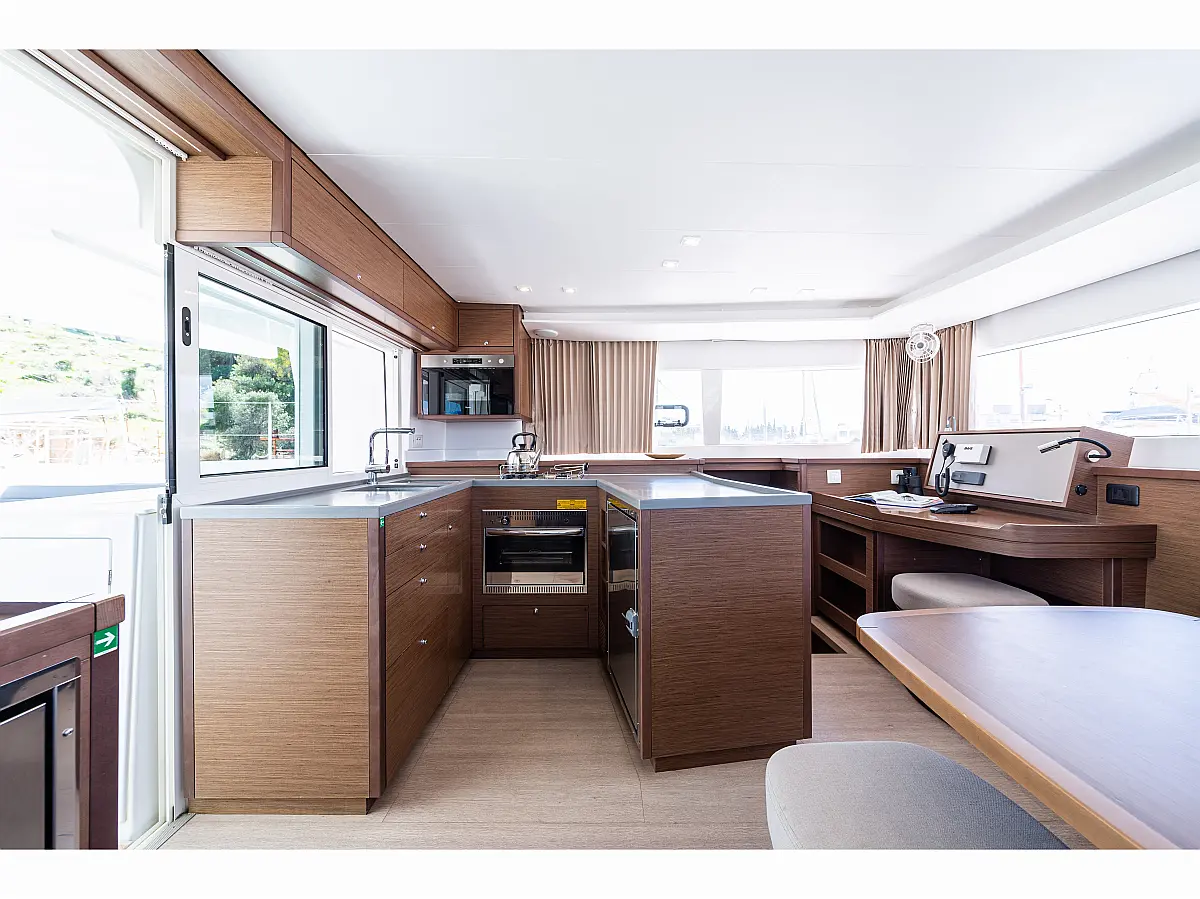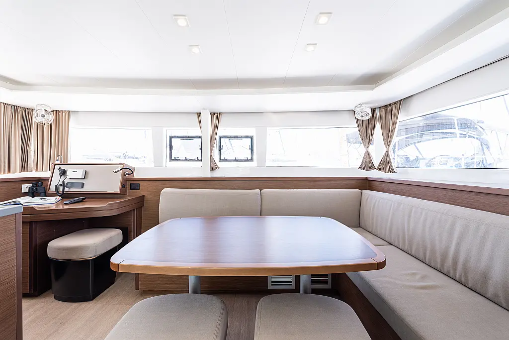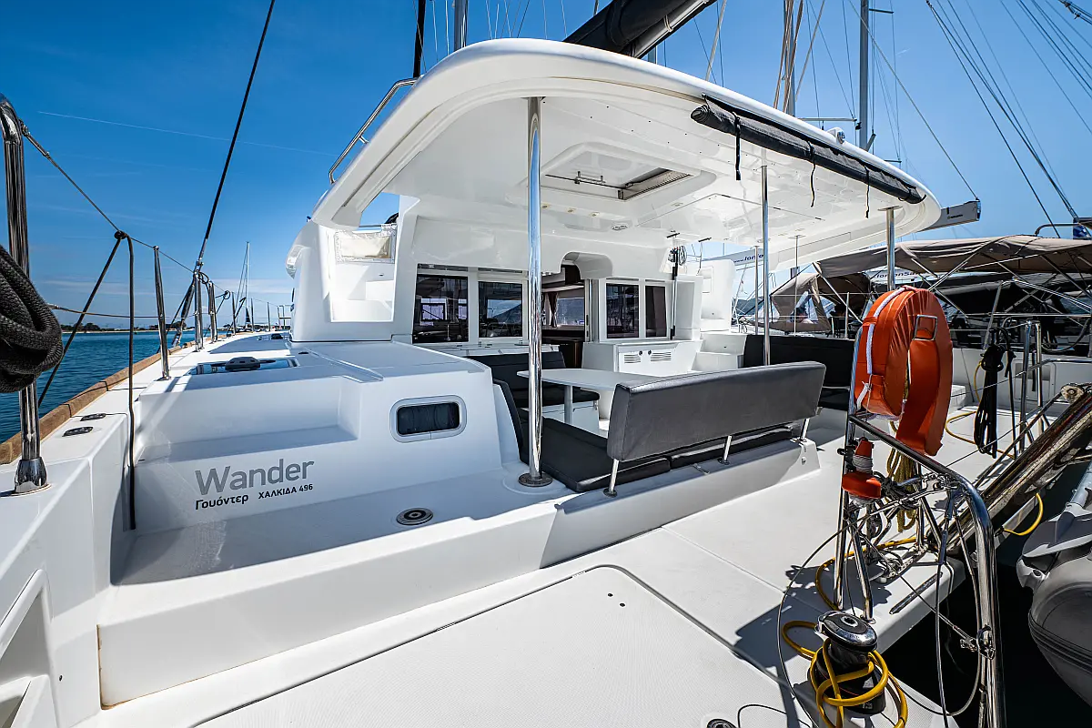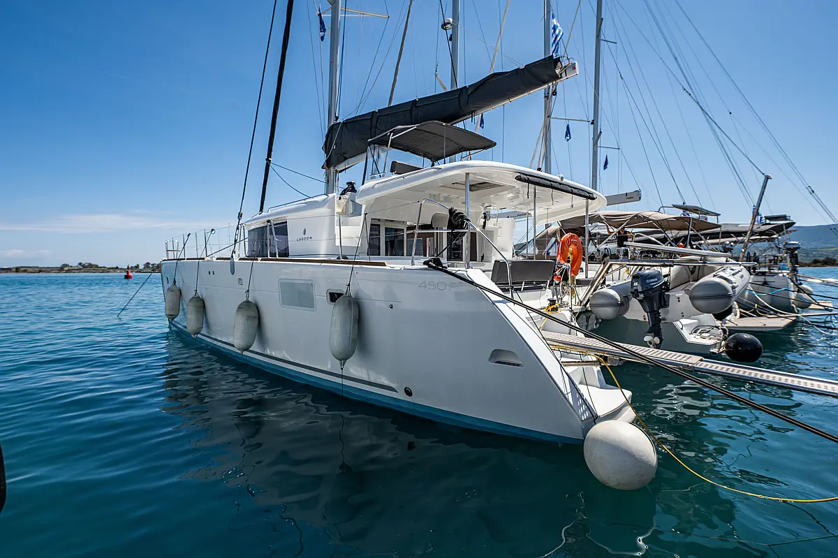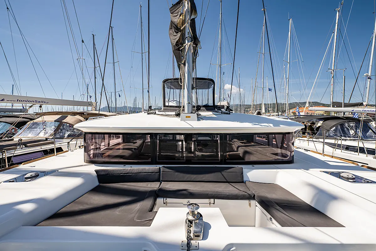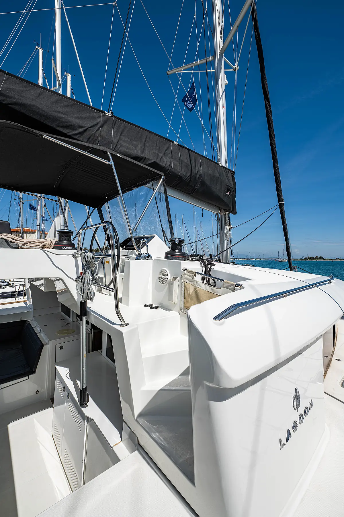 Fäkalientank, Beiboot, Lautsprecher im Cockpit, Elektrische Winch (Segel), Elektrische Toilette, Klimaanlage, Wassermacher, Generator, Cockpit-Kissen, Sprayhood, Badeplattform, Solar-Panele