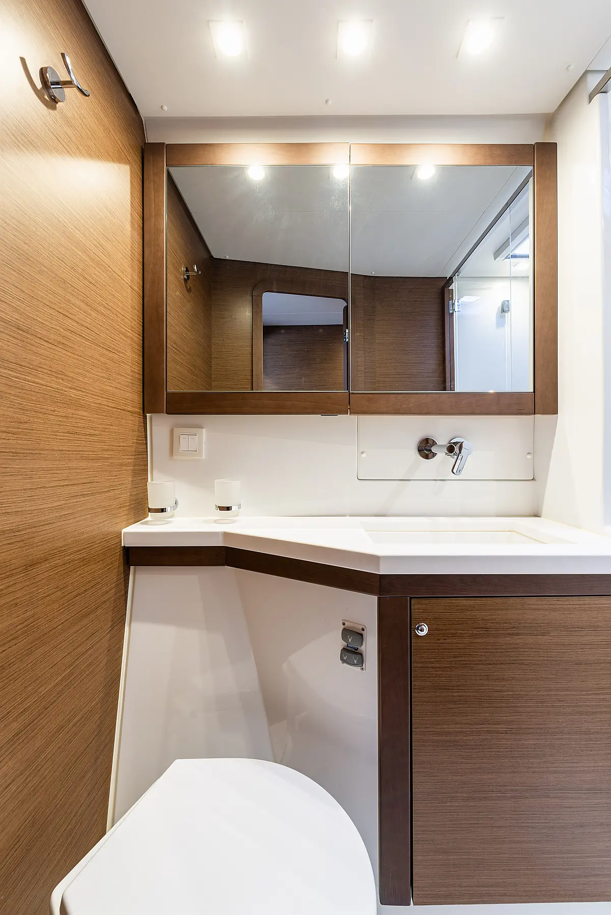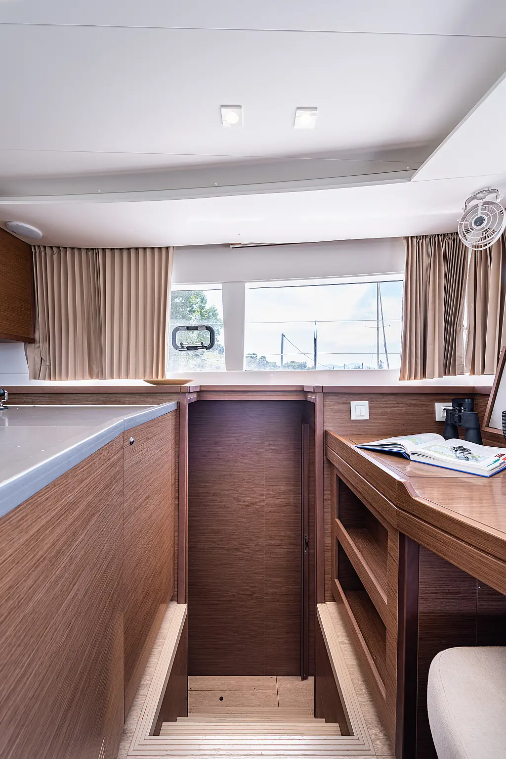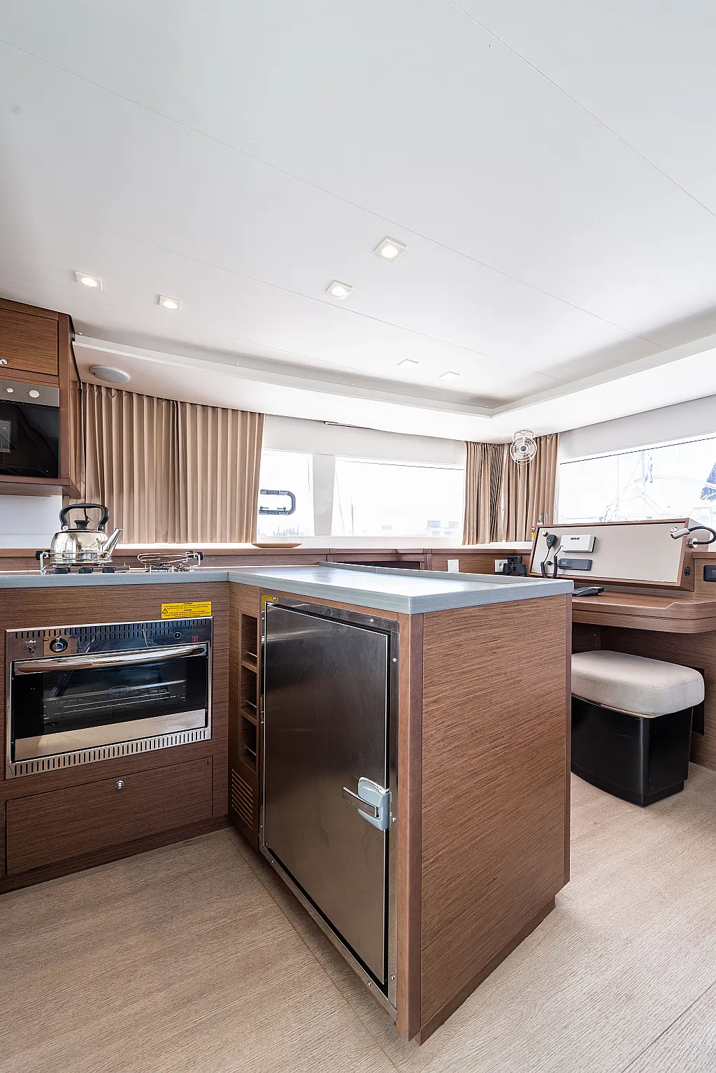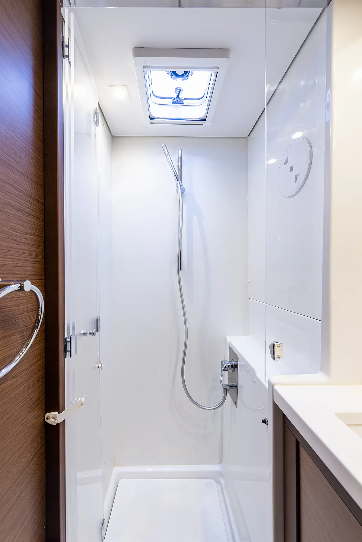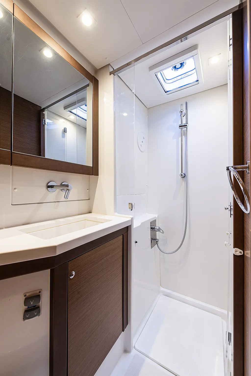 Fäkalientank, Beiboot, Lautsprecher im Cockpit, Elektrische Winch (Segel), Elektrische Toilette, Klimaanlage, Wassermacher, Generator, Cockpit-Kissen, Sprayhood, Badeplattform, Solar-Panele