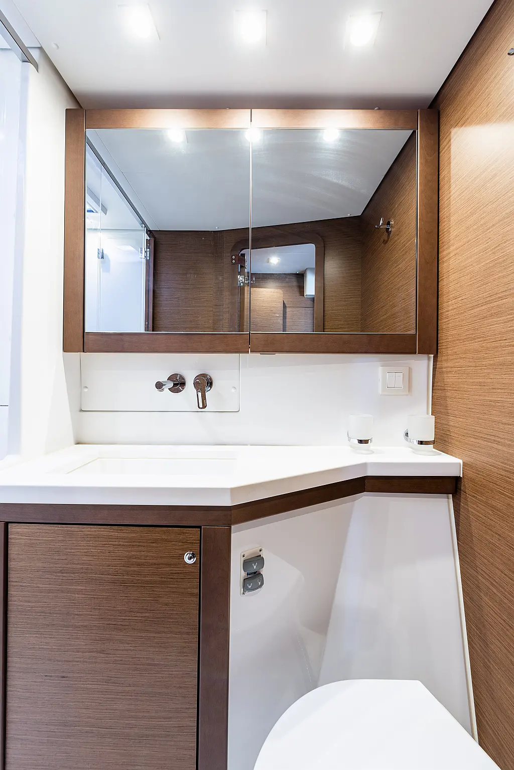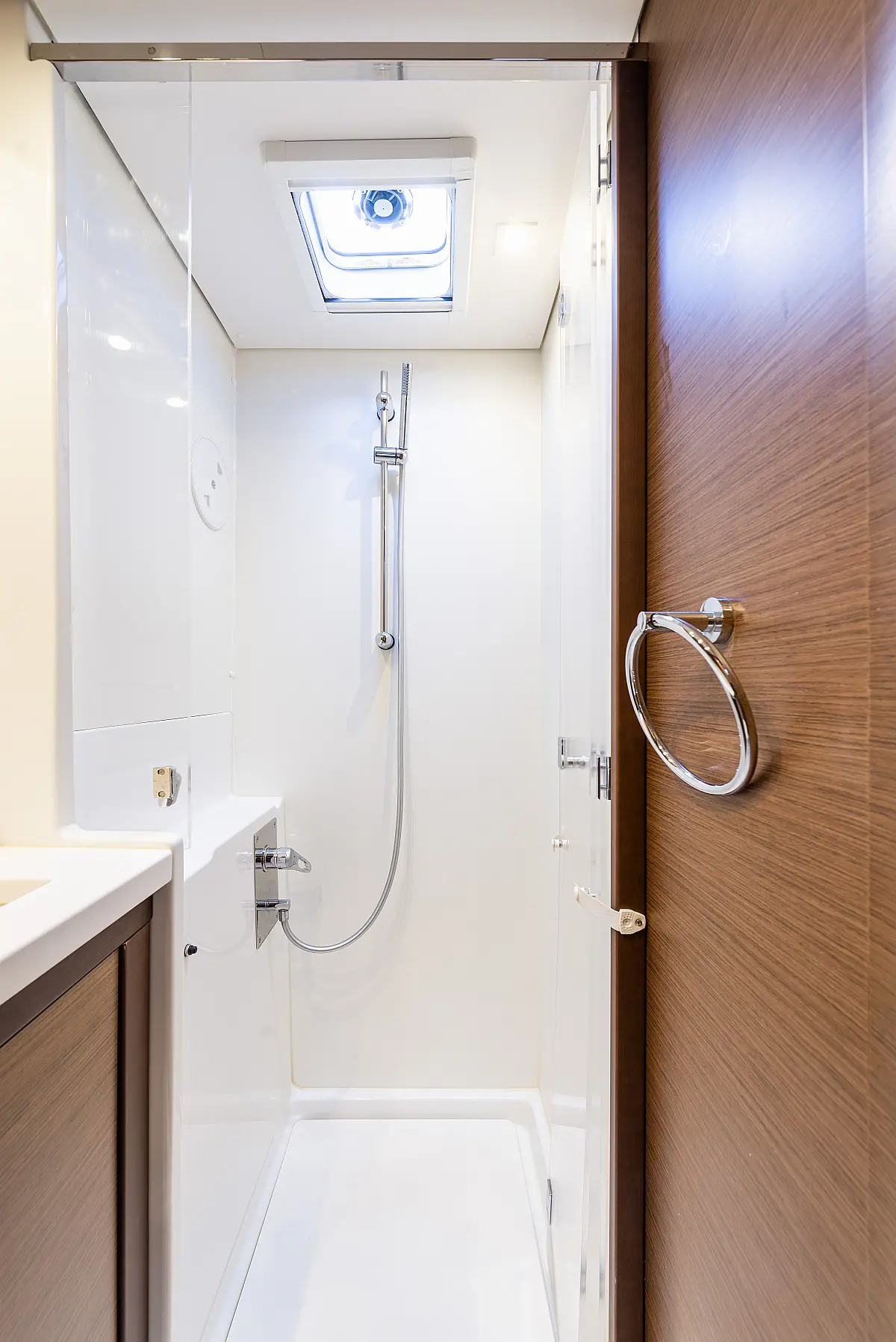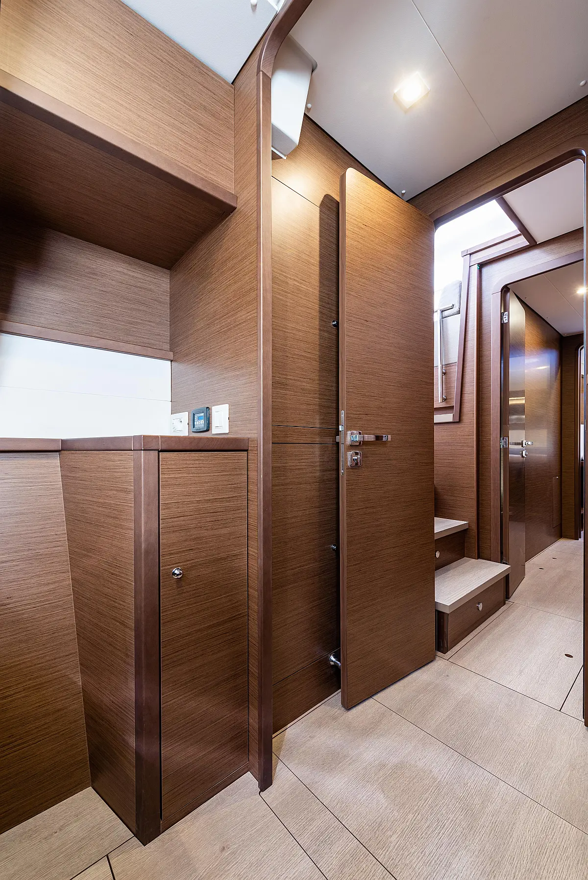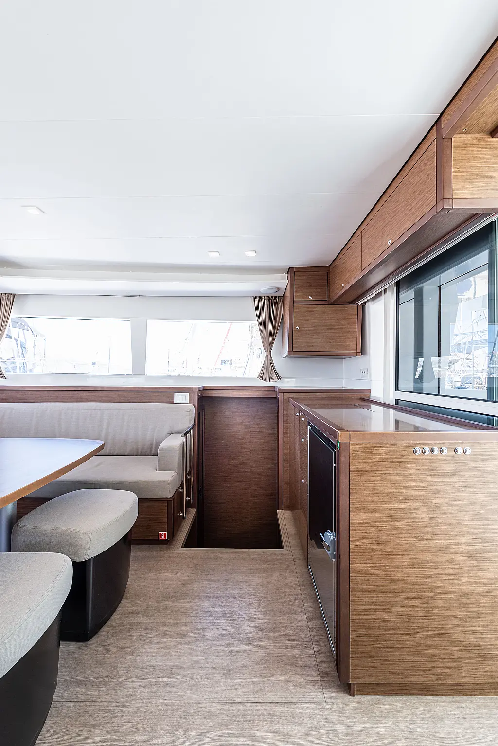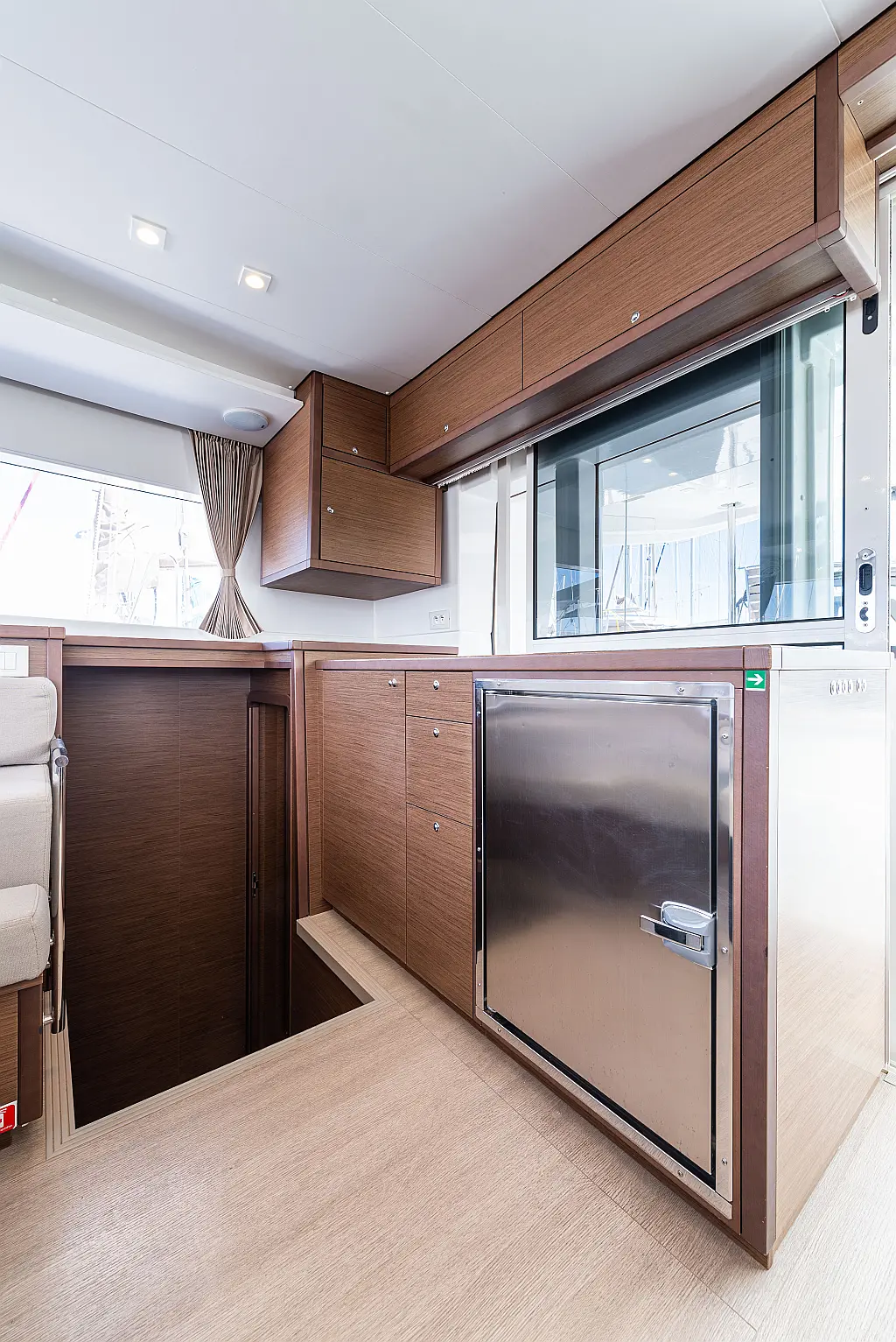 Fäkalientank, Beiboot, Lautsprecher im Cockpit, Elektrische Winch (Segel), Elektrische Toilette, Klimaanlage, Wassermacher, Generator, Cockpit-Kissen, Sprayhood, Badeplattform, Solar-Panele