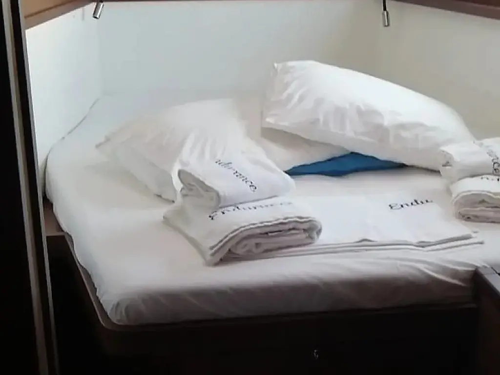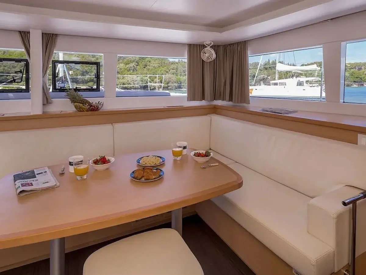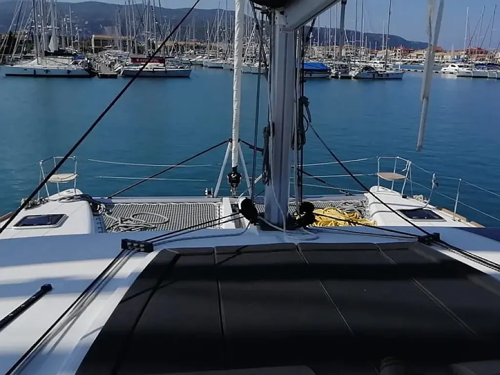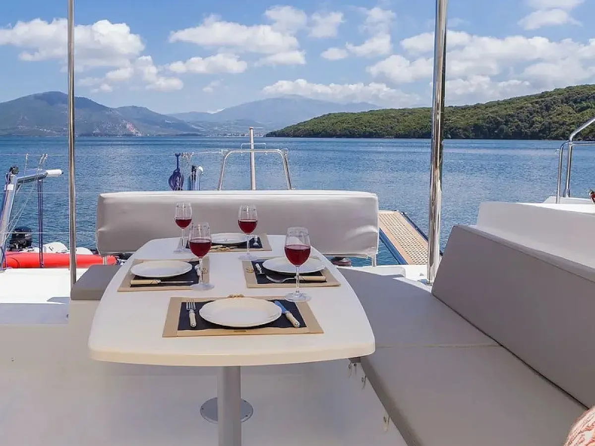 Klimaanlage, Generator, Bimini, Lautsprecher im Cockpit, Kaffeemaschine, Beiboot, Elektrische Toilette, Eismaschine, Außenbordmotor, Kühlschrank, Solar-Panele, Sprayhood, Wassermacher, Wi-Fi und Internet