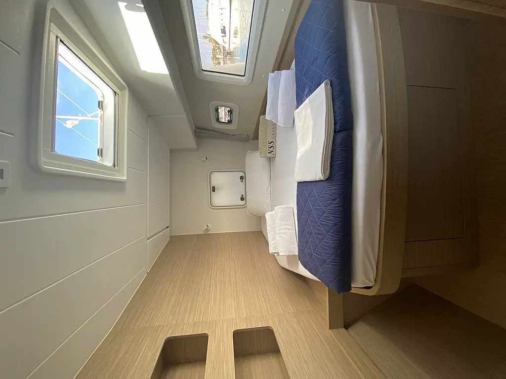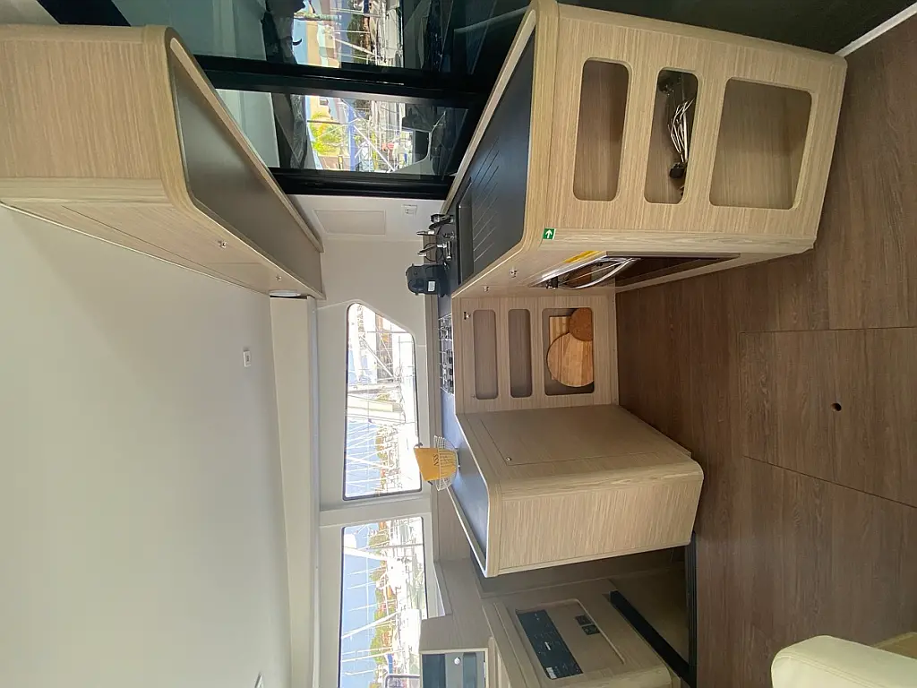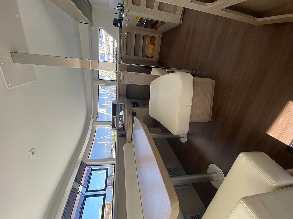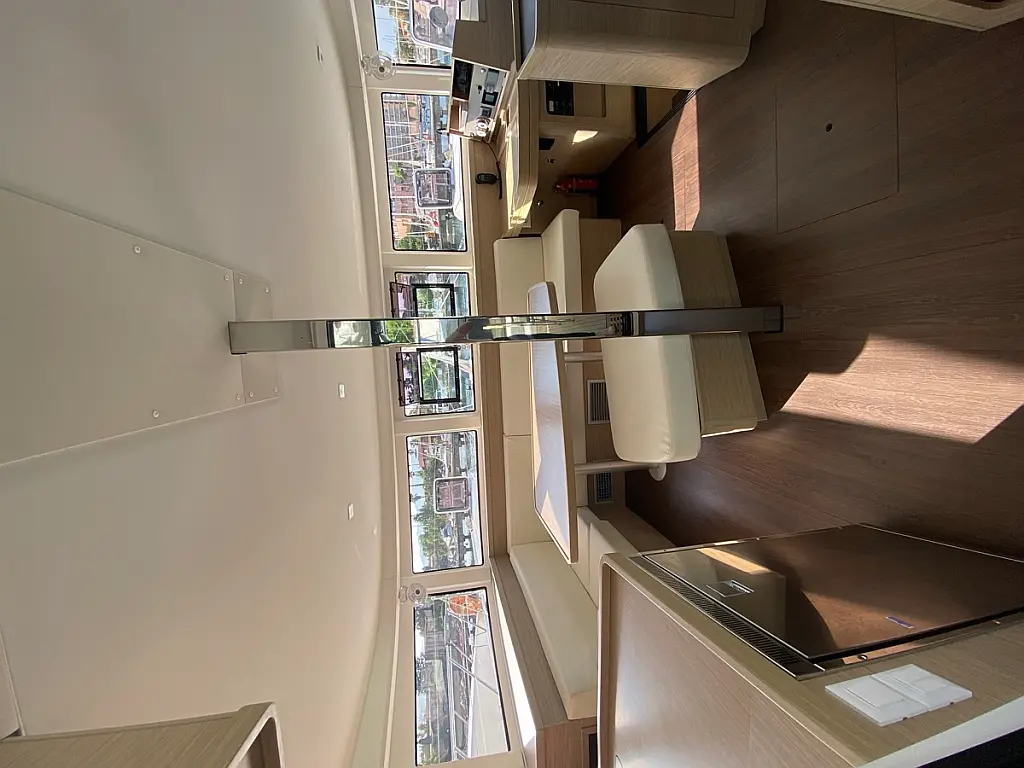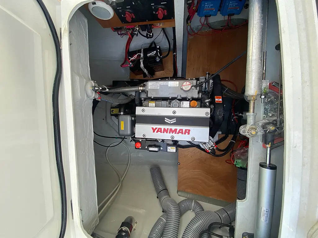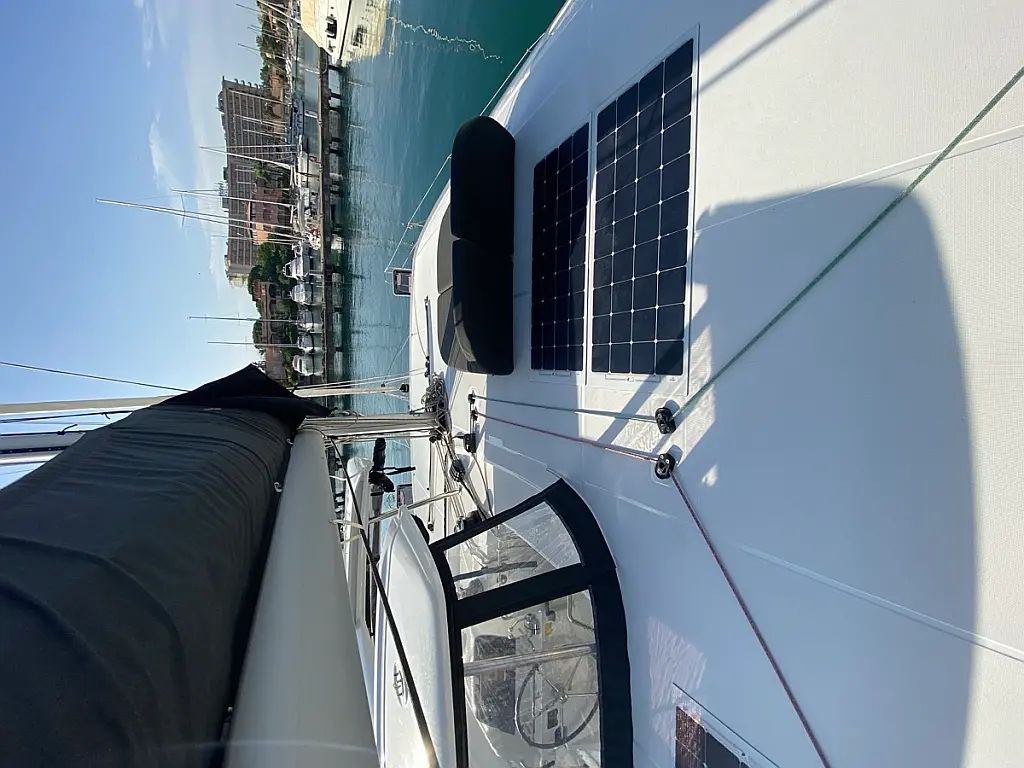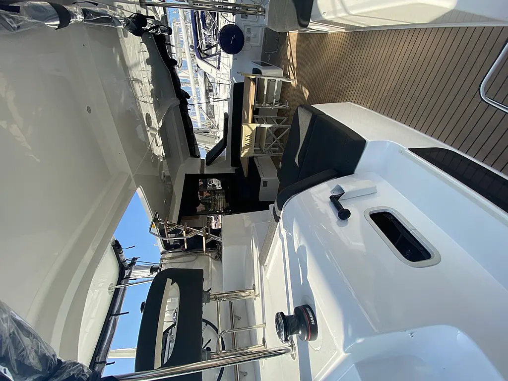 Cockpit-Kissen, Lautsprecher im Cockpit, Kaffeemaschine, Inverter, Beiboot, Elektrische Winch (Segel), Kühlschrank, Elektrische Toilette, Klimaanlage, Wassermacher