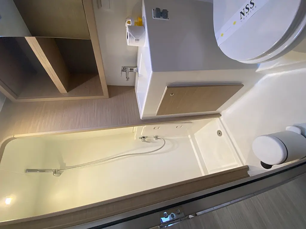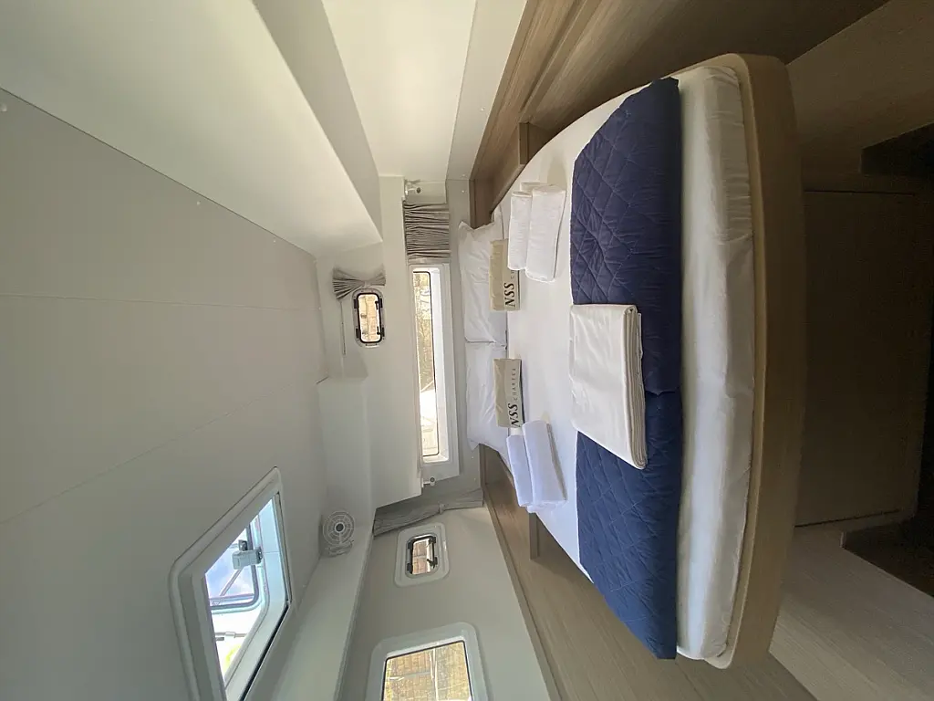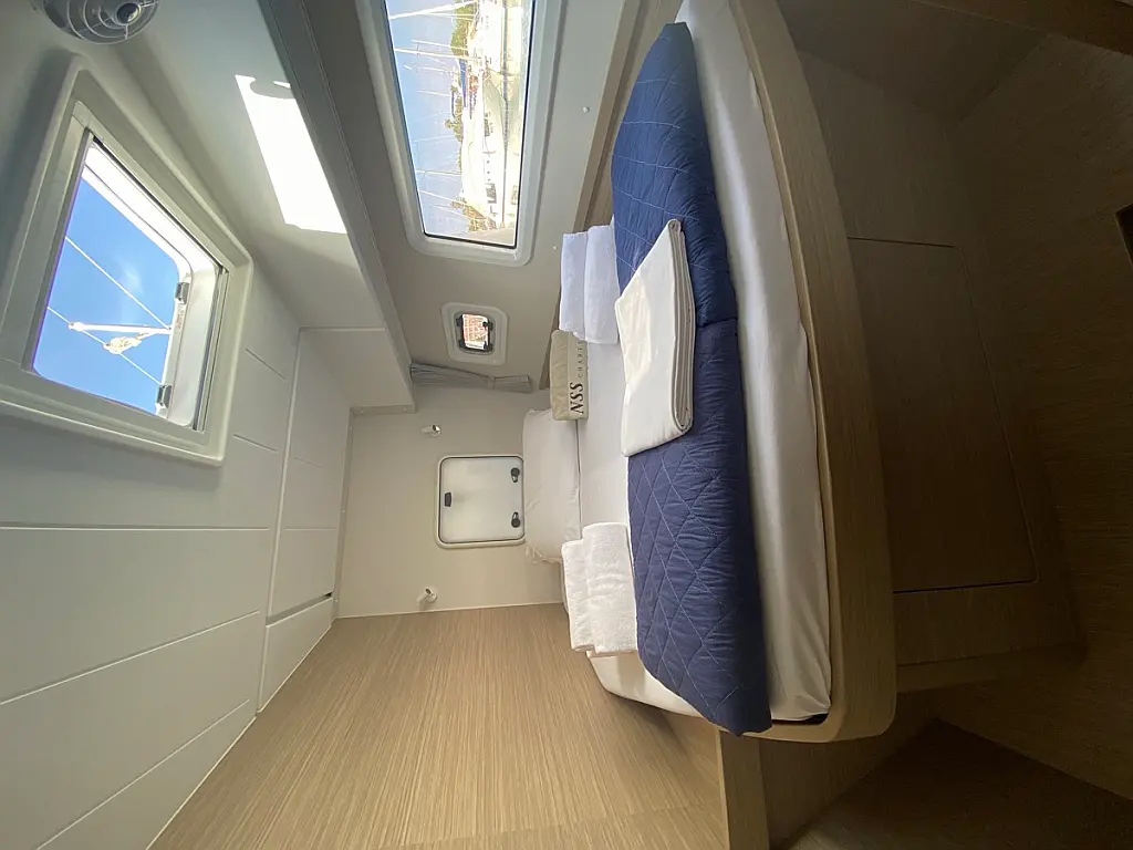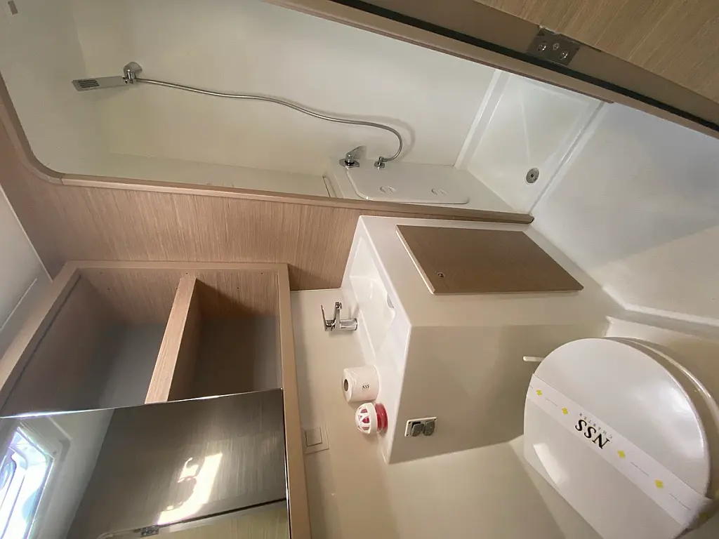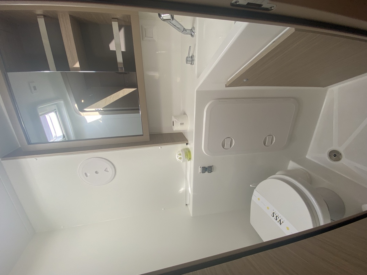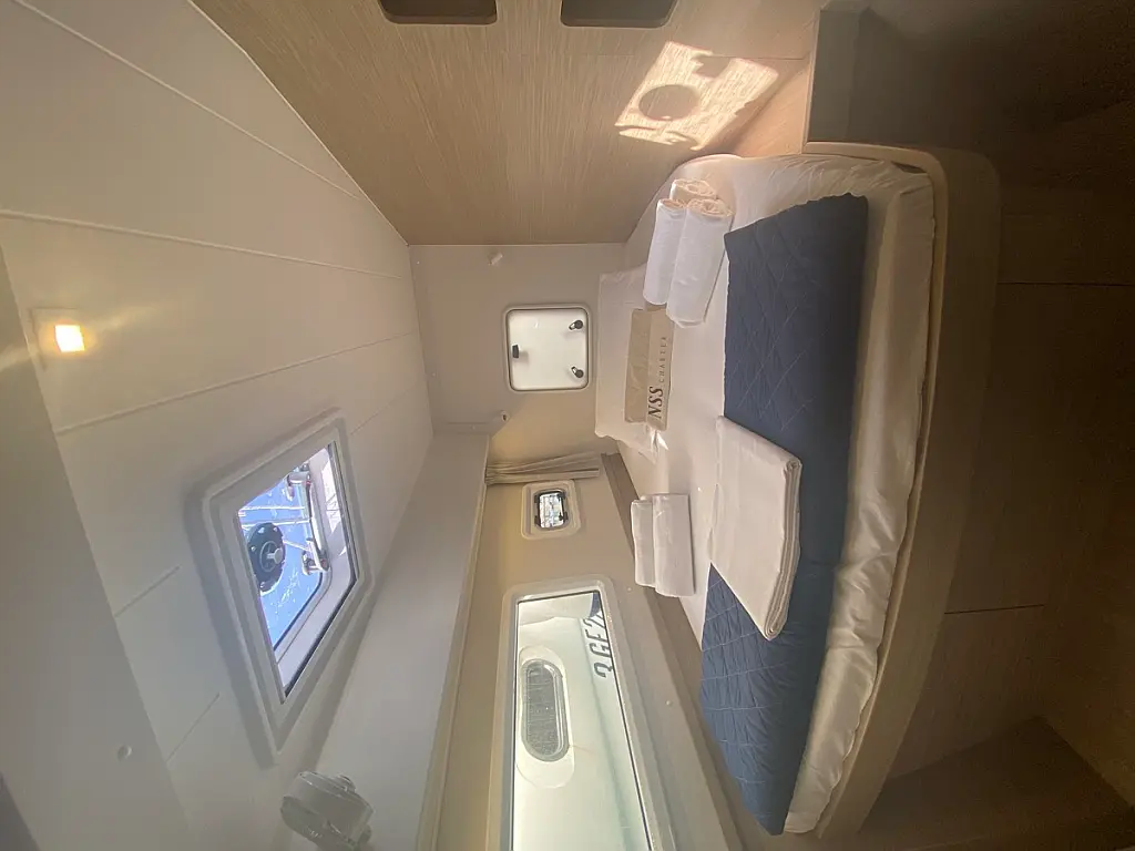 Cockpit-Kissen, Lautsprecher im Cockpit, Kaffeemaschine, Inverter, Beiboot, Elektrische Winch (Segel), Kühlschrank, Elektrische Toilette, Klimaanlage, Wassermacher