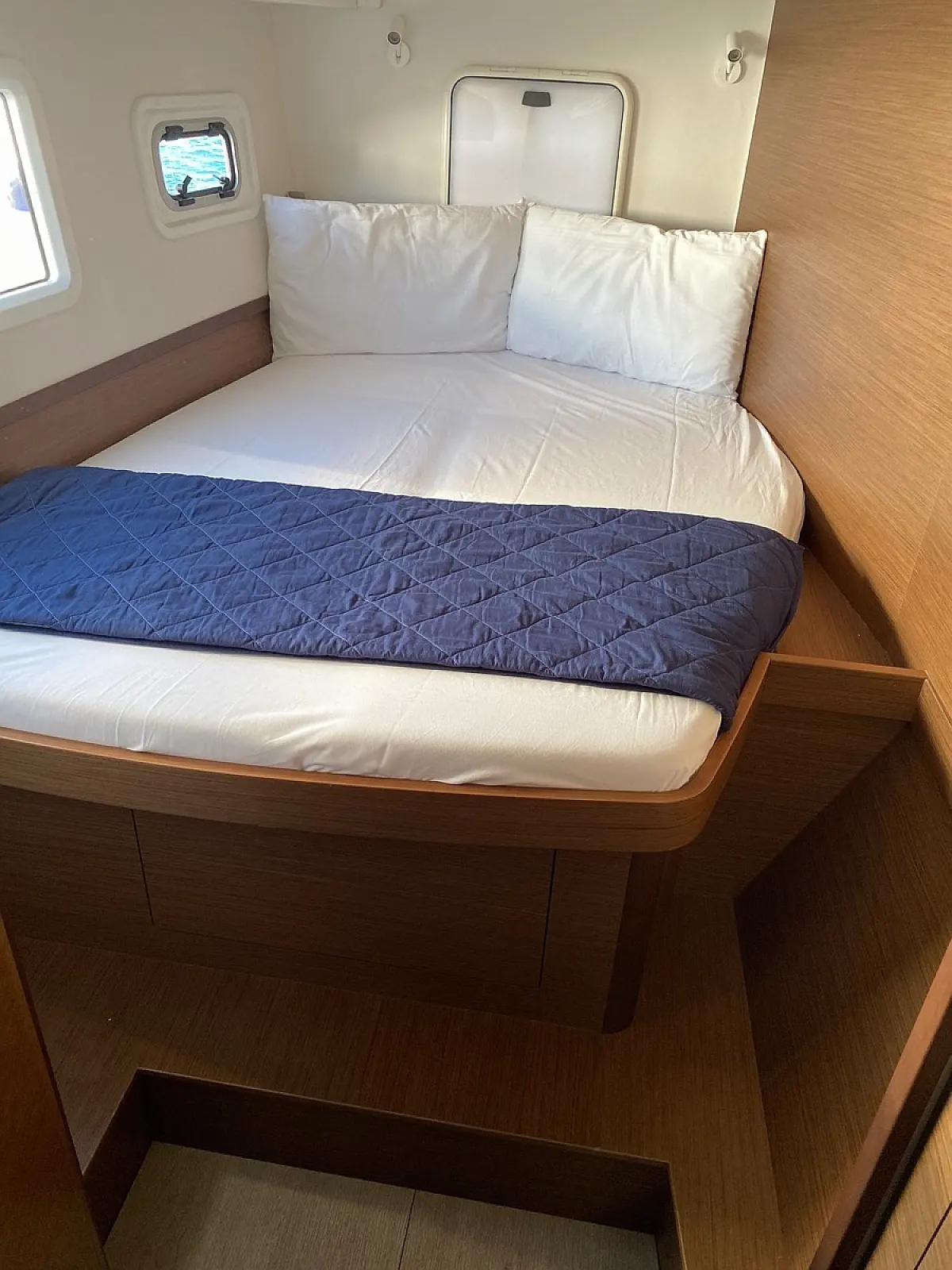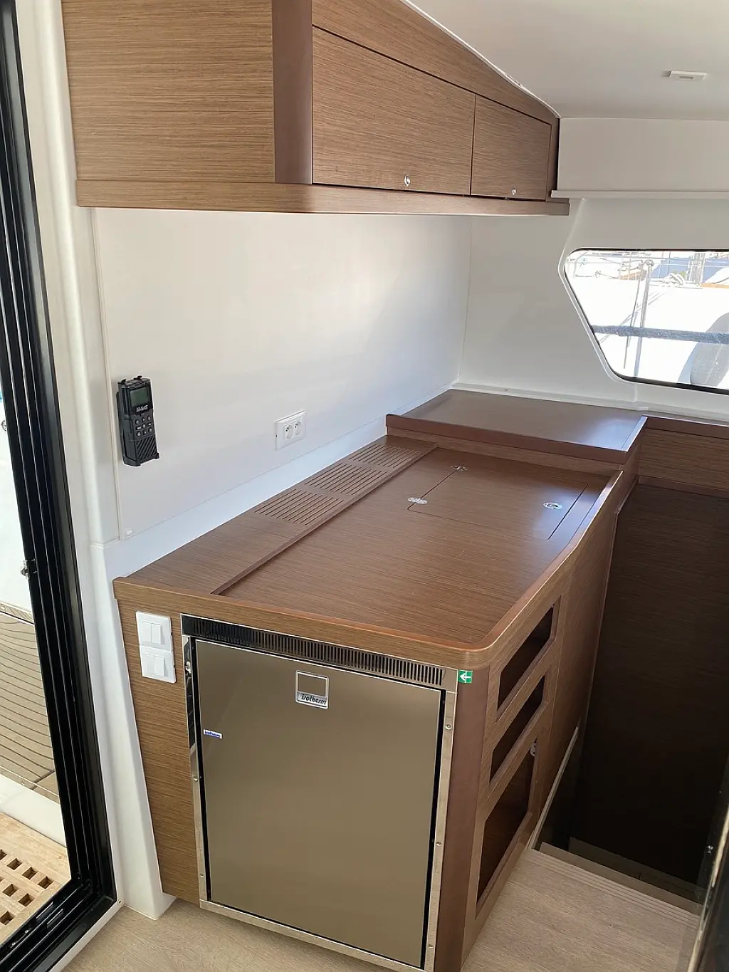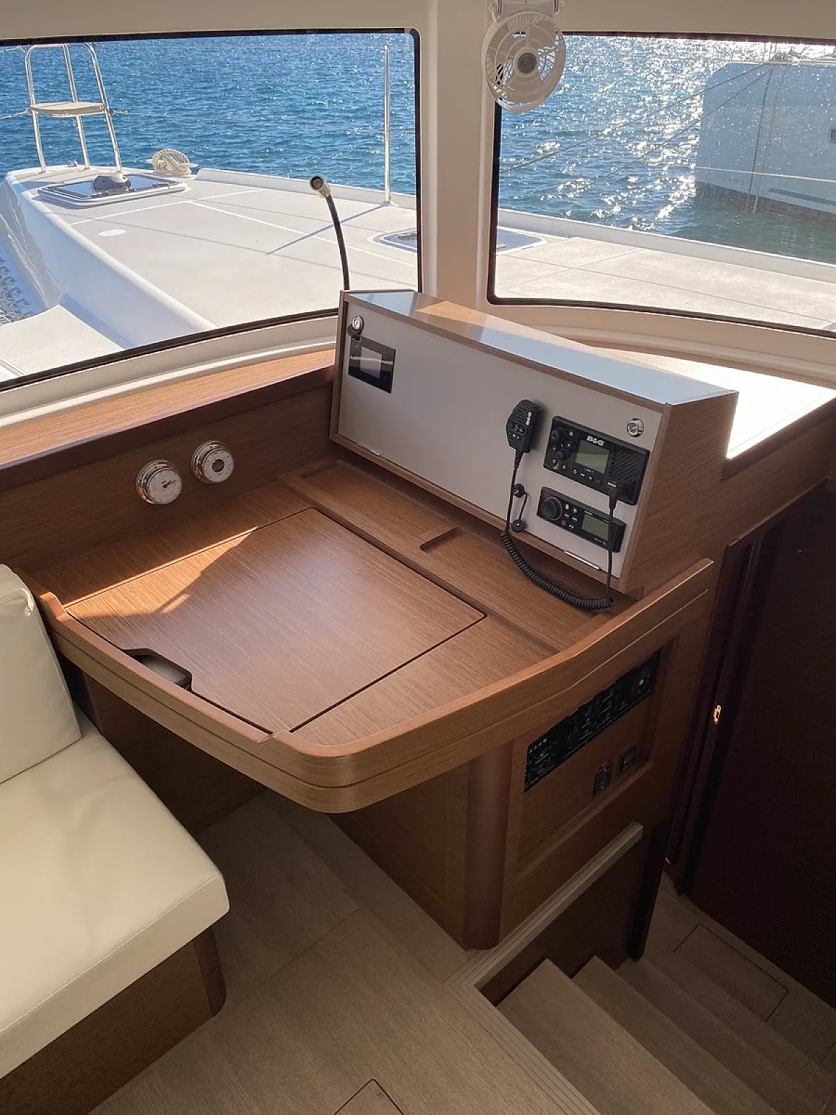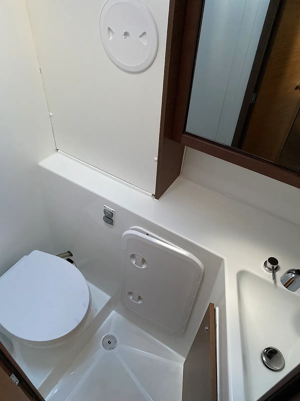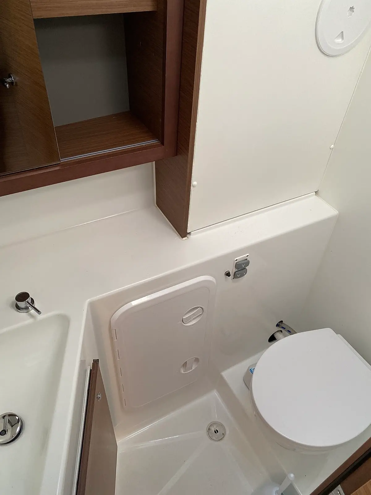 Cockpit-Kissen, Lautsprecher im Cockpit, Kaffeemaschine, Inverter, Teak Cockpit, Elektrische Winch (Segel), Kühlschrank, Elektrische Toilette, Klimaanlage, Wassermacher