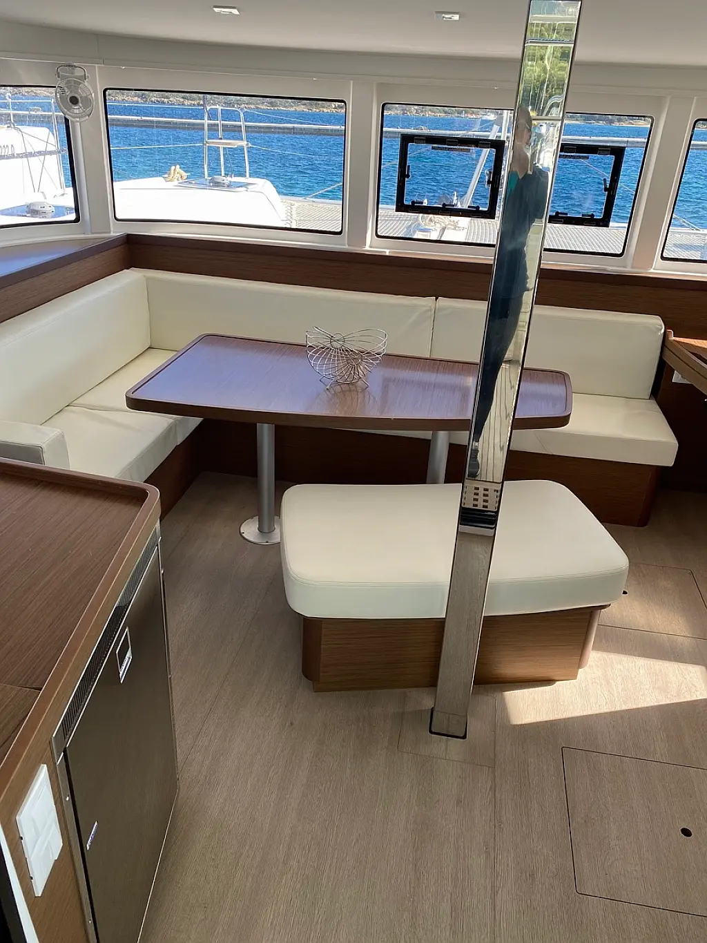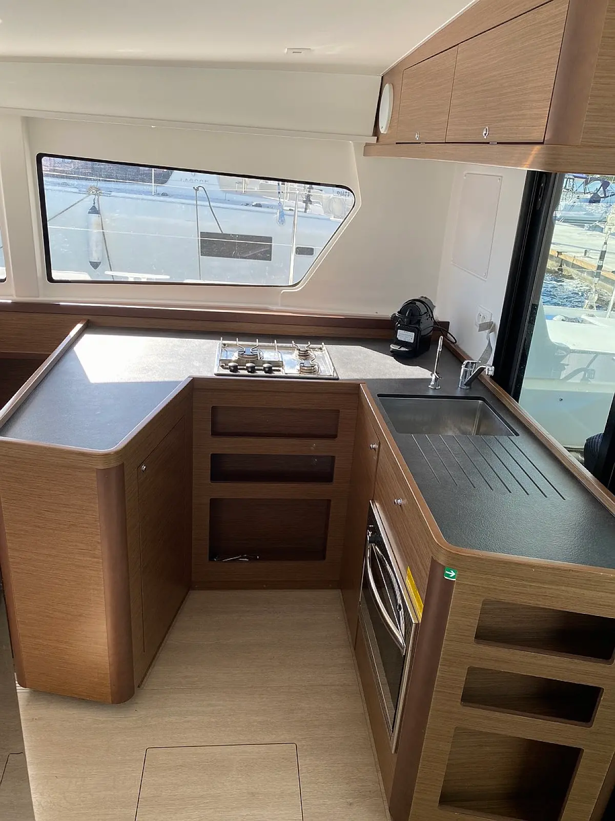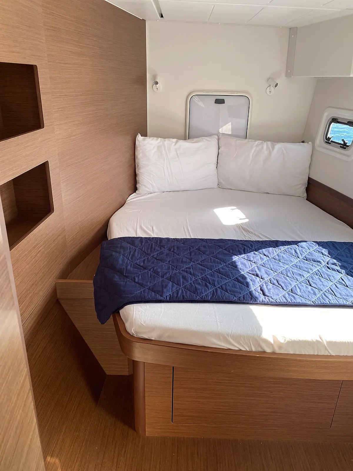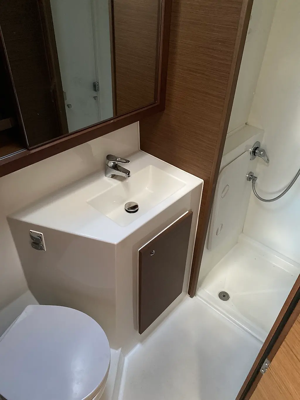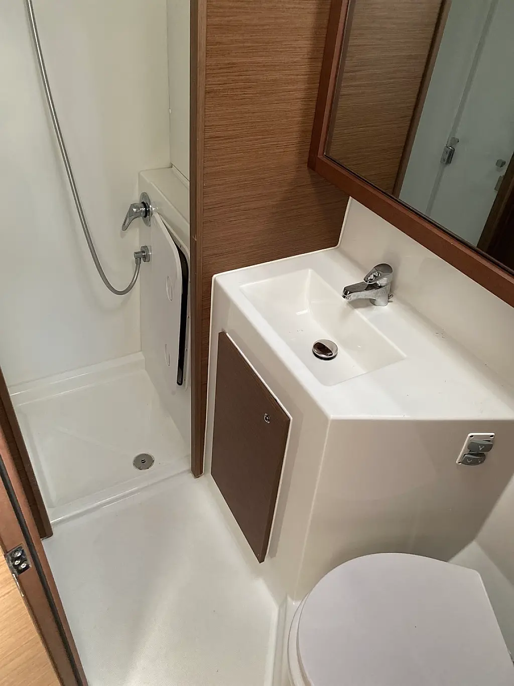 Cockpit-Kissen, Lautsprecher im Cockpit, Kaffeemaschine, Inverter, Teak Cockpit, Elektrische Winch (Segel), Kühlschrank, Elektrische Toilette, Klimaanlage, Wassermacher