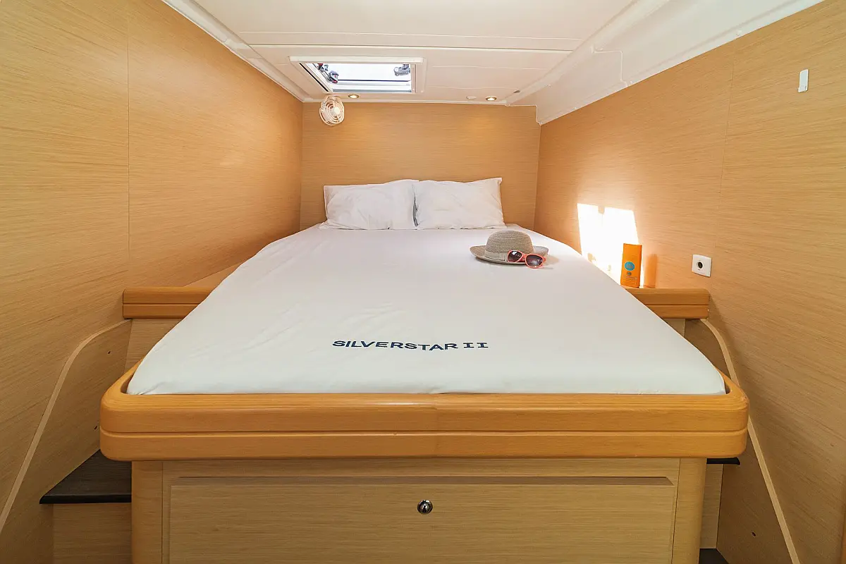 Klimaanlage, Generator, Bimini, Lautsprecher im Cockpit, Kaffeemaschine, Beiboot, Elektrische Toilette, Eismaschine, Außenbordmotor, Kühlschrank, Solar-Panele, Sprayhood, Wassermacher, Wi-Fi und Internet