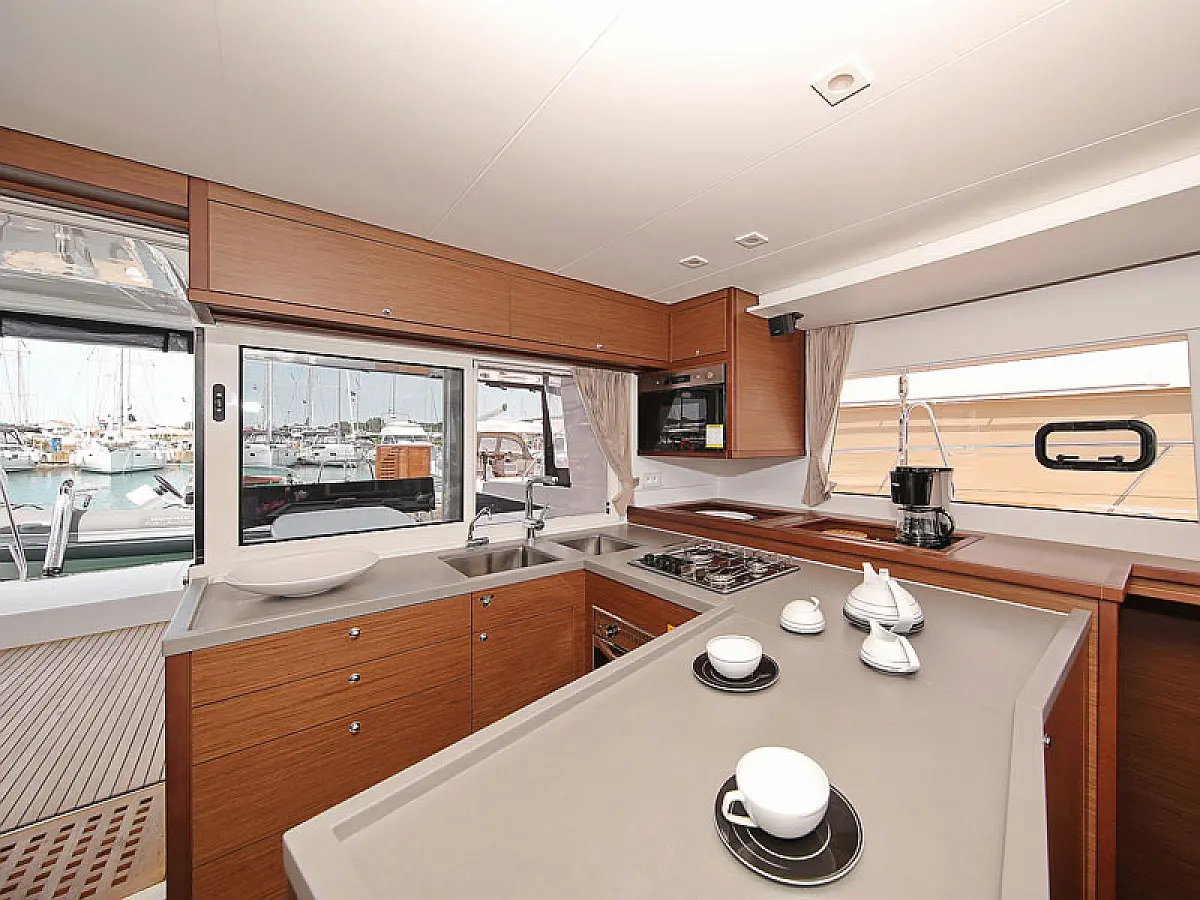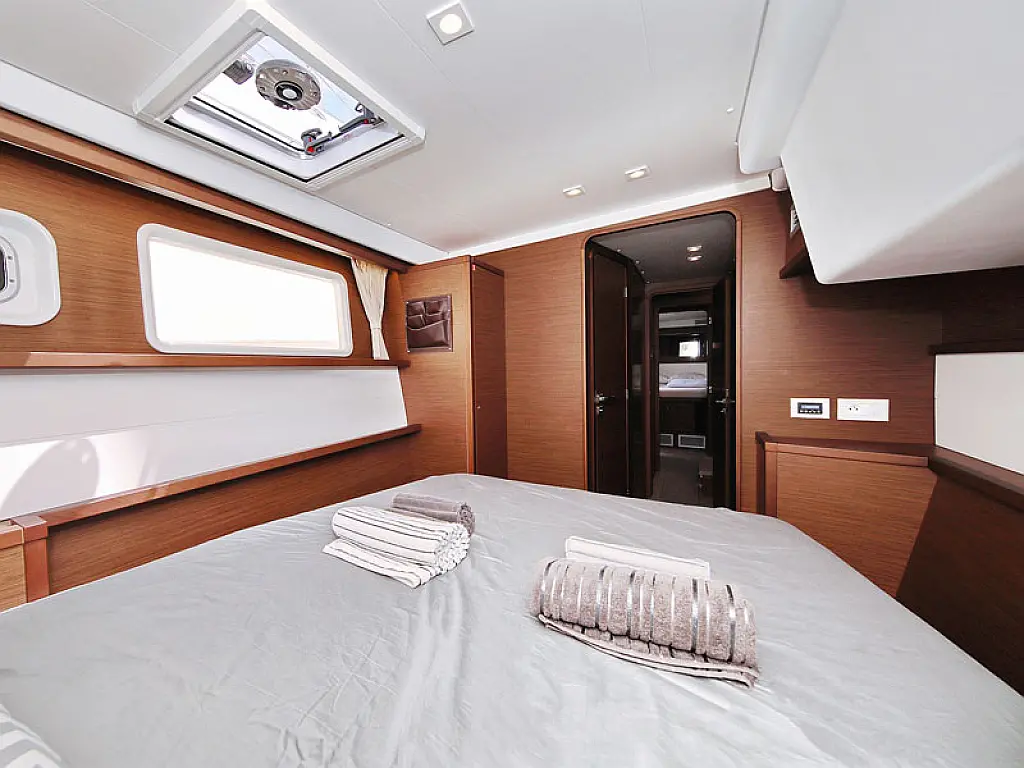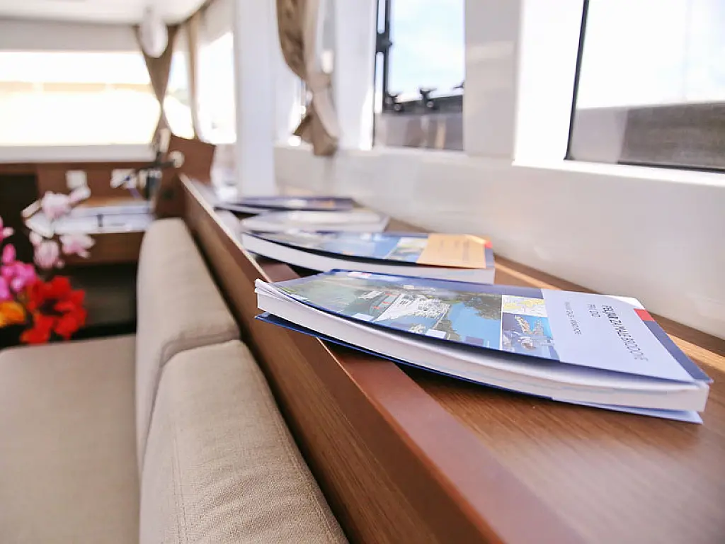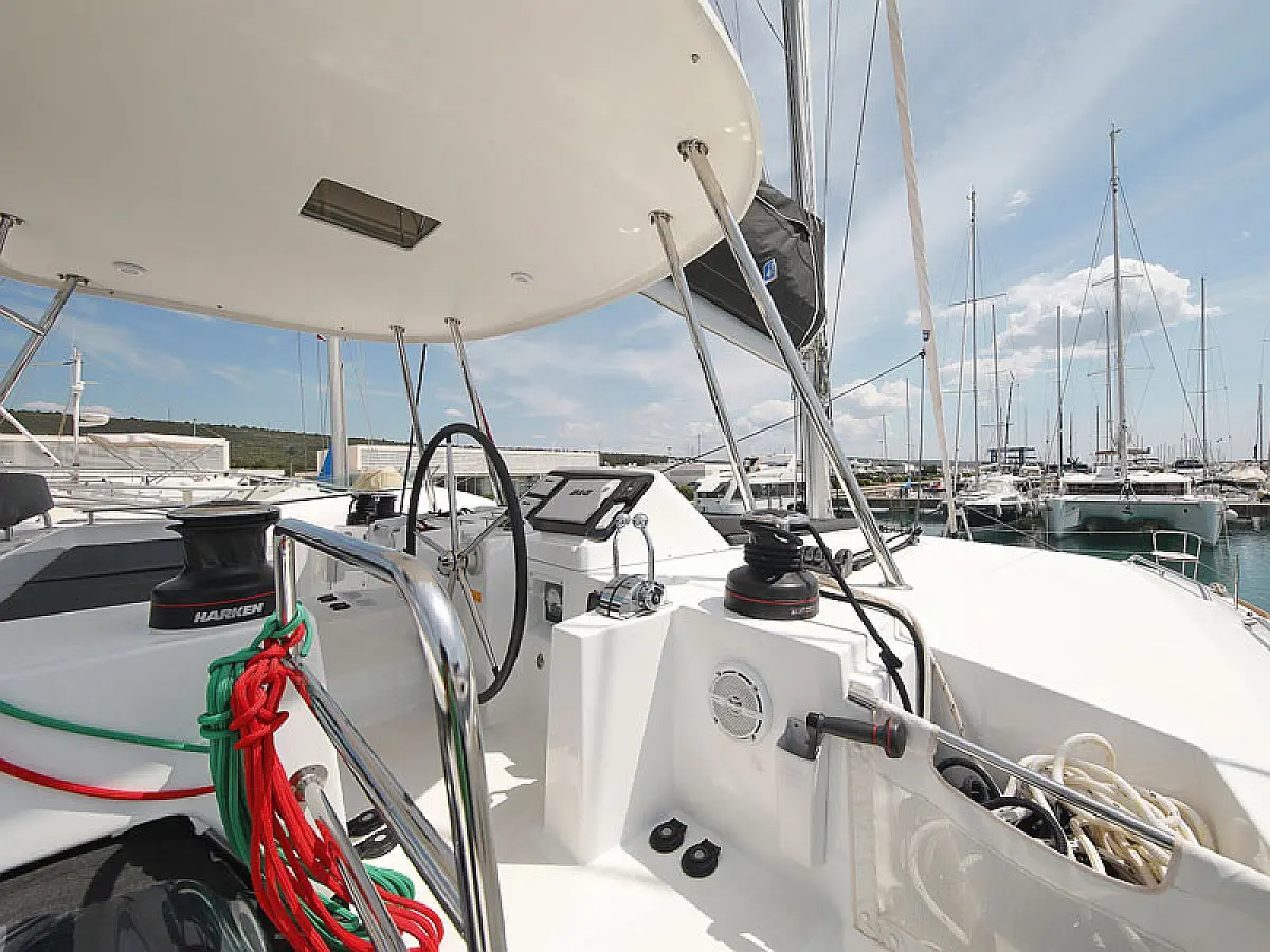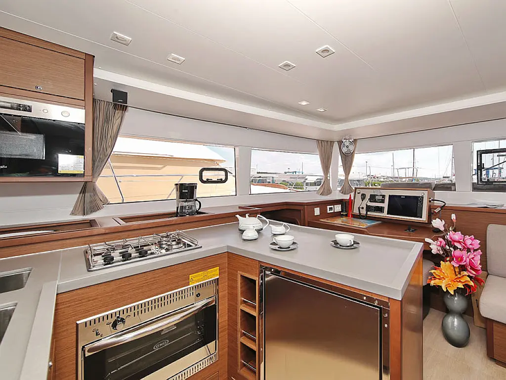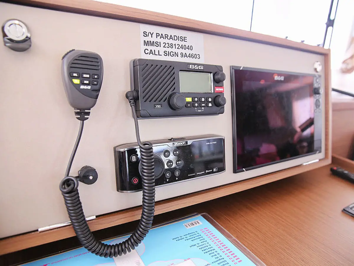 Kühlschrank, Lautsprecher im Cockpit, Elektrische Toilette, Inverter, Wi-Fi und Internet, Beiboot, Elektrische Winch (Segel), Klimaanlage, Generator, Wassermacher