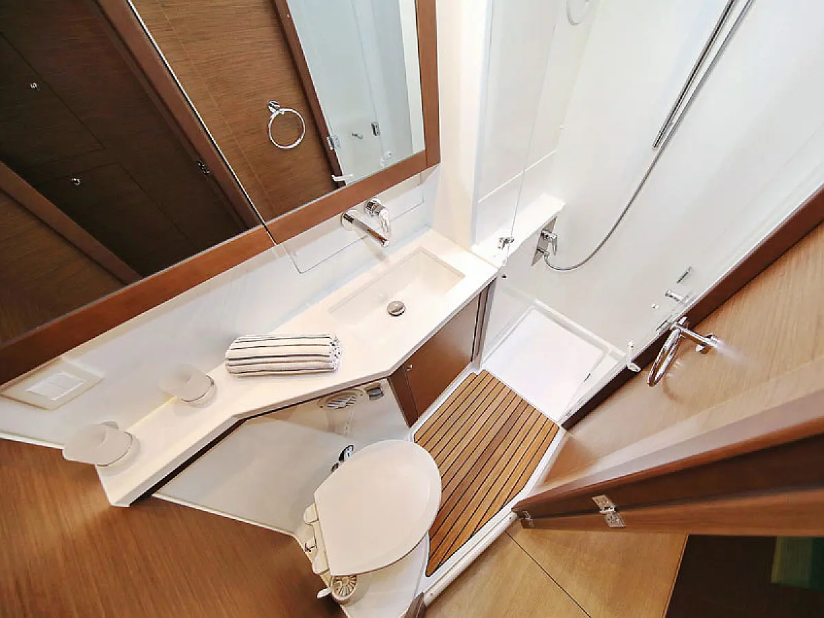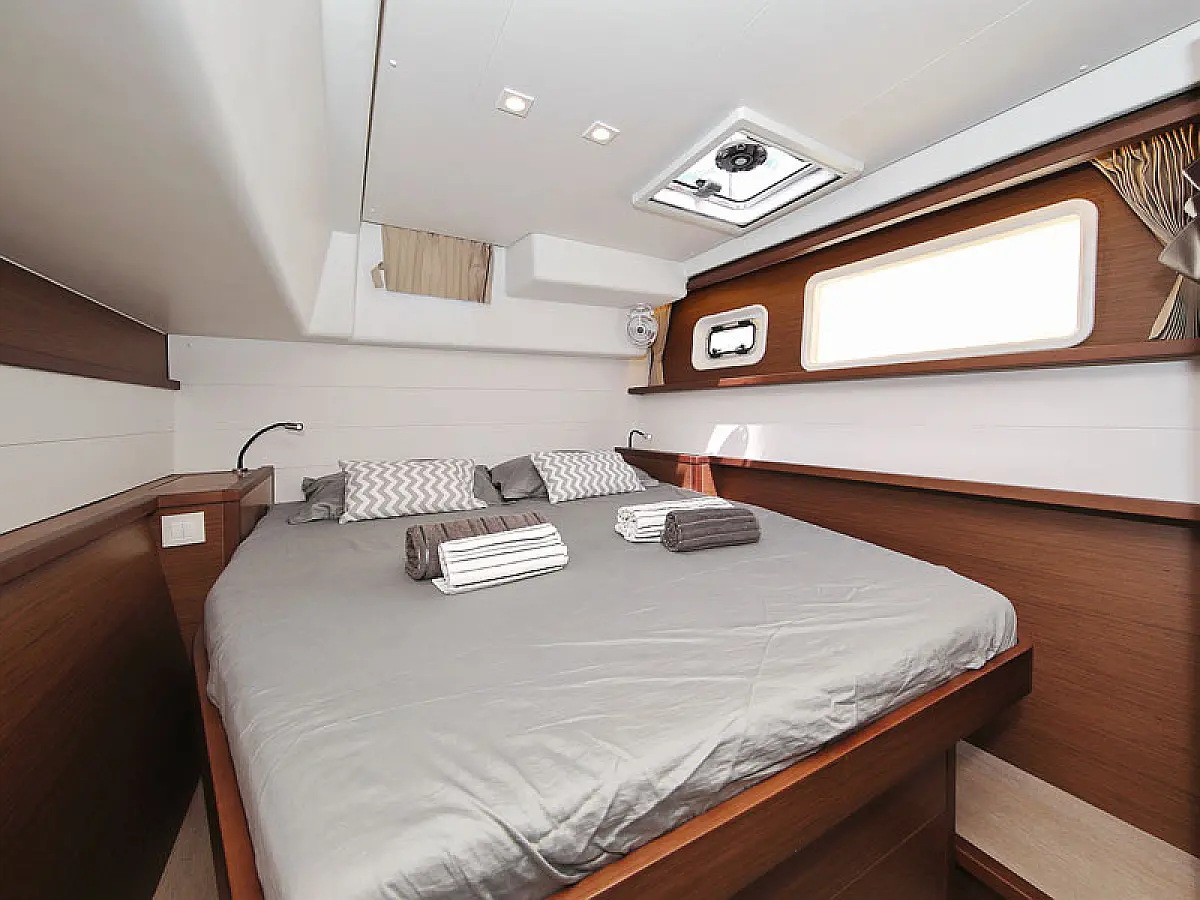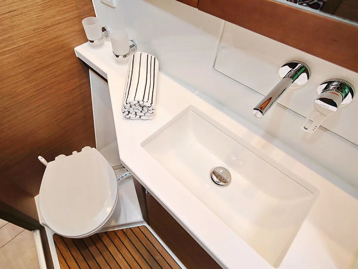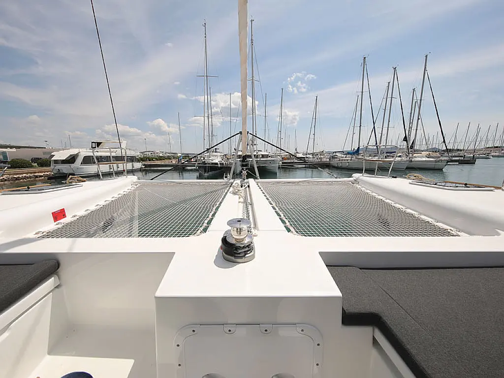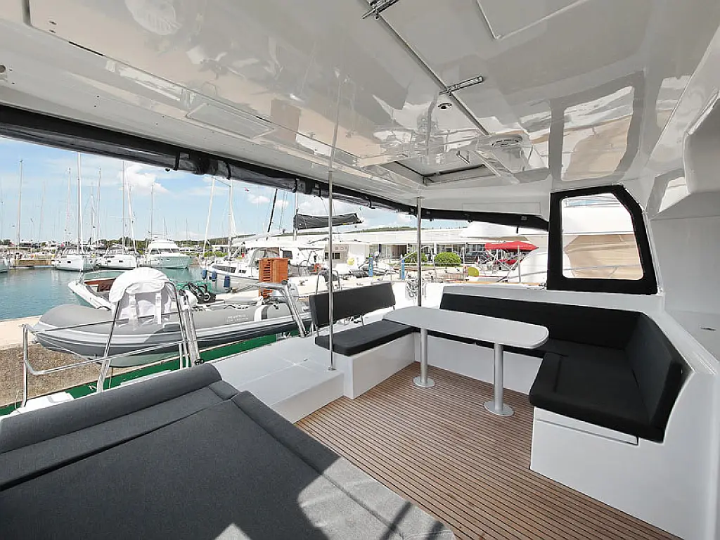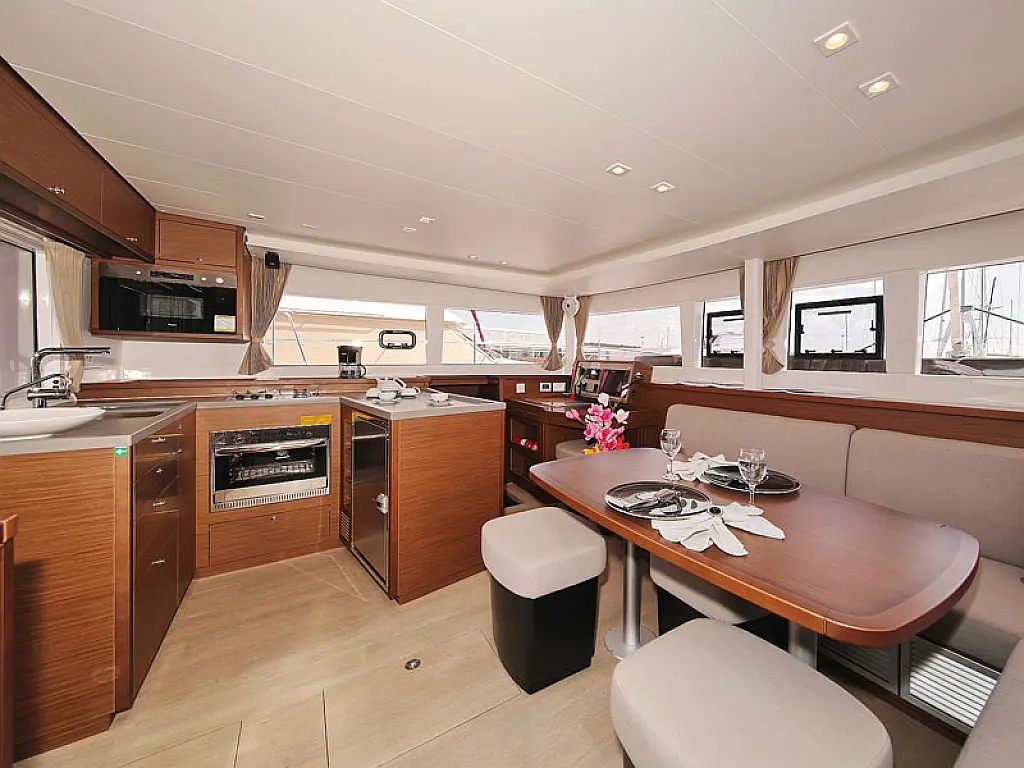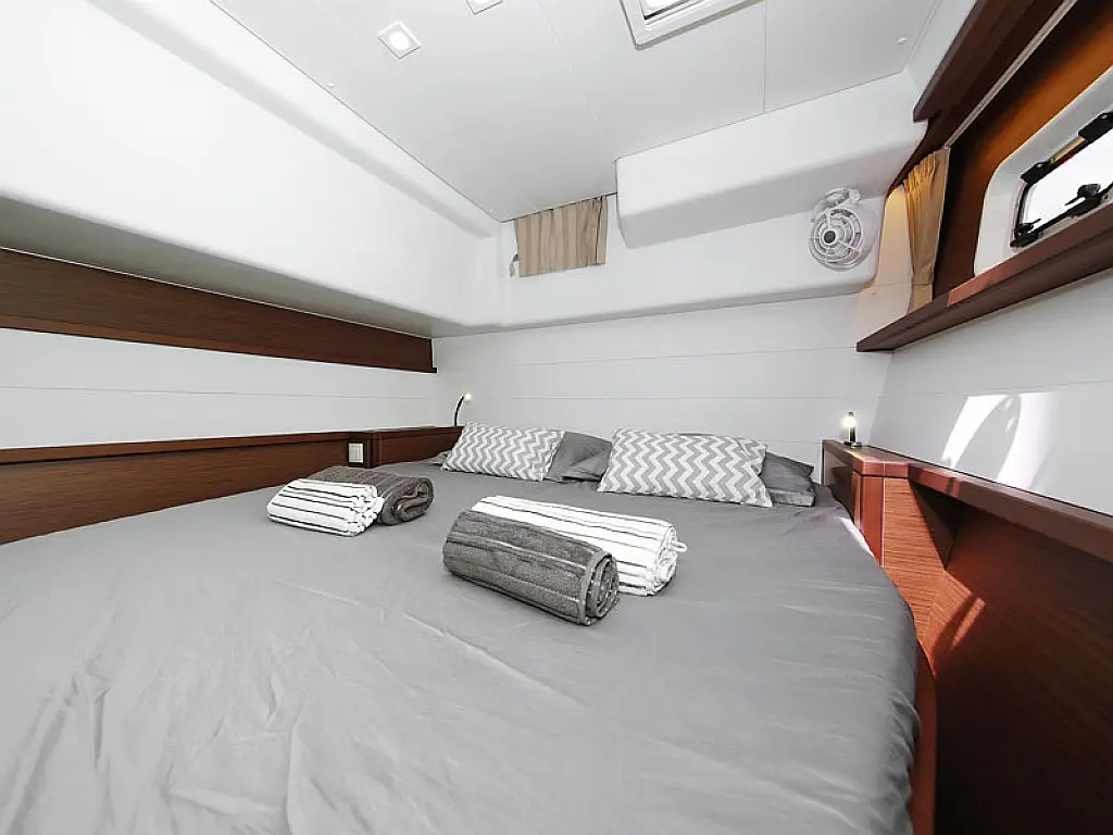 Kühlschrank, Lautsprecher im Cockpit, Elektrische Toilette, Inverter, Wi-Fi und Internet, Beiboot, Elektrische Winch (Segel), Klimaanlage, Generator, Wassermacher