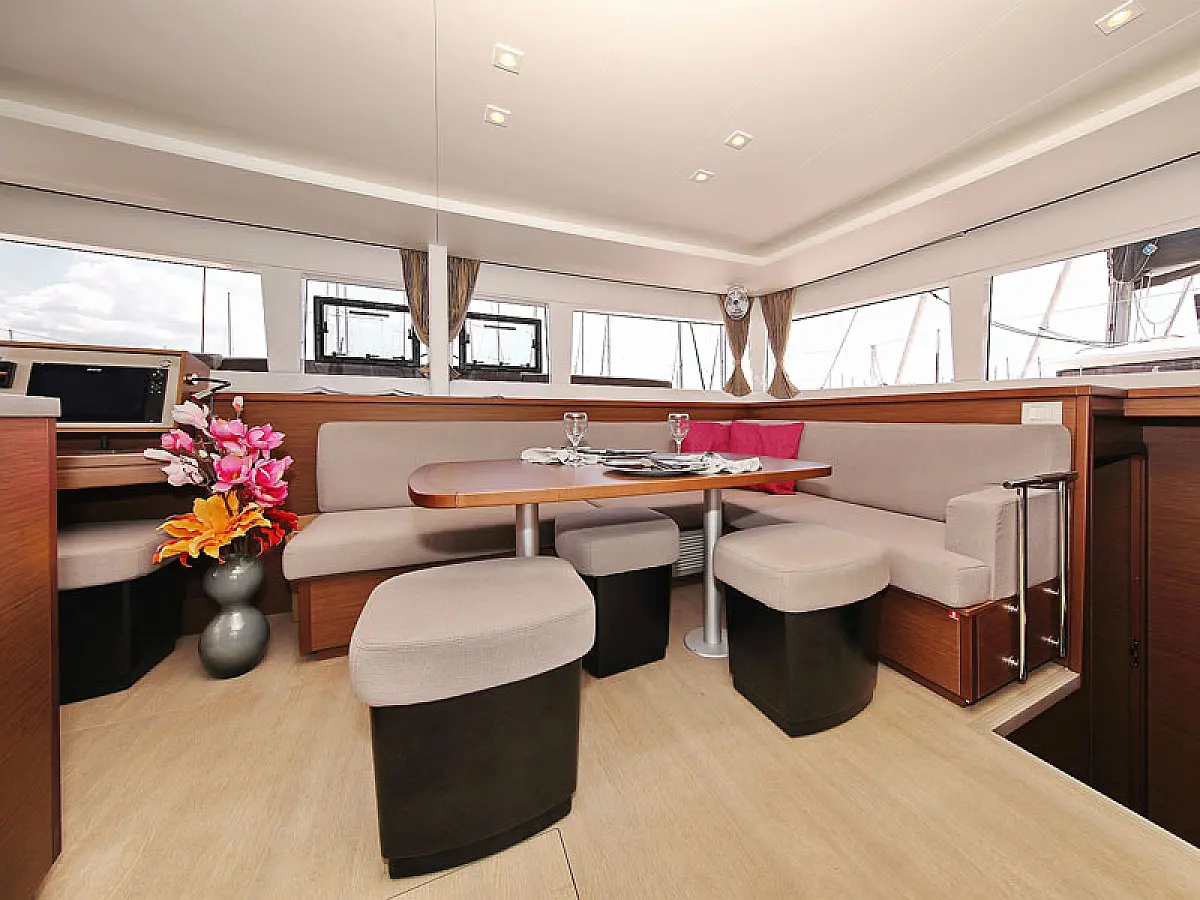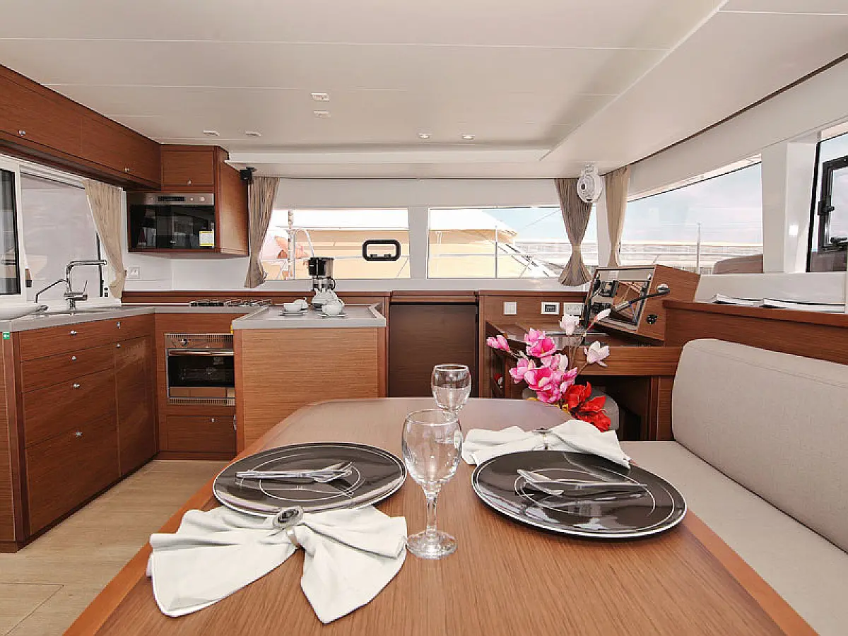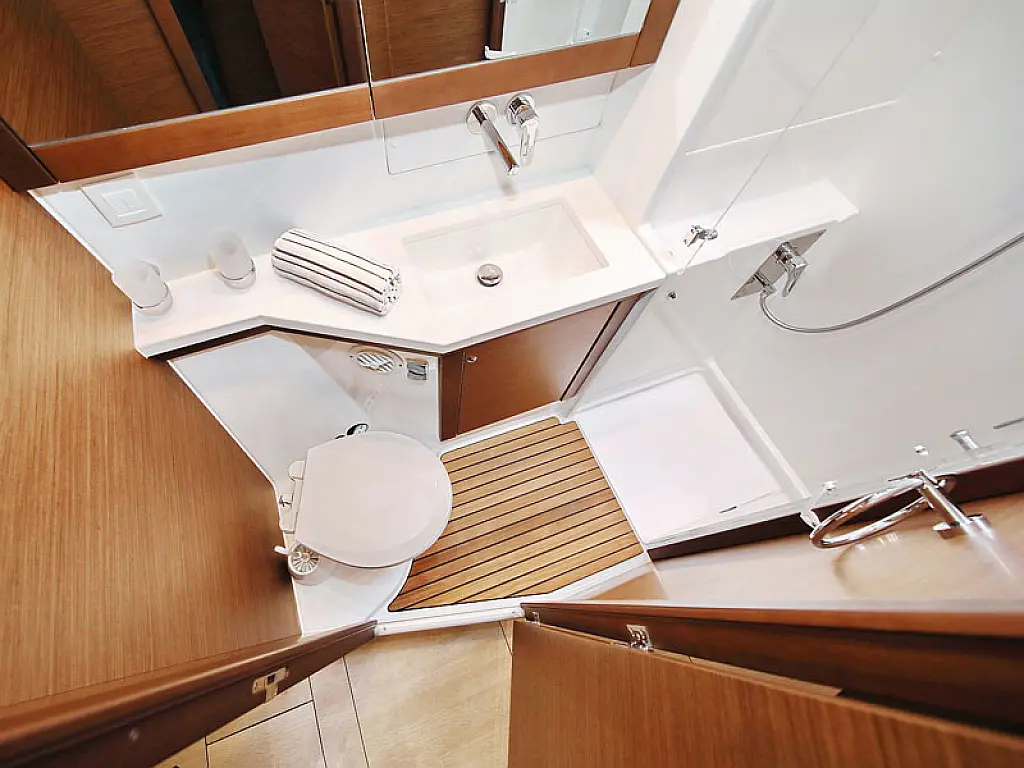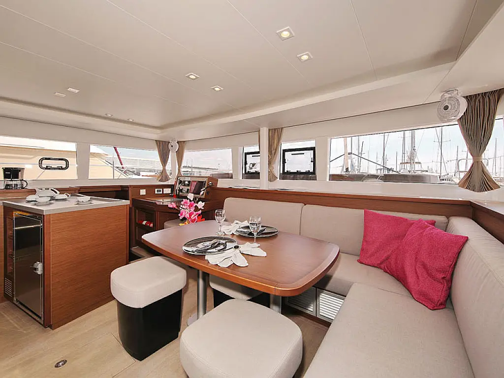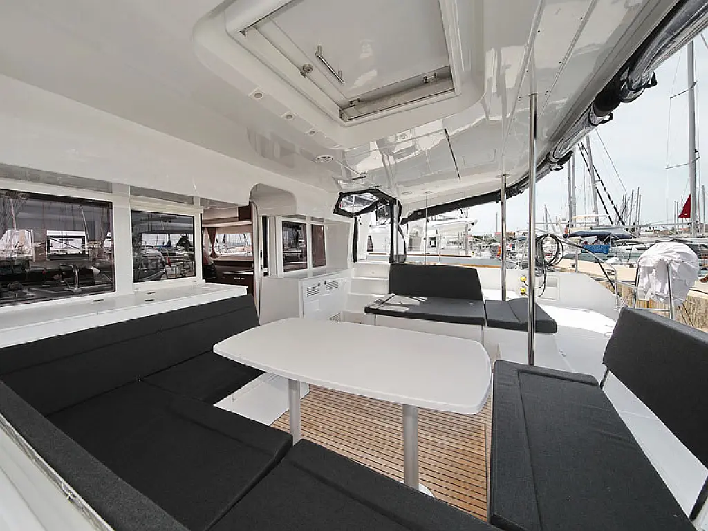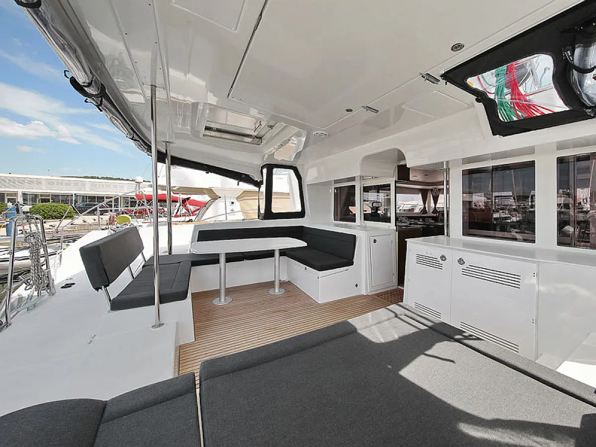 Kühlschrank, Lautsprecher im Cockpit, Elektrische Toilette, Inverter, Wi-Fi und Internet, Beiboot, Elektrische Winch (Segel), Klimaanlage, Generator, Wassermacher