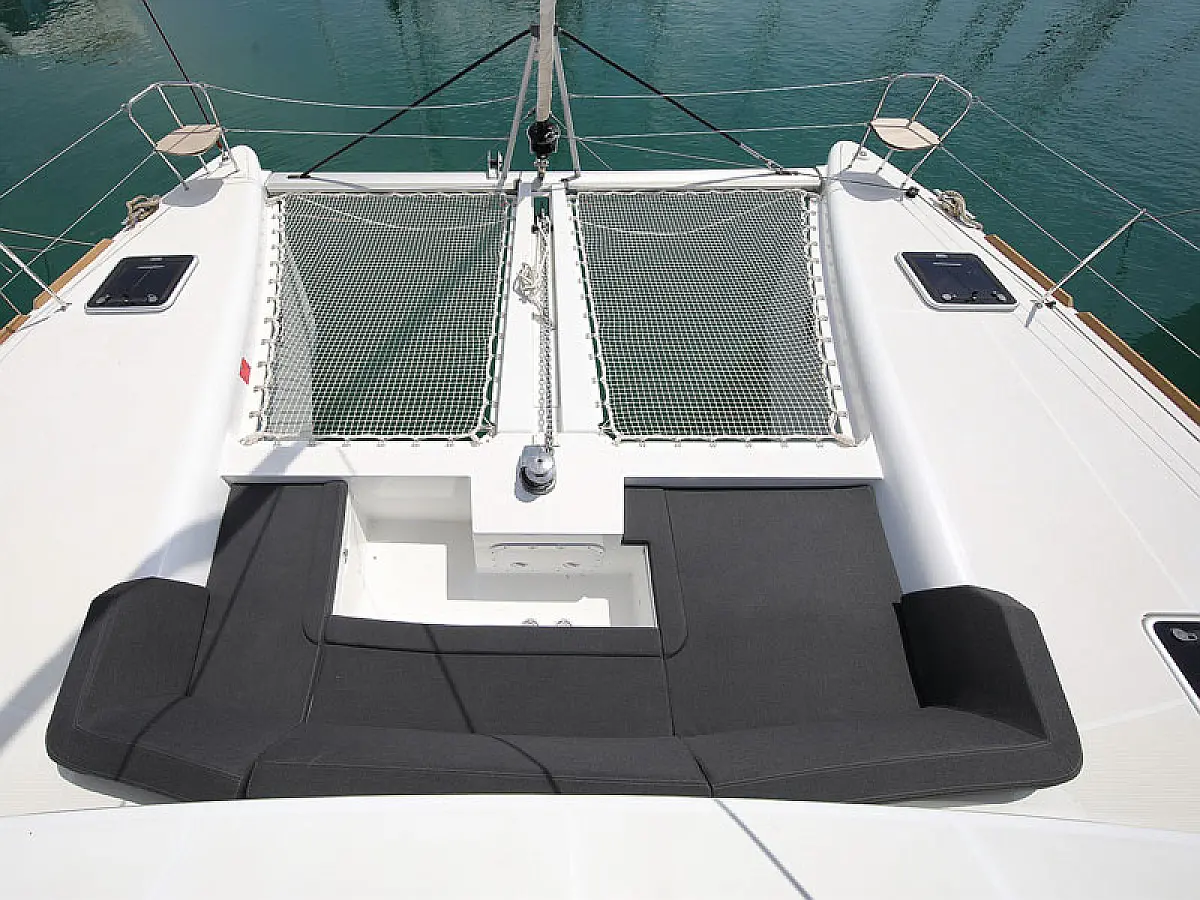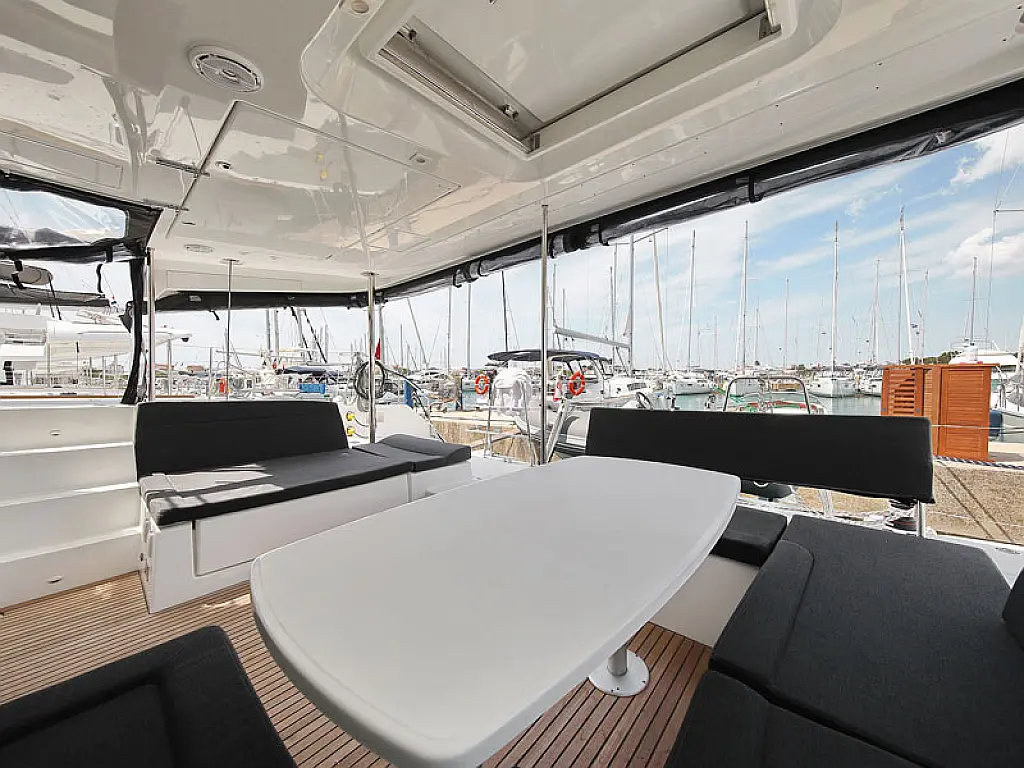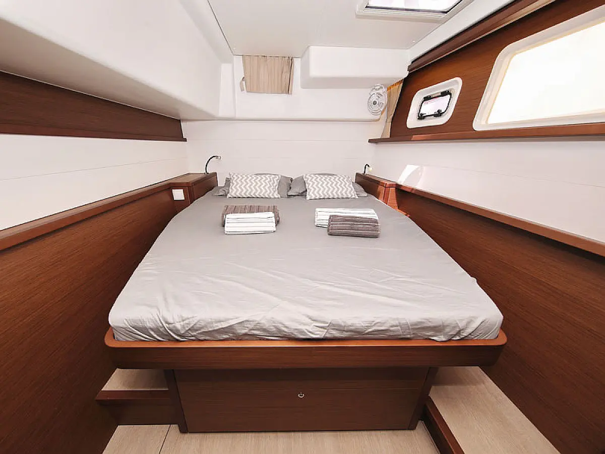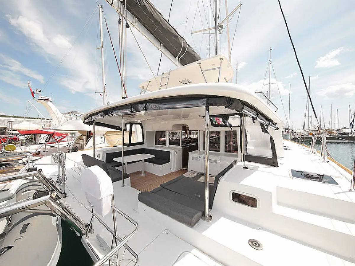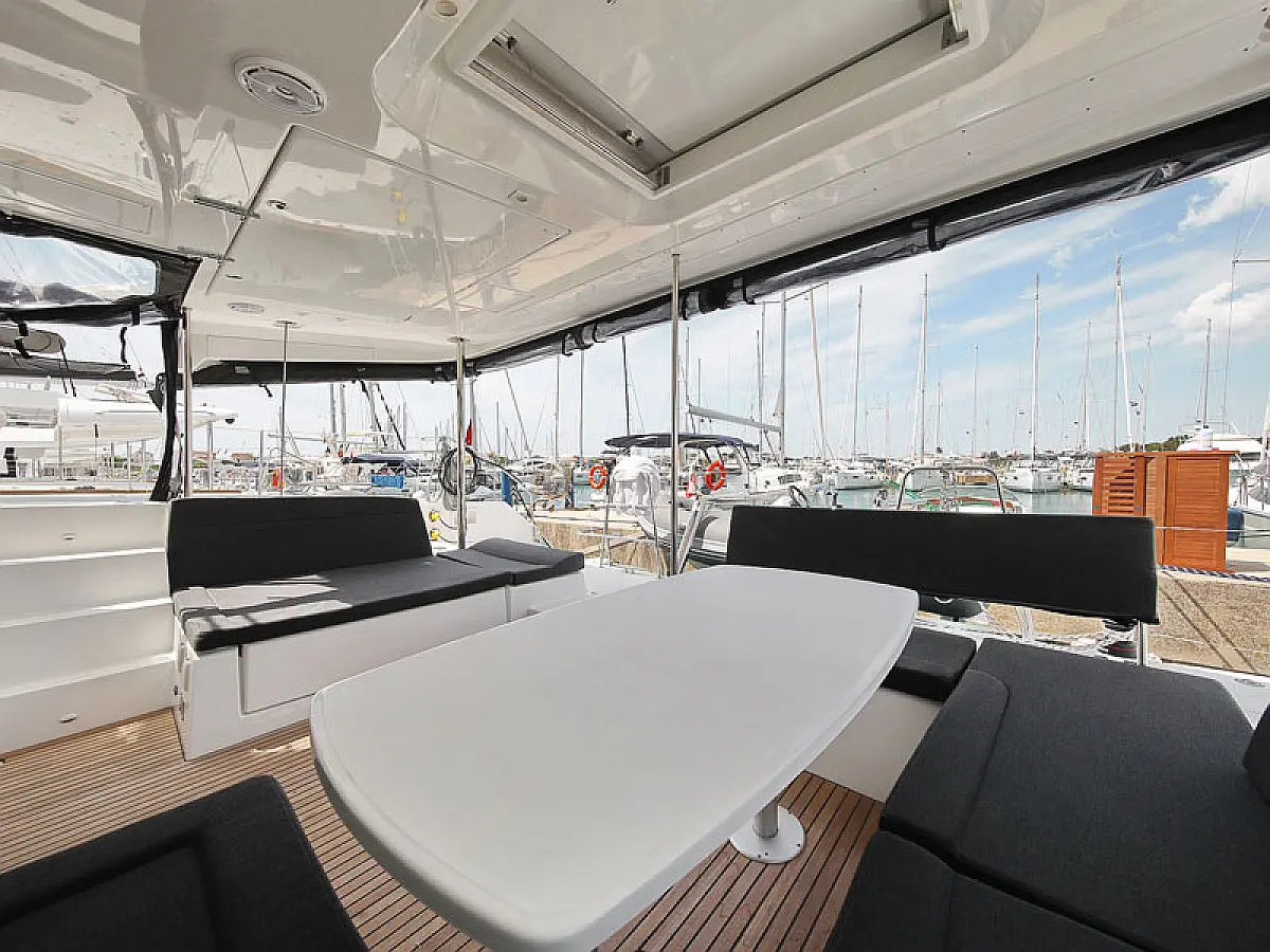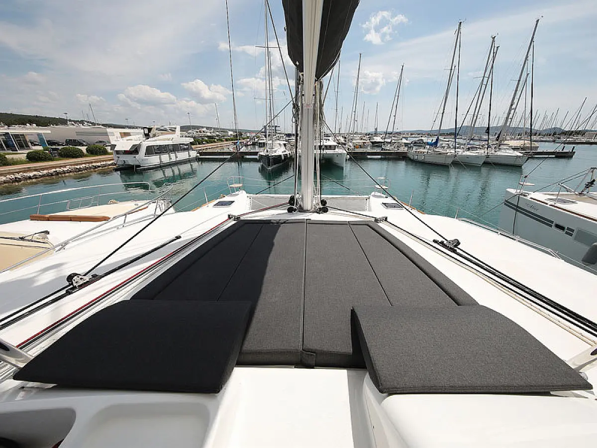 Kühlschrank, Lautsprecher im Cockpit, Elektrische Toilette, Inverter, Wi-Fi und Internet, Beiboot, Elektrische Winch (Segel), Klimaanlage, Generator, Wassermacher