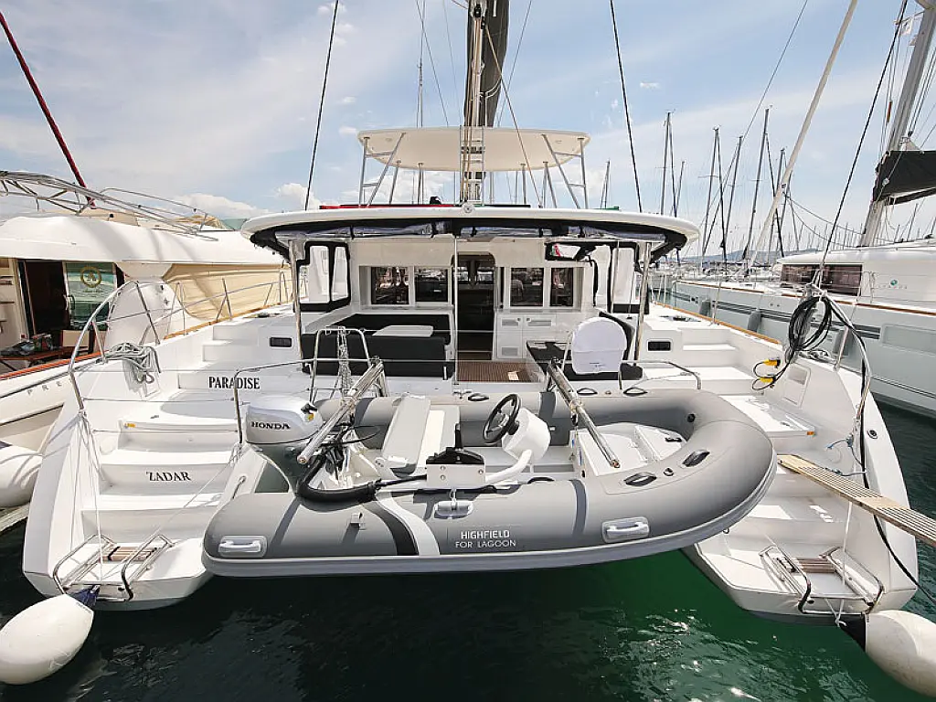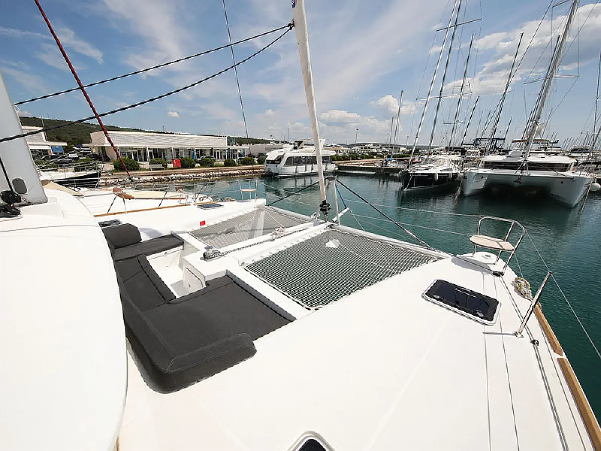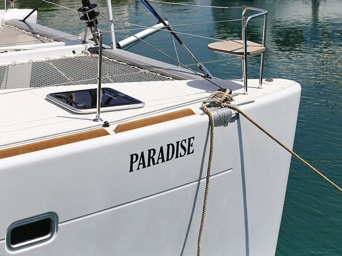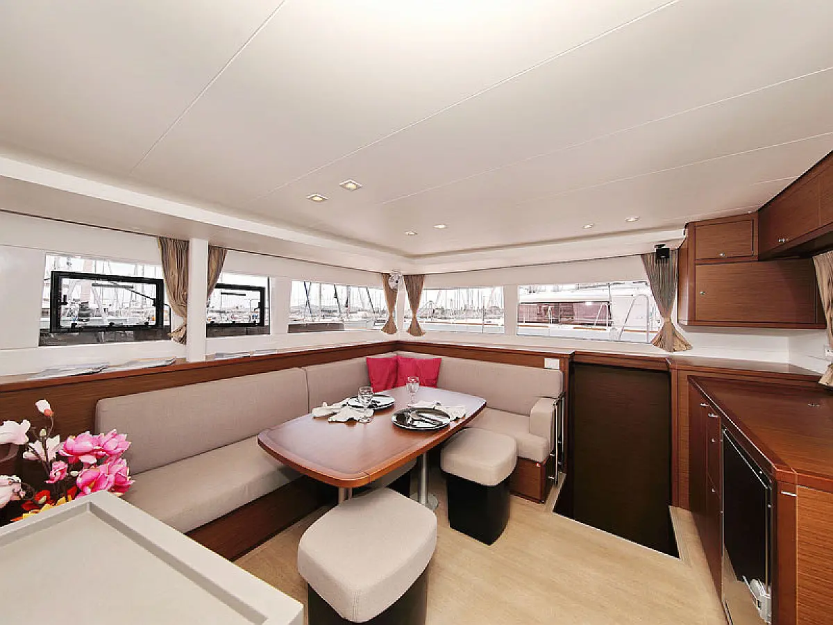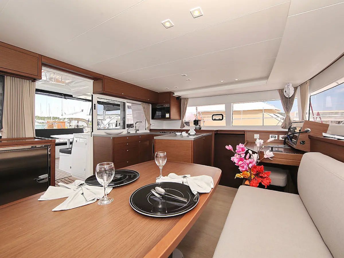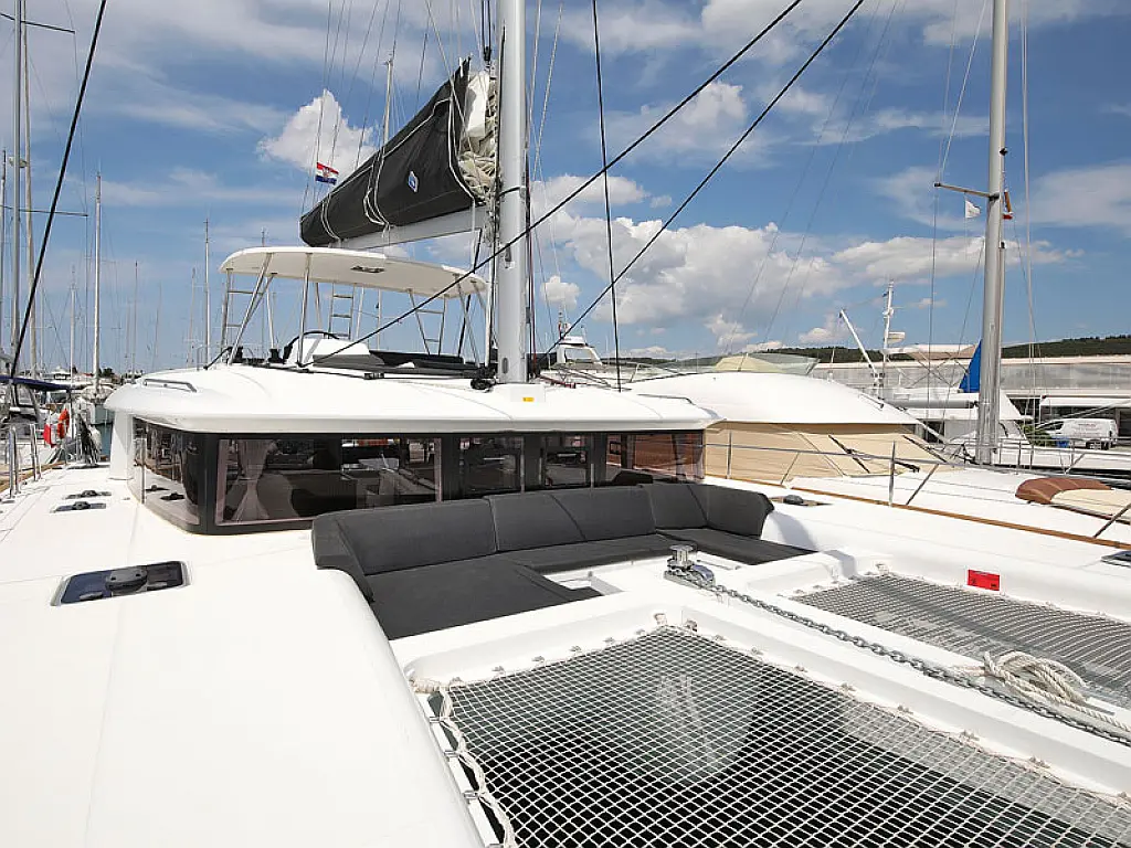 Kühlschrank, Lautsprecher im Cockpit, Elektrische Toilette, Inverter, Wi-Fi und Internet, Beiboot, Elektrische Winch (Segel), Klimaanlage, Generator, Wassermacher