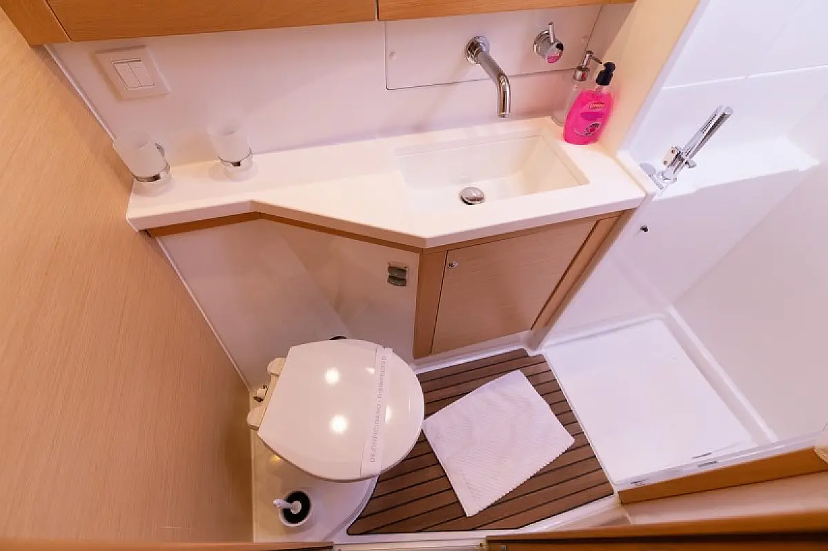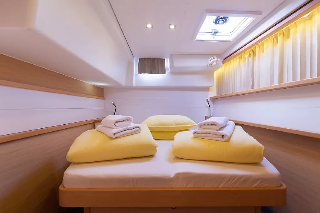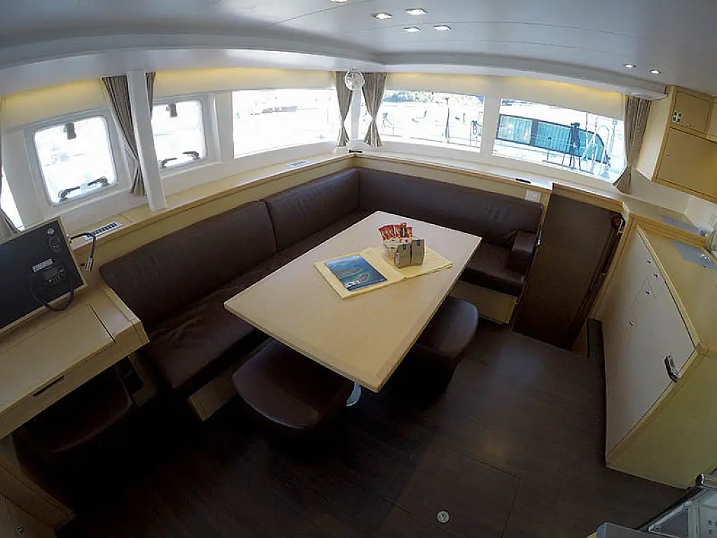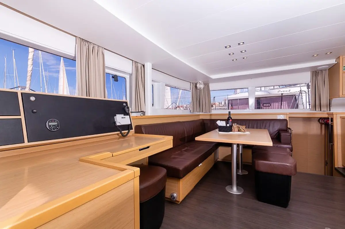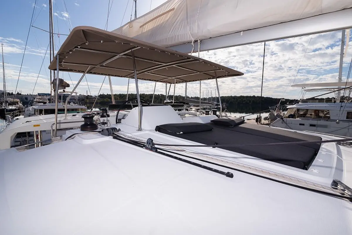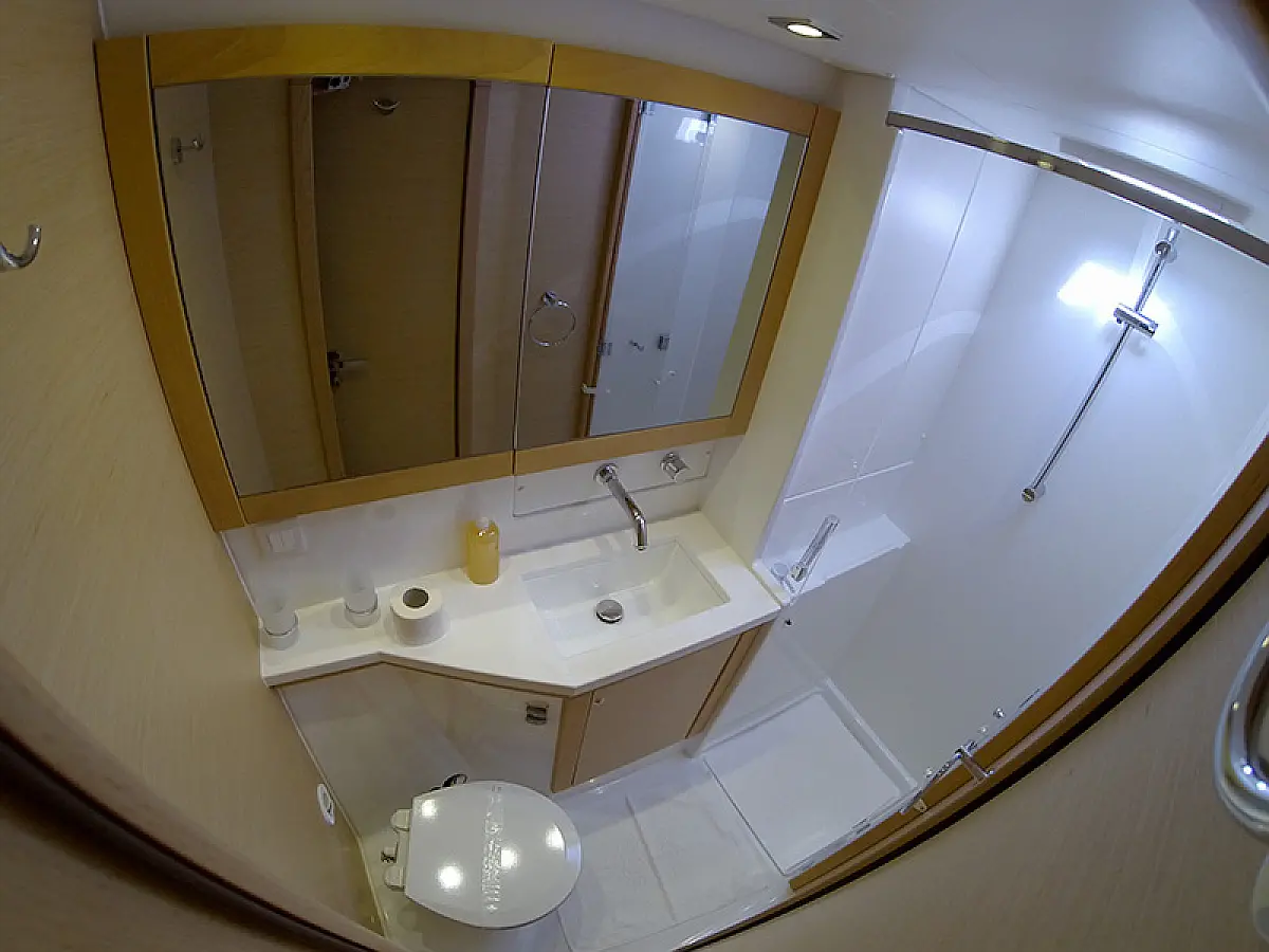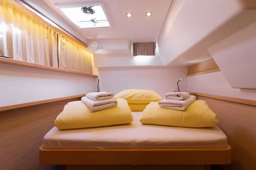 Generator, Heizung, Wassermacher, Klimaanlage, Kühlschrank, Bimini, Cockpit-Kissen, Außenbordmotor, Beiboot, Elektrische Winch (Segel), Hydraulische Gangway, Wi-Fi und Internet