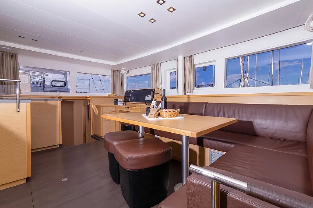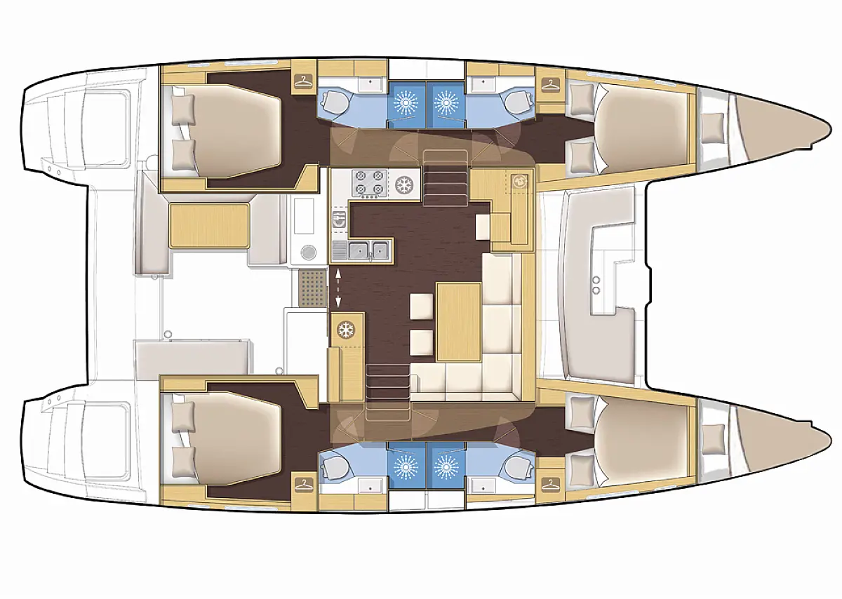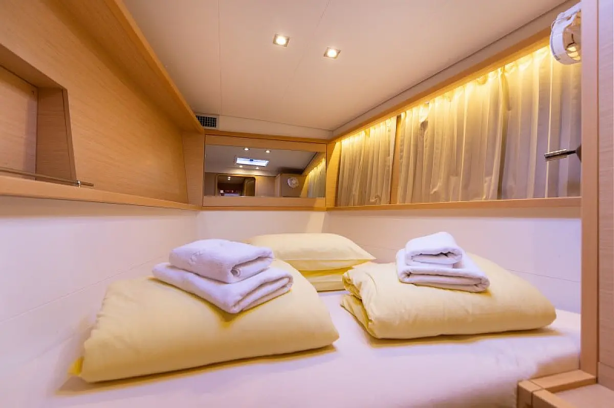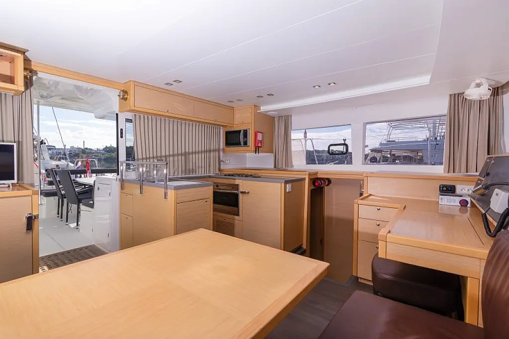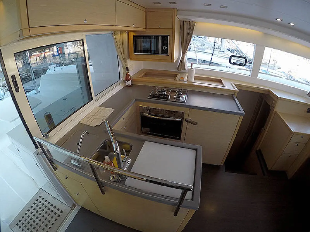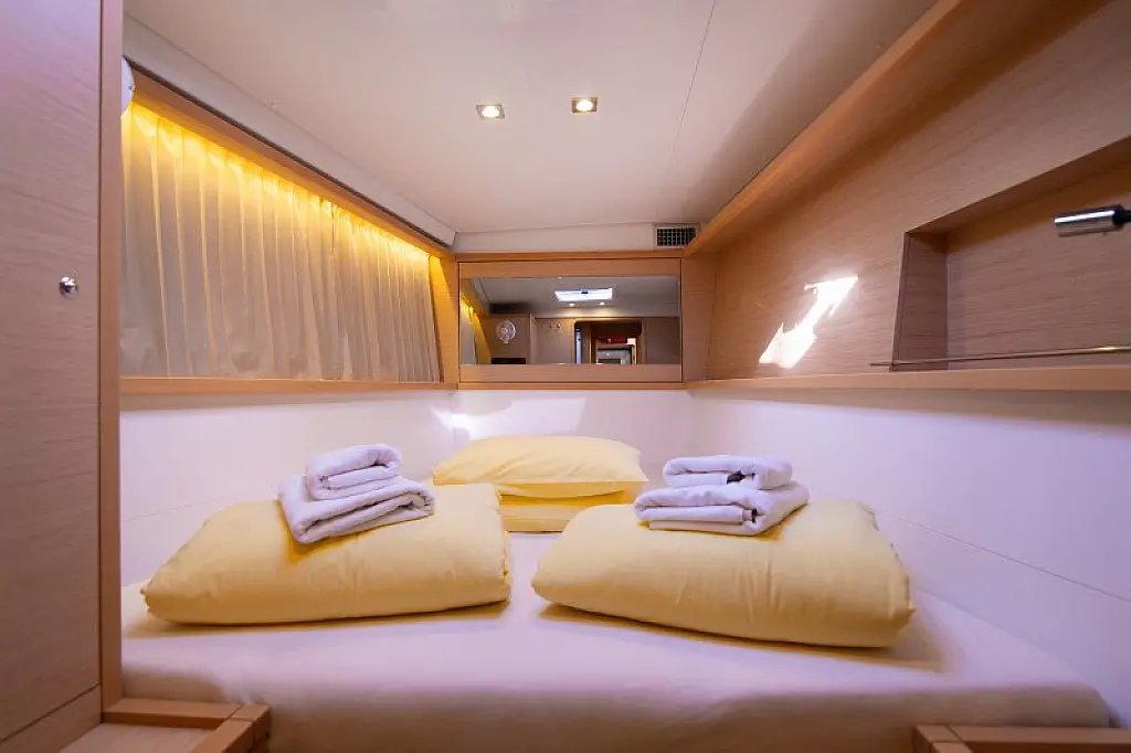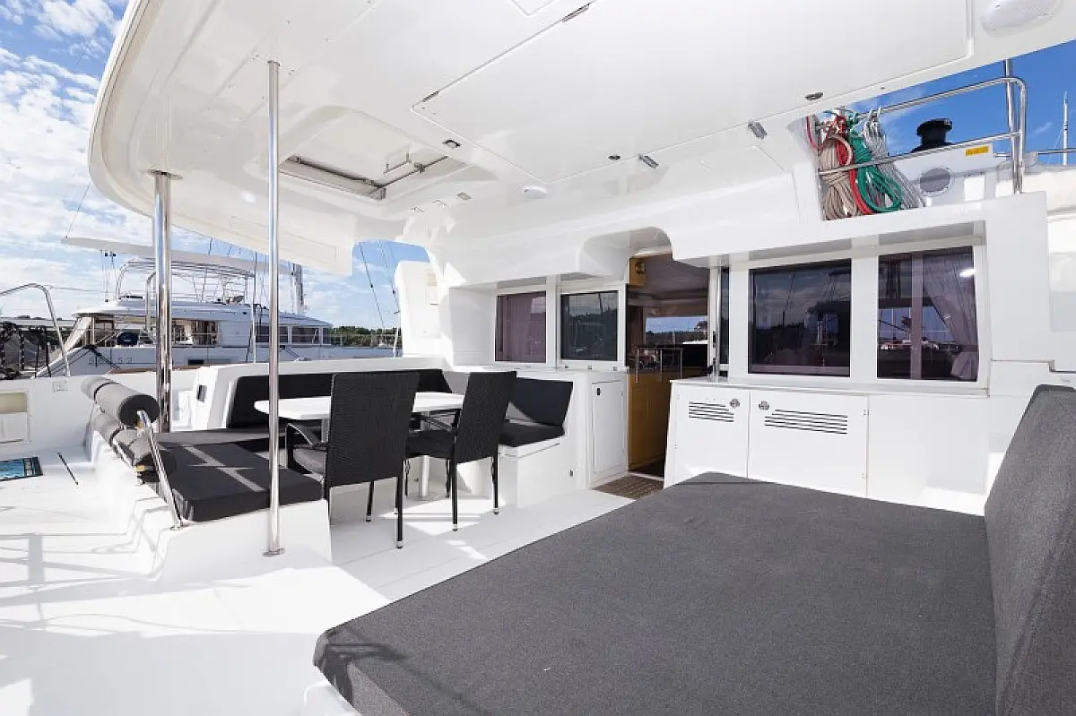 Generator, Heizung, Wassermacher, Klimaanlage, Kühlschrank, Bimini, Cockpit-Kissen, Außenbordmotor, Beiboot, Elektrische Winch (Segel), Hydraulische Gangway, Wi-Fi und Internet