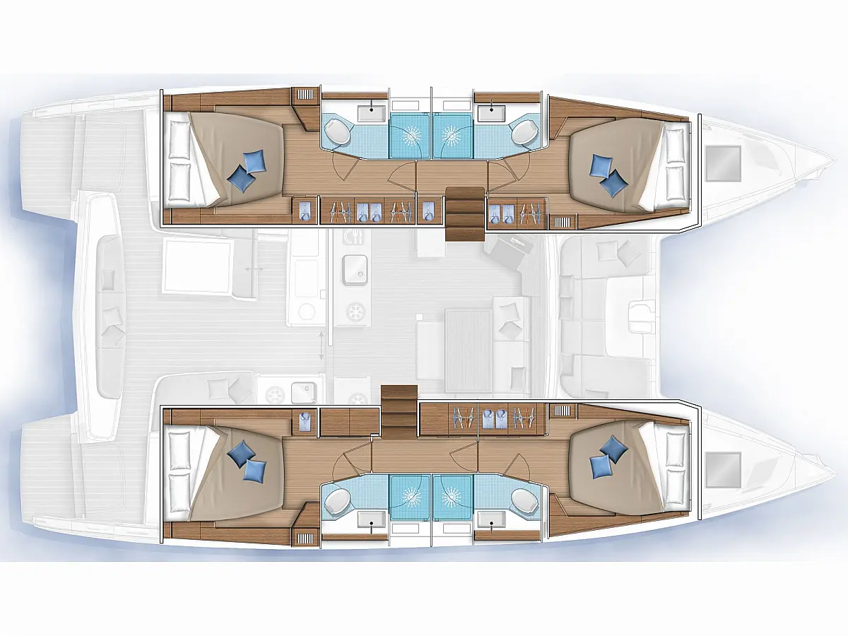 Elektrische Toilette, Lautsprecher im Cockpit, Heizung, Cockpit-Kissen, Kühlschrank, Klimaanlage, Wassermacher, Generator, Flybridge, Solar-Panele, Wi-Fi und Internet, Beiboot, Elektrische Winch (Segel), Bimini, Kaffeemaschine, Inverter