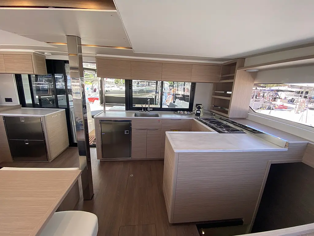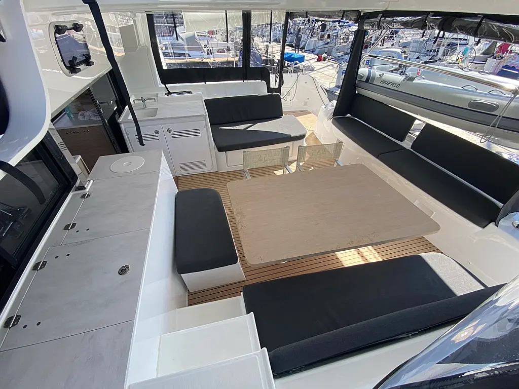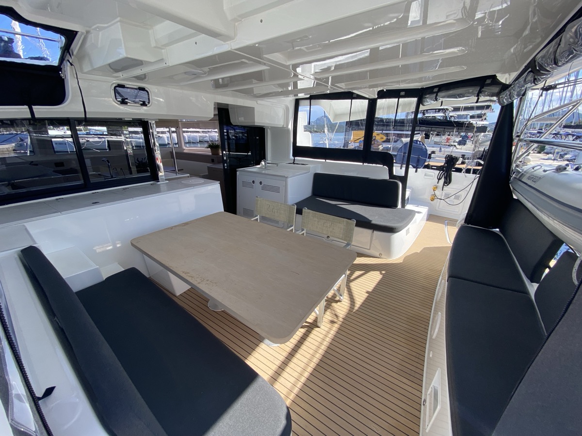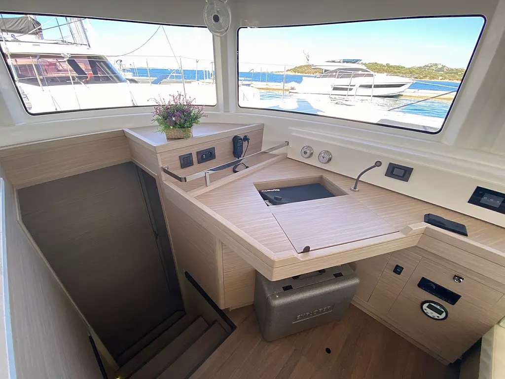 Cockpit-Kissen, Lautsprecher im Cockpit, Kaffeemaschine, Inverter, Generator, Elektrische Winch (Segel), Kühlschrank, Bimini, Elektrische Toilette, Klimaanlage, Wassermacher