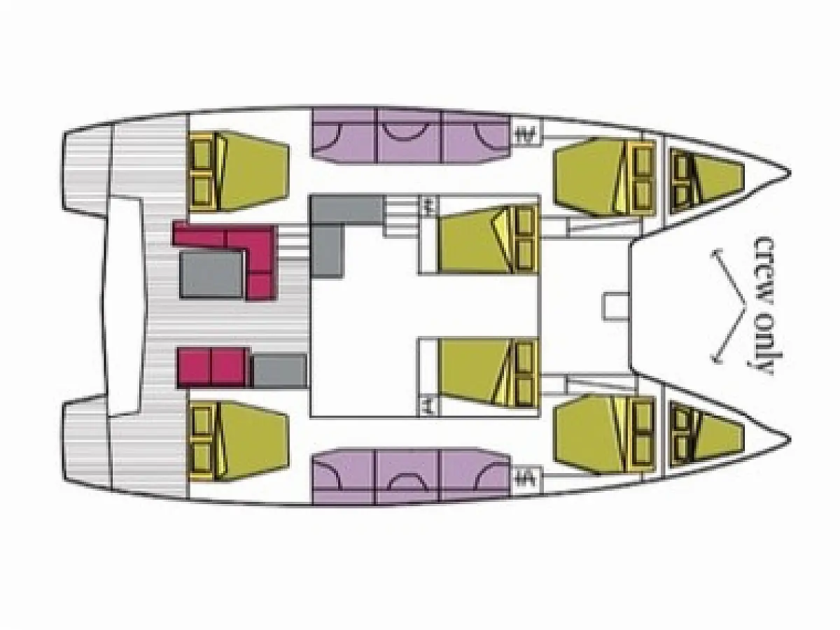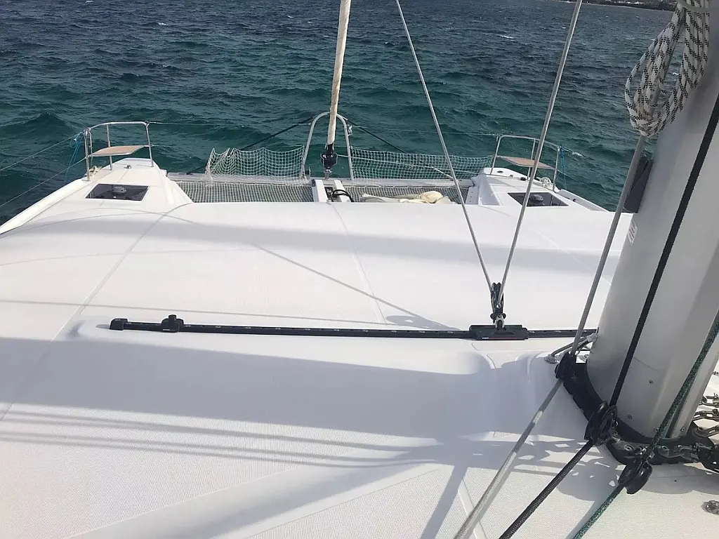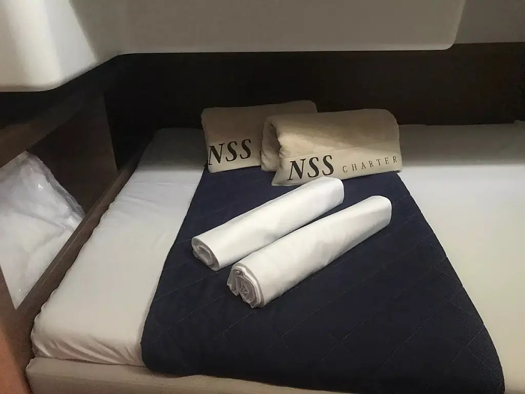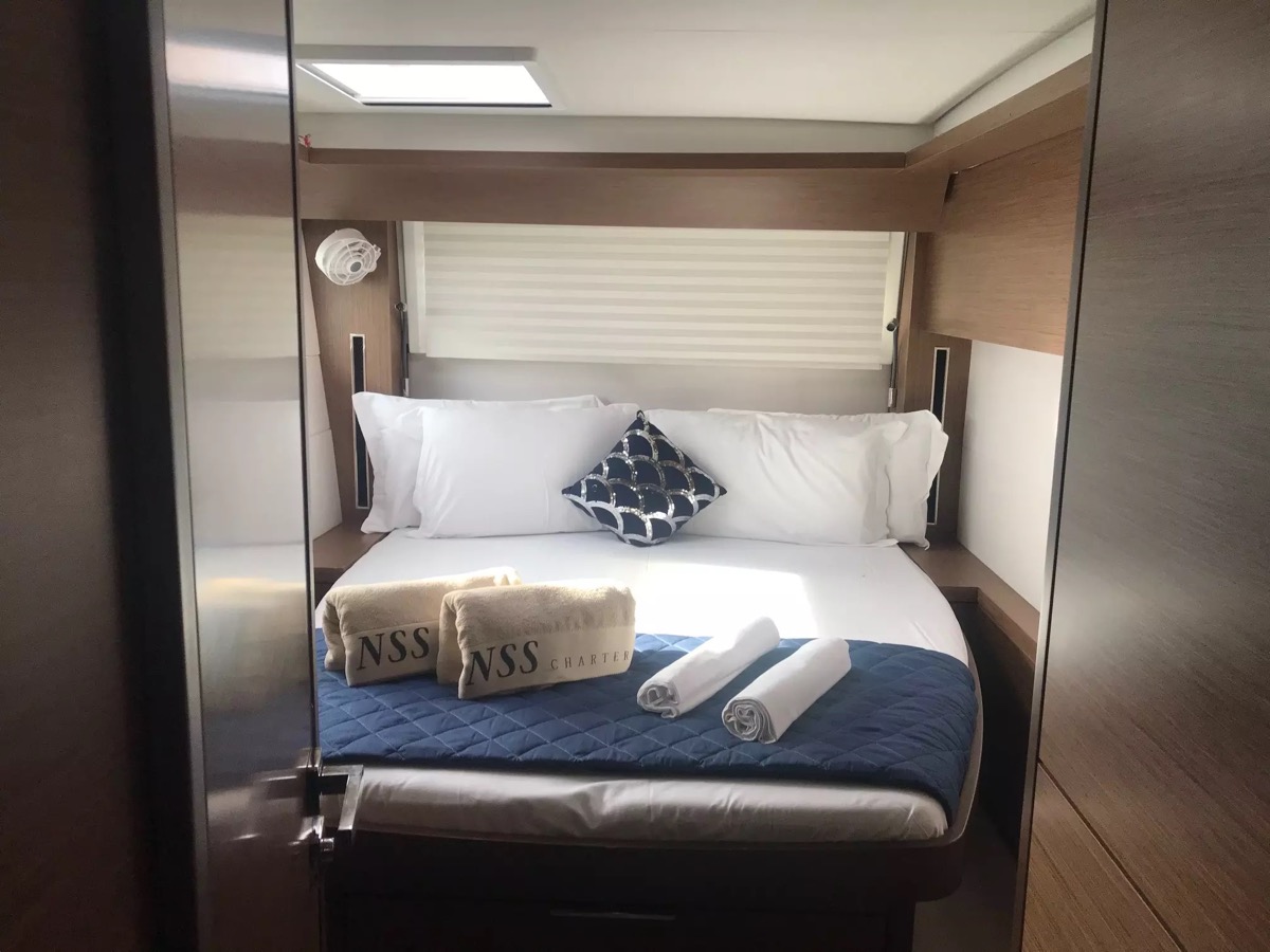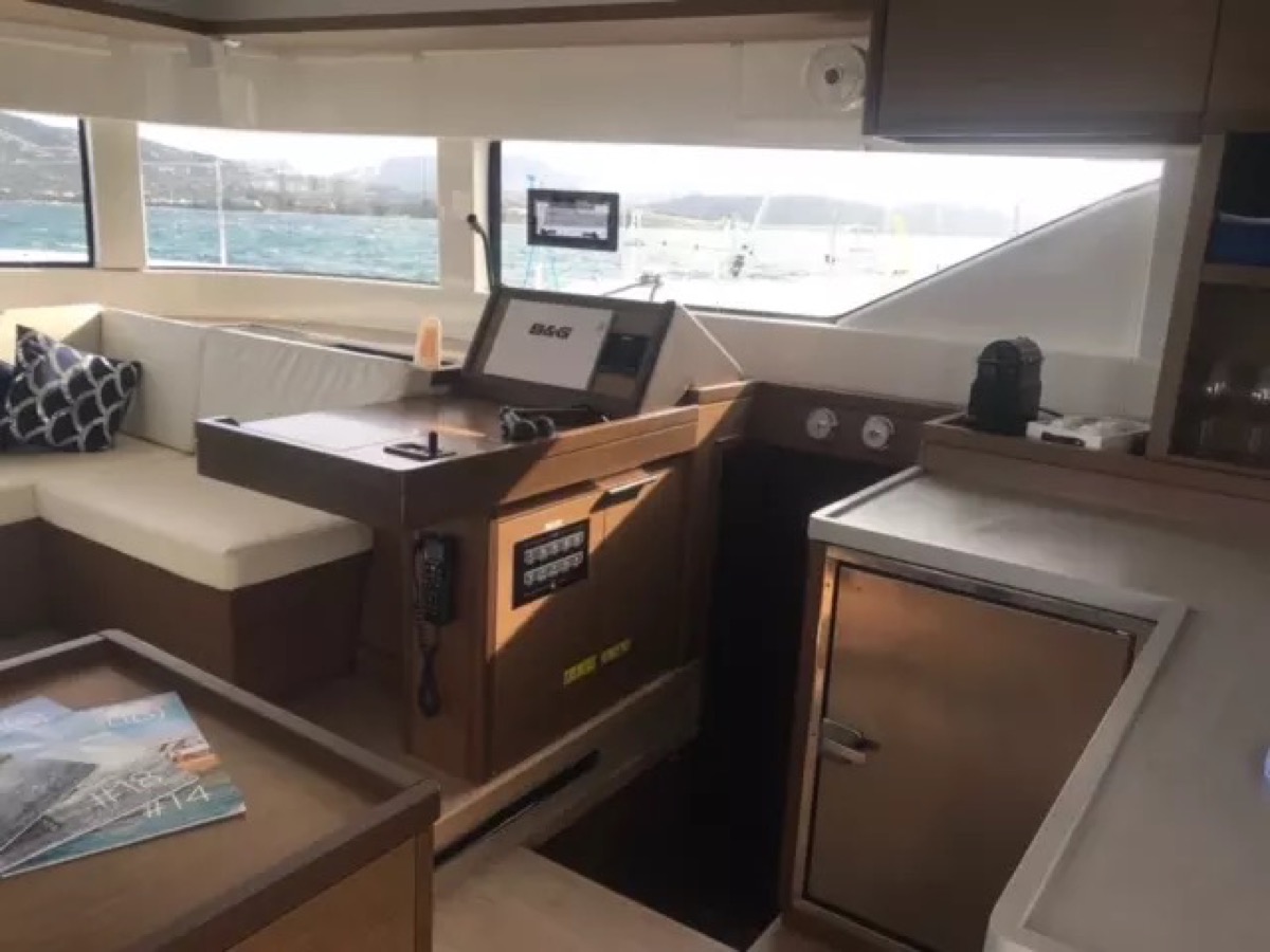 Cockpit-Kissen, Lautsprecher im Cockpit, Kaffeemaschine, Inverter, Außenbordmotor, Generator, Teak Cockpit, Beiboot, Kühlschrank, Bimini, Elektrische Toilette, Klimaanlage, Wassermacher, Hydraulische Gangway, Sprayhood