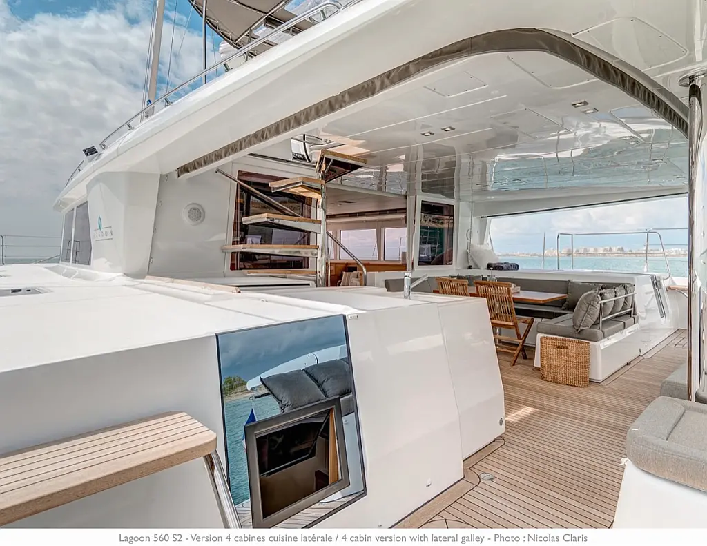 Lautsprecher im Cockpit, Inverter, Außenbordmotor, Generator, Beiboot, Kühlschrank, Bimini, Elektrische Toilette, Klimaanlage, Wassermacher, Hydraulische Gangway, Sprayhood