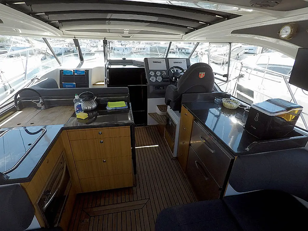 Heizung, Klimaanlage, Solar-Panele, Cockpit-Kissen, Außenbordmotor, Teakdeck, Beiboot, Wi-Fi und Internet