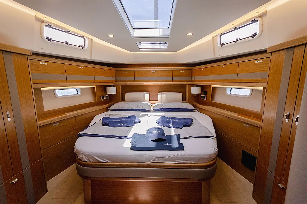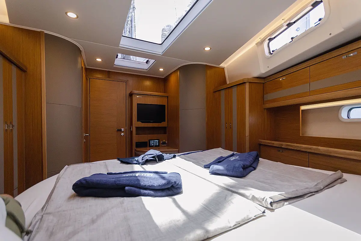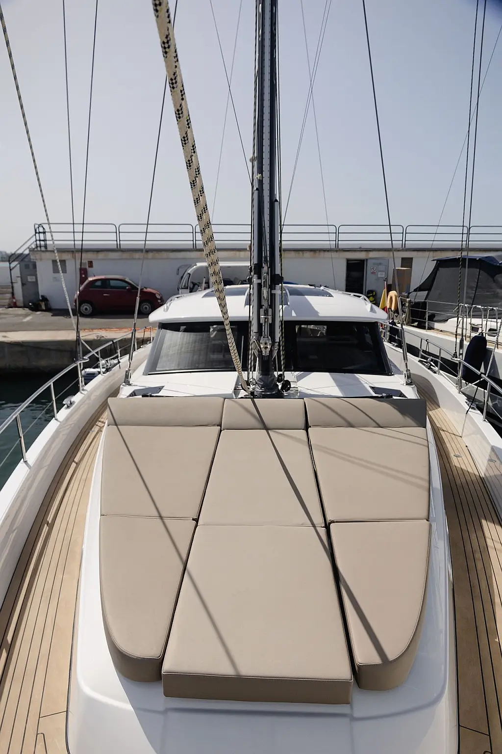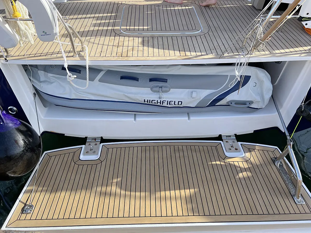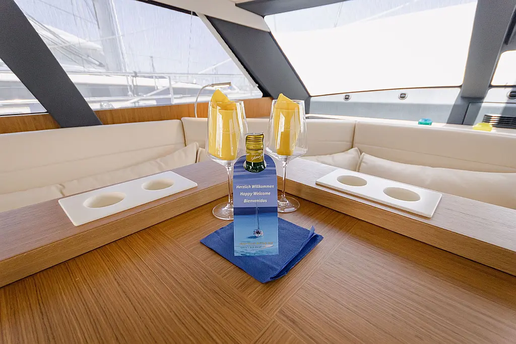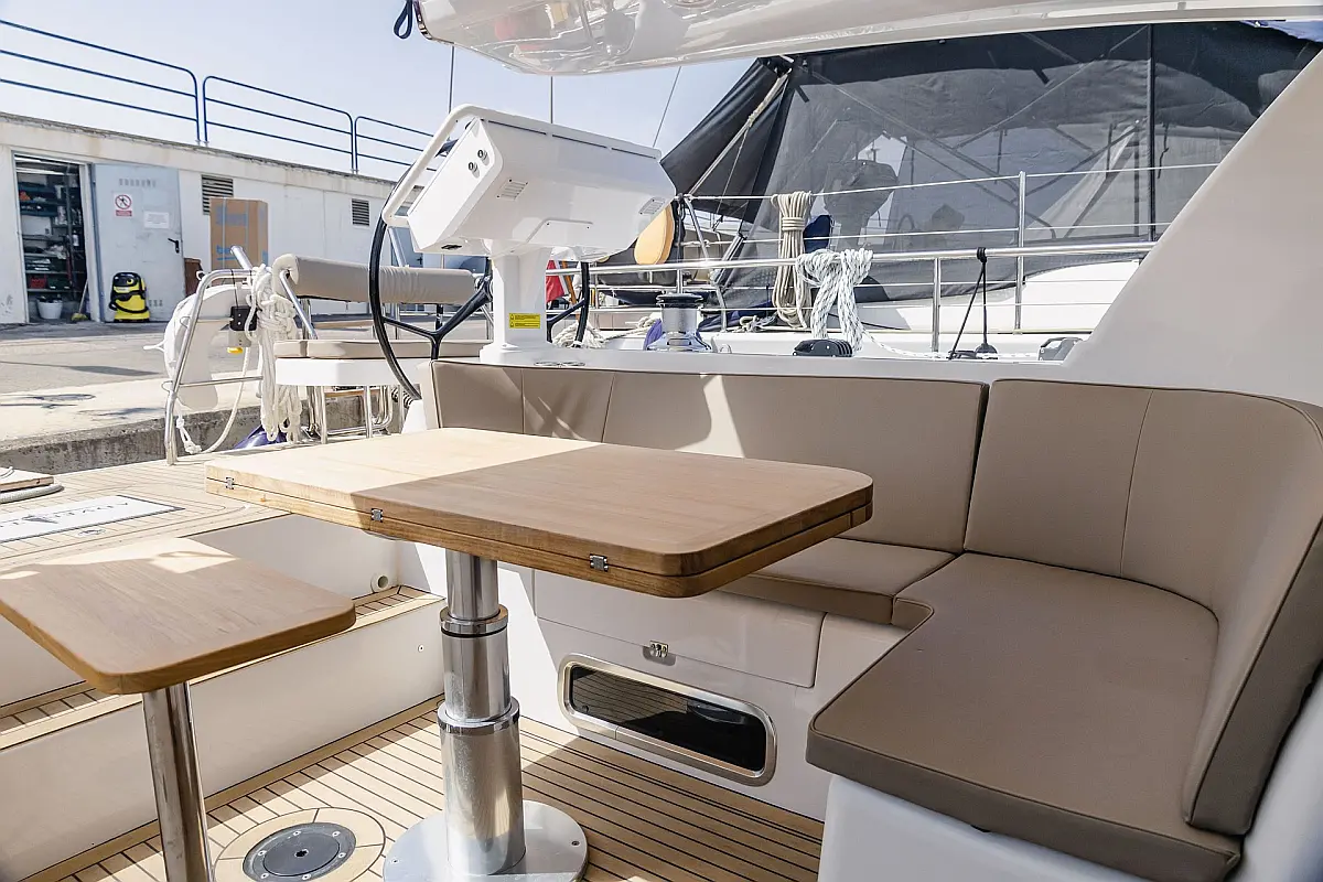 Kühlschrank, Wi-Fi und Internet, Heizung, Kaffeemaschine, Klimaanlage, Elektrische Toilette, Bimini, Beiboot, Fäkalientank, Sprayhood, Cockpit-Kissen, Elektrische Winch (Segel), Generator, Solar-Panele, Teak Cockpit, Teakdeck