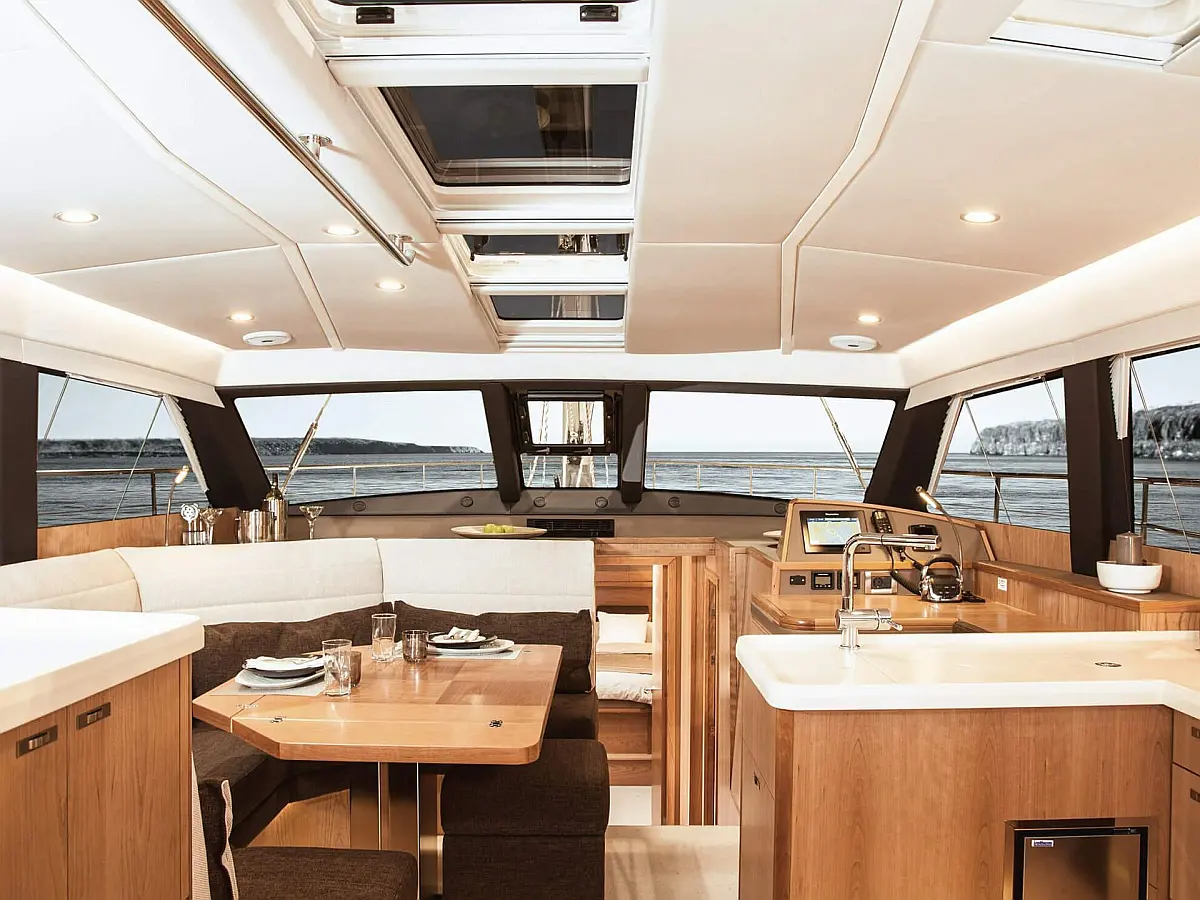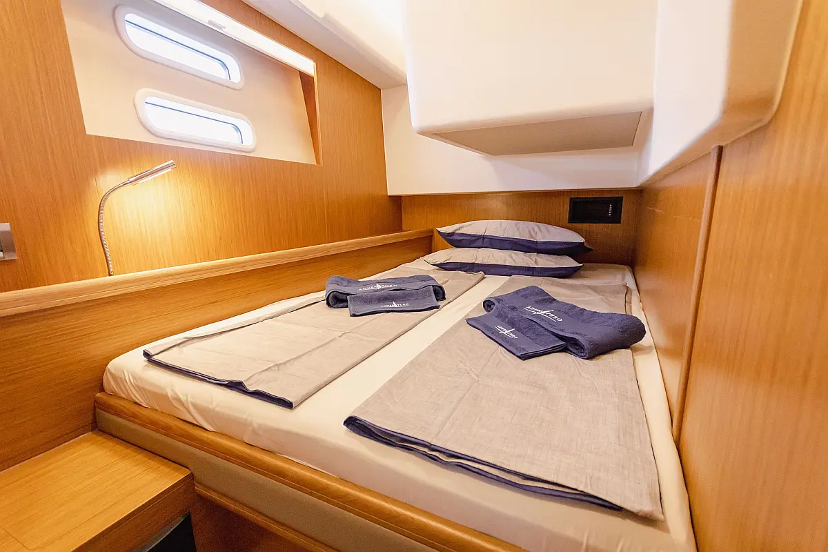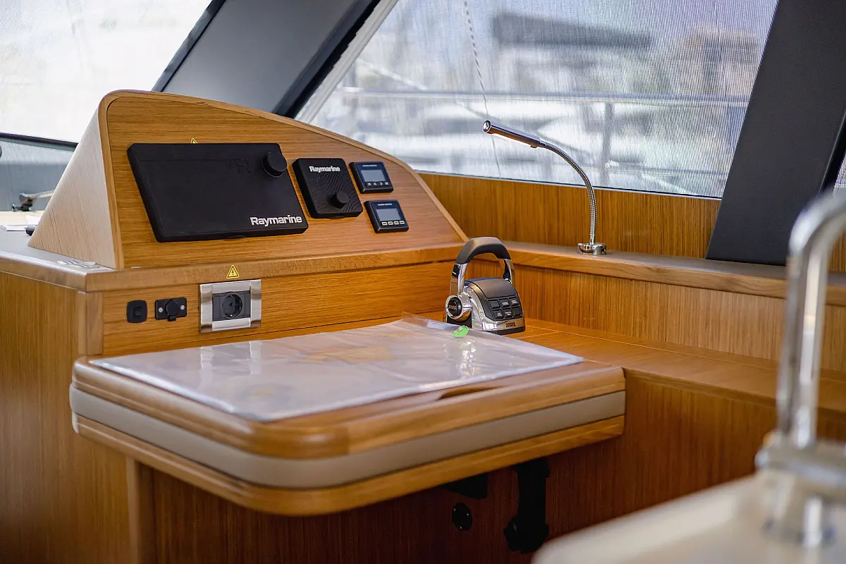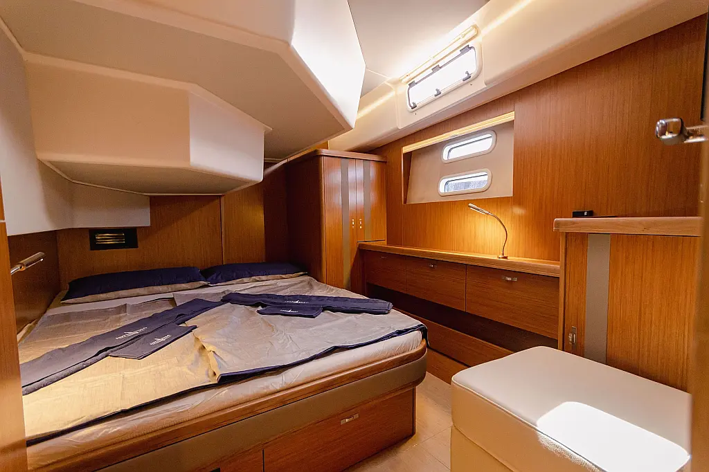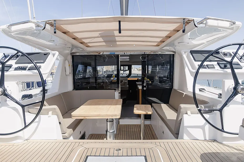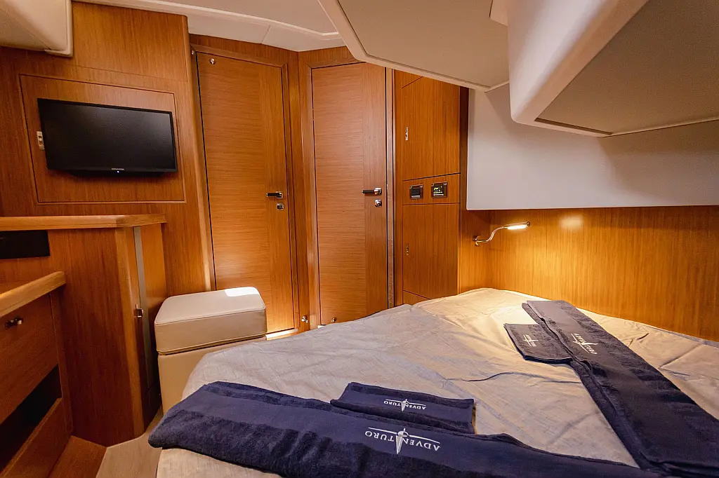 Kühlschrank, Wi-Fi und Internet, Heizung, Kaffeemaschine, Klimaanlage, Elektrische Toilette, Bimini, Beiboot, Fäkalientank, Sprayhood, Cockpit-Kissen, Elektrische Winch (Segel), Generator, Solar-Panele, Teak Cockpit, Teakdeck