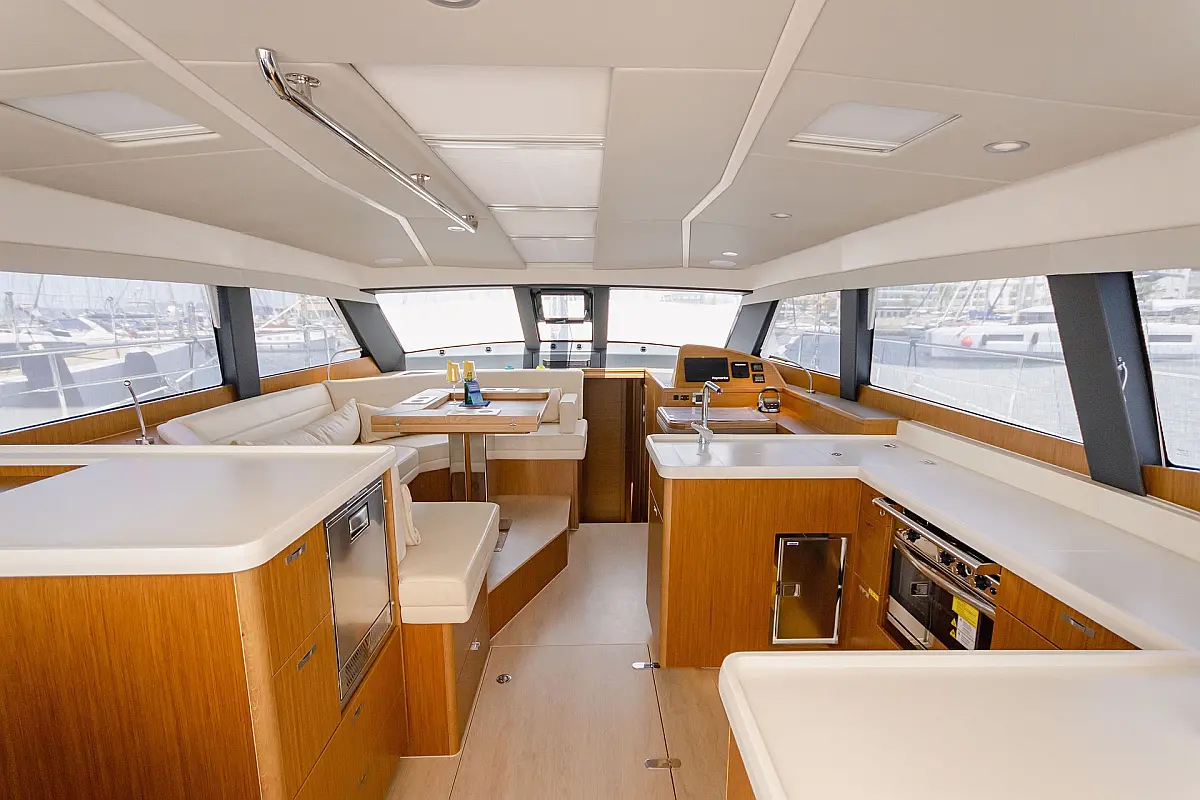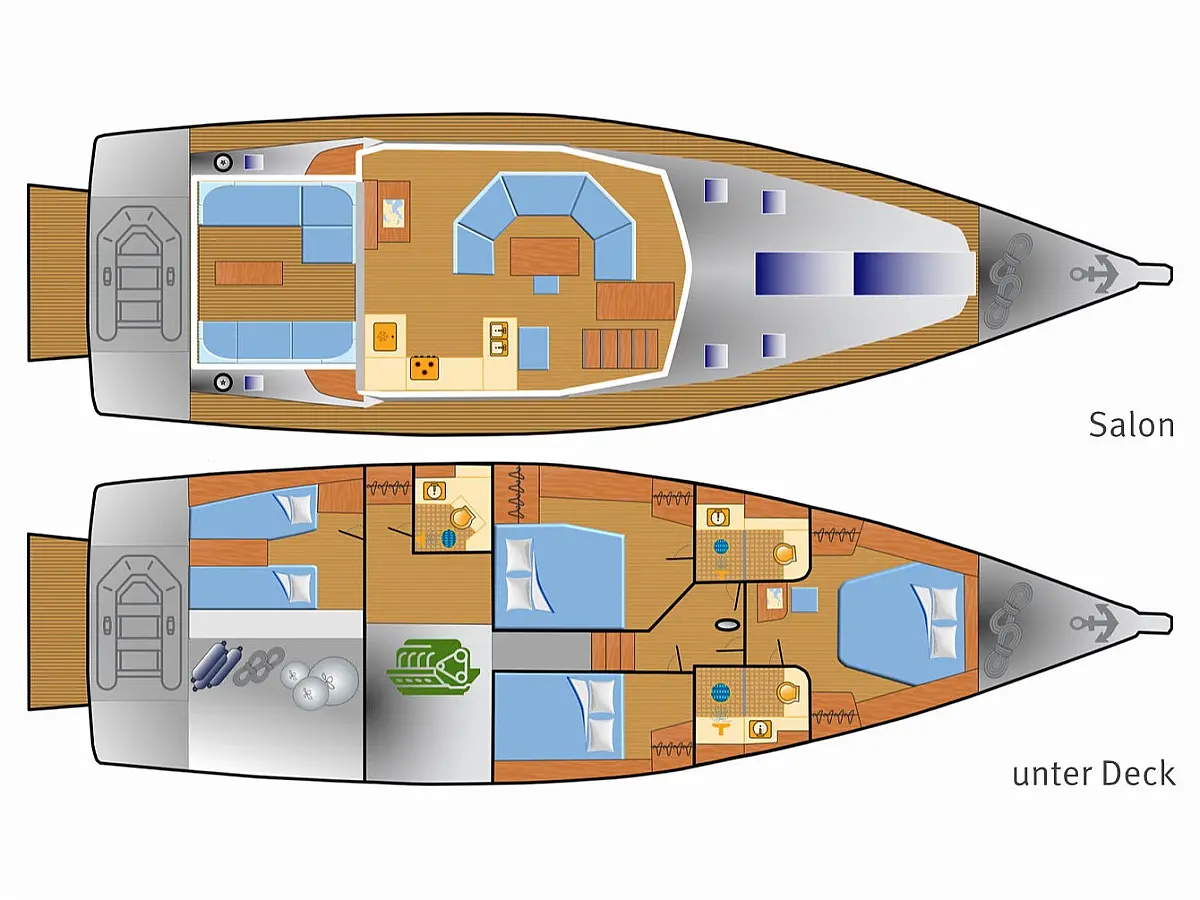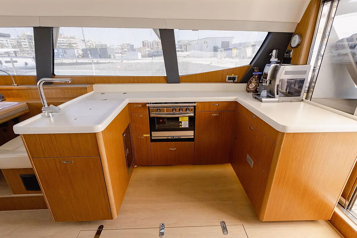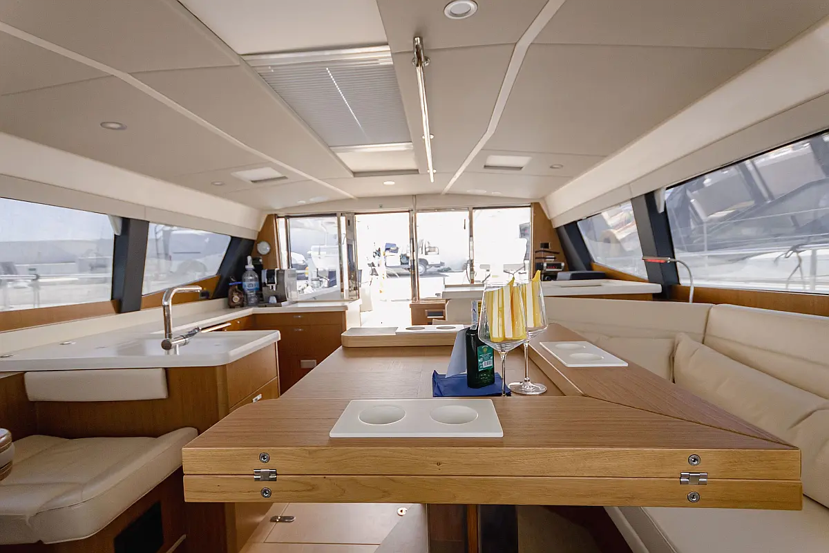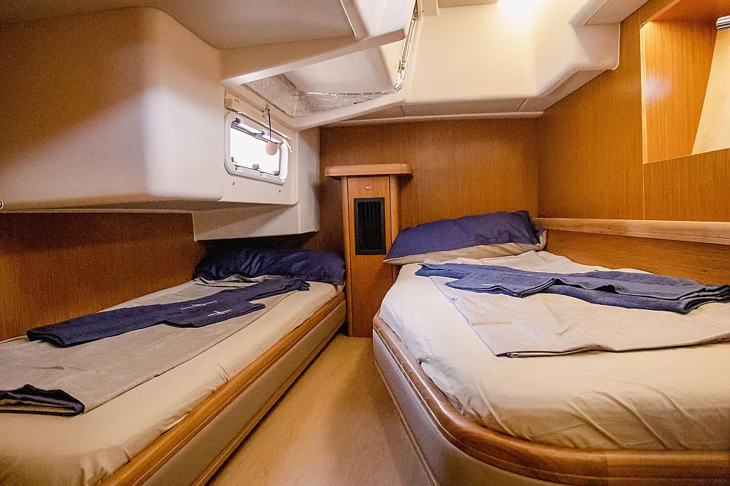 Kühlschrank, Wi-Fi und Internet, Heizung, Kaffeemaschine, Klimaanlage, Elektrische Toilette, Bimini, Beiboot, Fäkalientank, Sprayhood, Cockpit-Kissen, Elektrische Winch (Segel), Generator, Solar-Panele, Teak Cockpit, Teakdeck