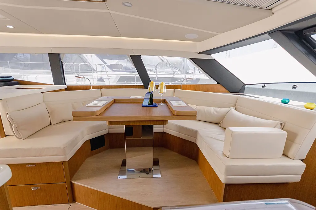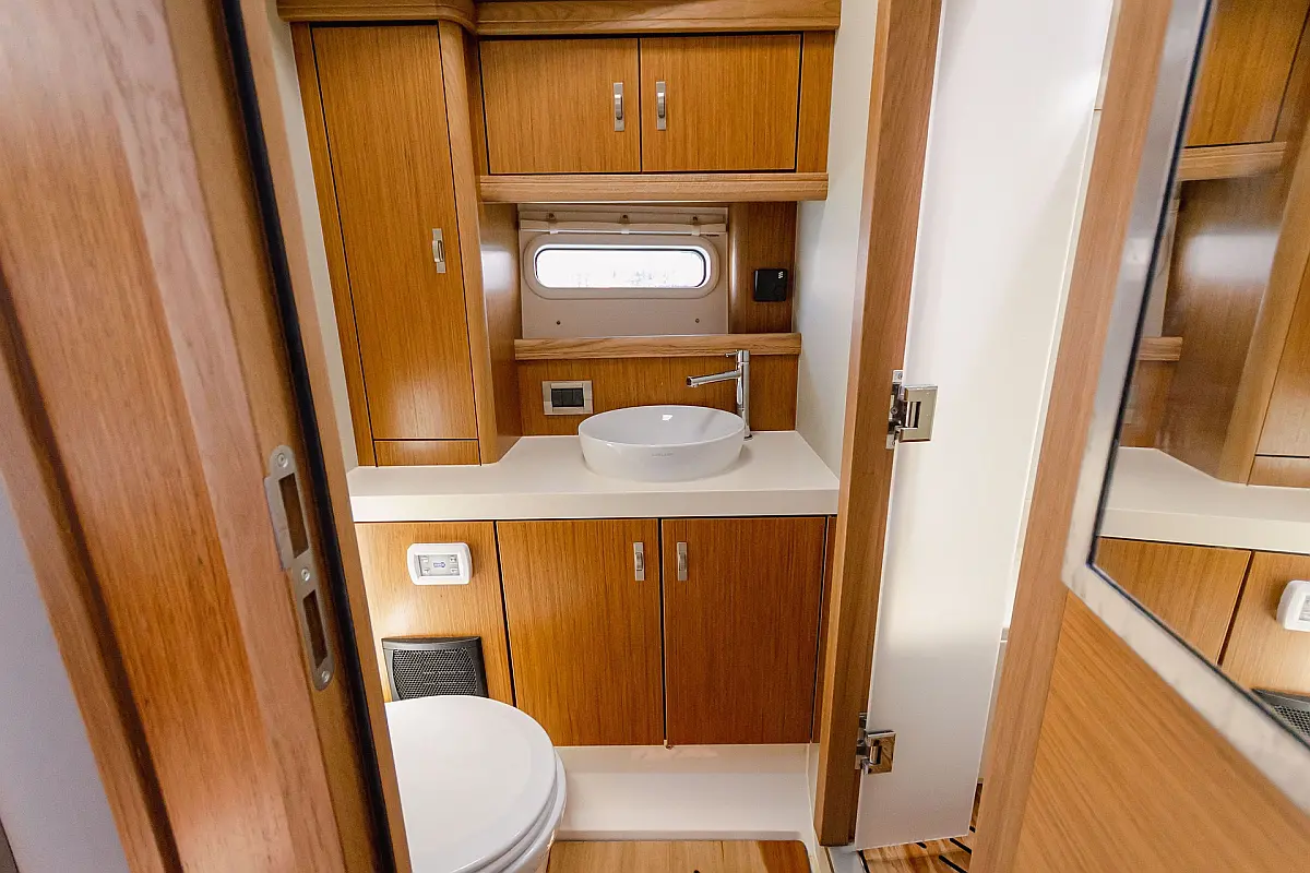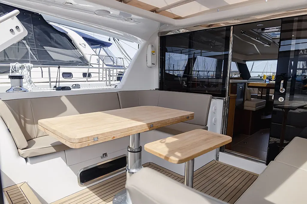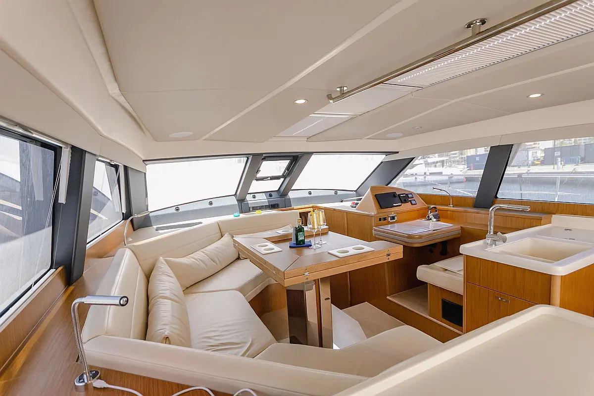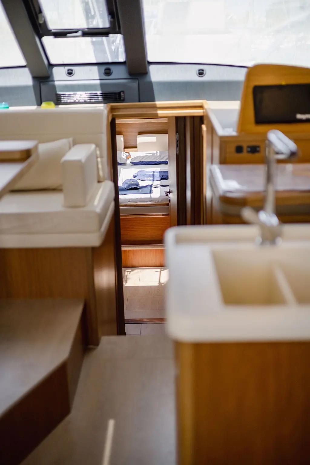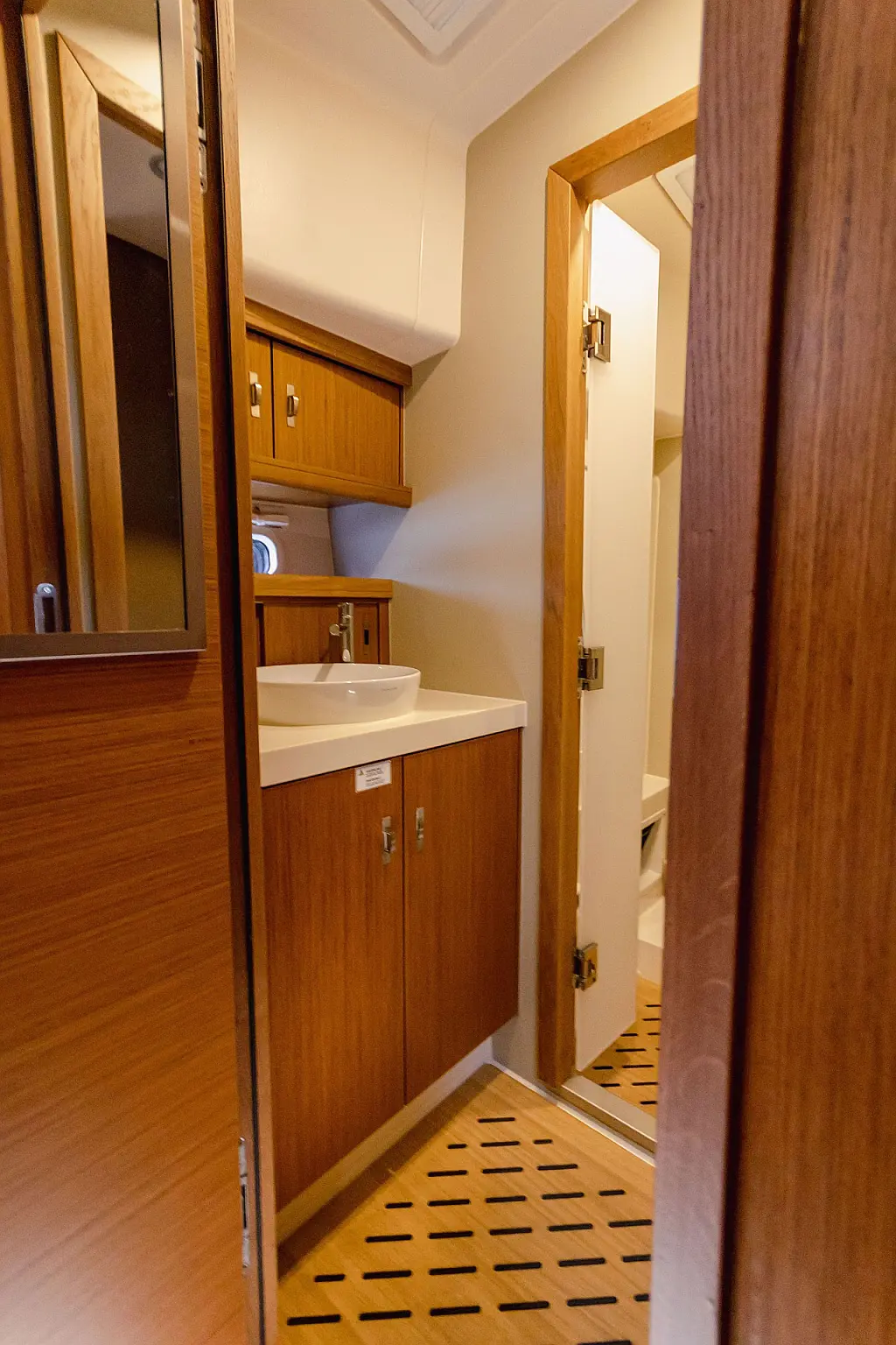 Kühlschrank, Wi-Fi und Internet, Heizung, Kaffeemaschine, Klimaanlage, Elektrische Toilette, Bimini, Beiboot, Fäkalientank, Sprayhood, Cockpit-Kissen, Elektrische Winch (Segel), Generator, Solar-Panele, Teak Cockpit, Teakdeck