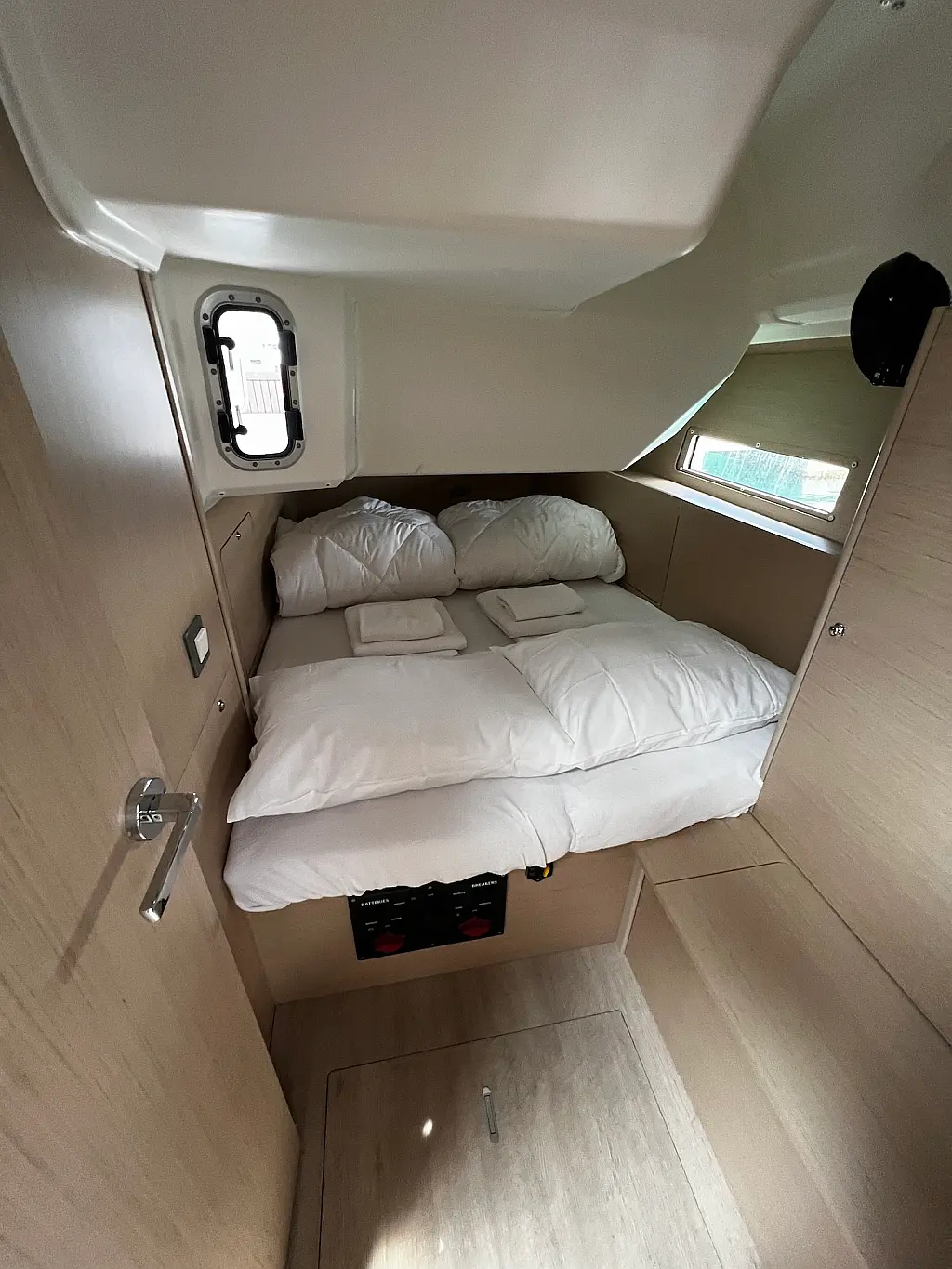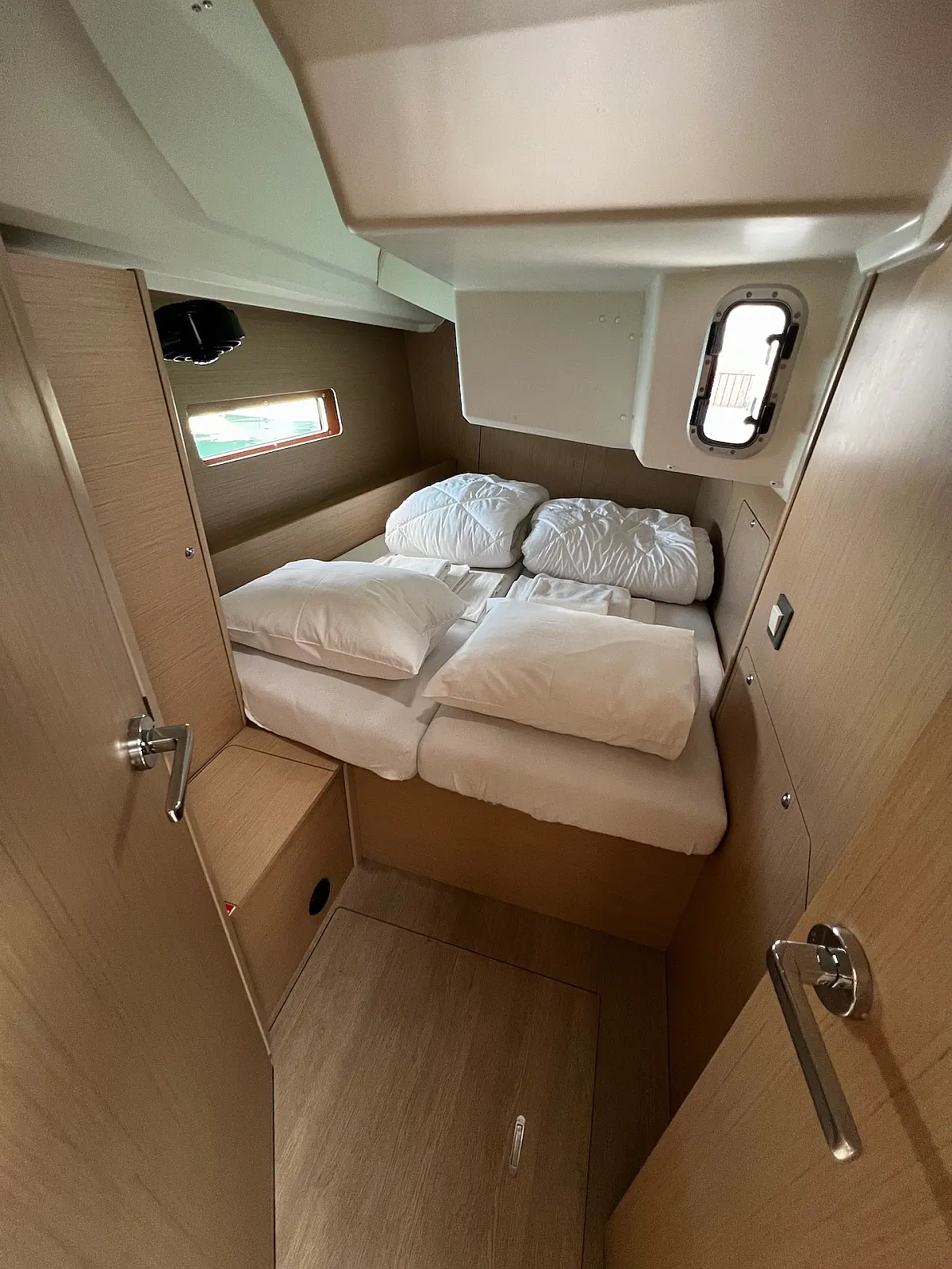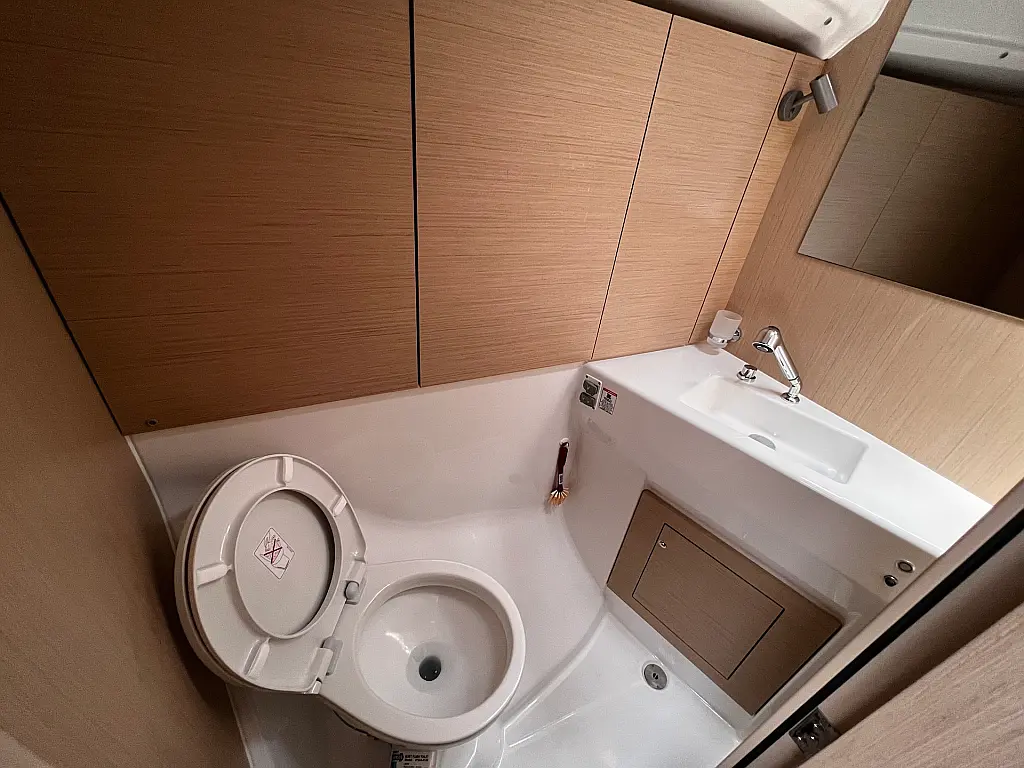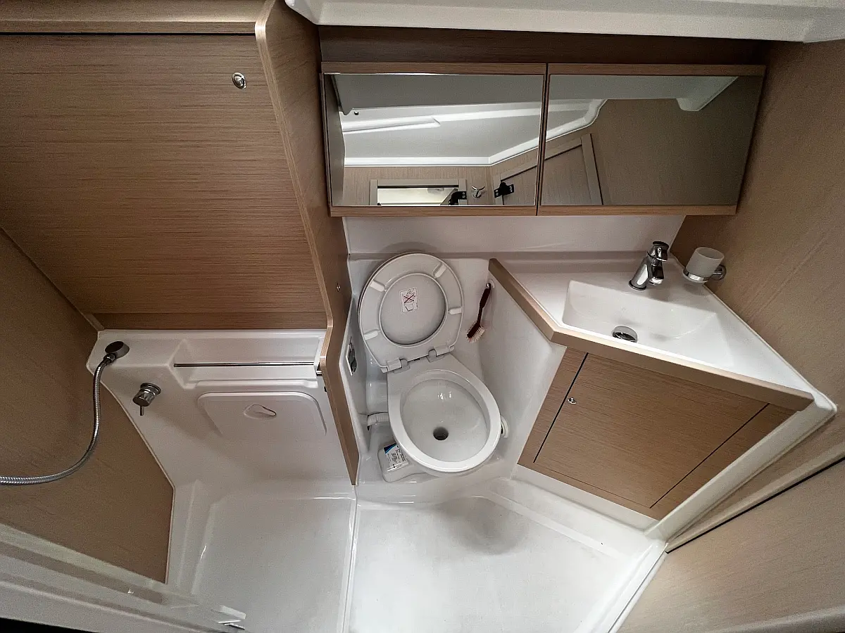 Kühlschrank, Beiboot, Heizung, Solar-Panele, Elektrische Toilette, Bimini, Badeplattform, Cockpit-Kissen, Sprayhood