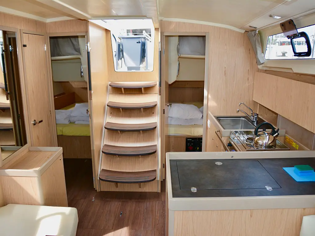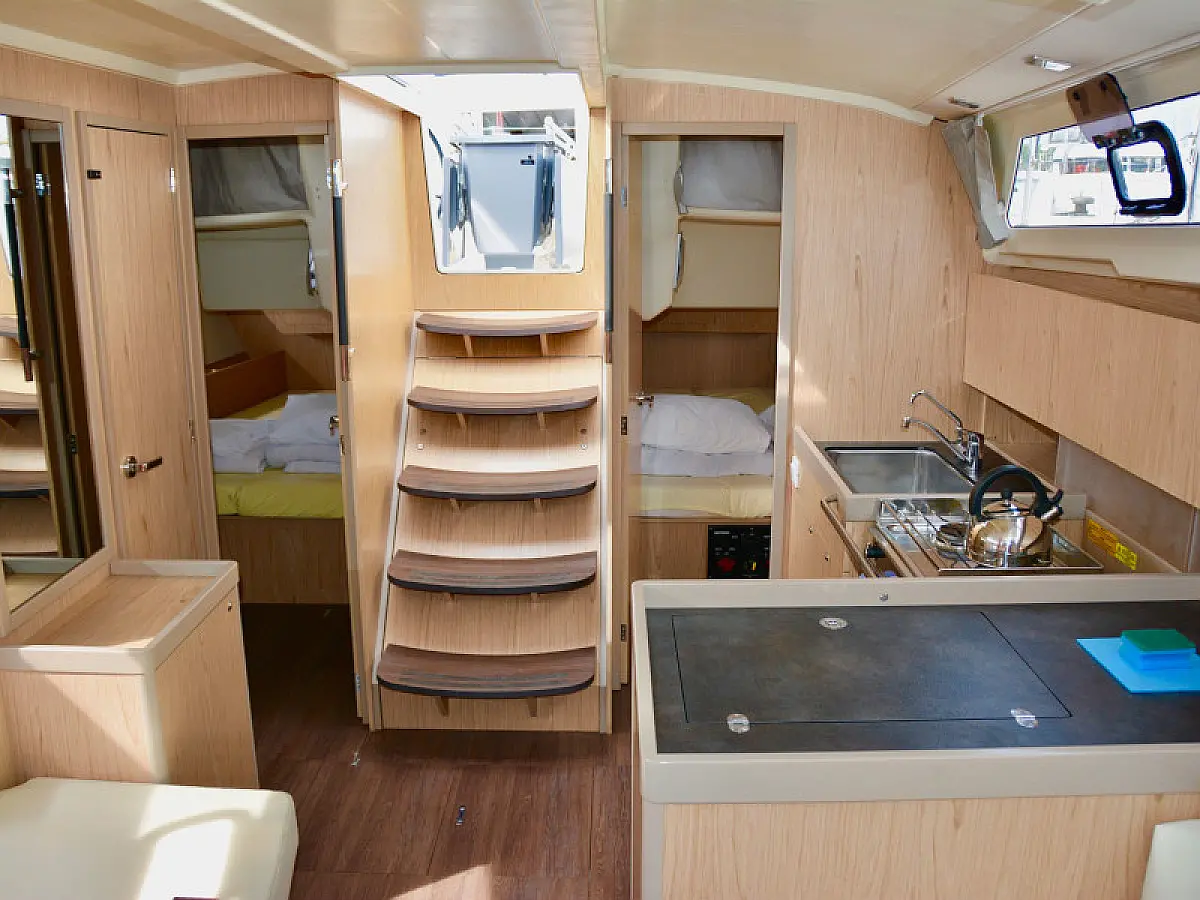 Kühlschrank, Beiboot, Solar-Panele, Bimini, Badeplattform, Sprayhood