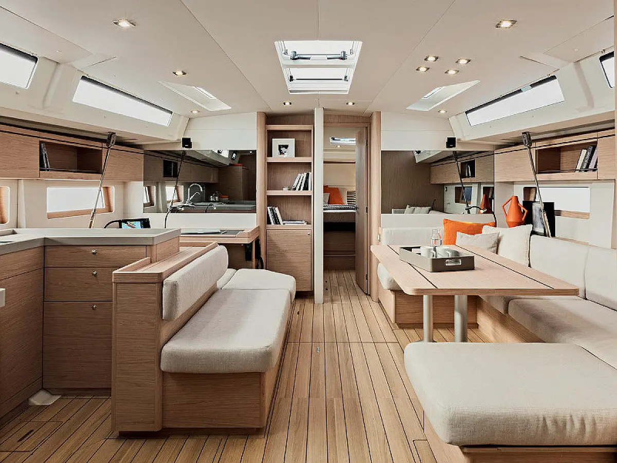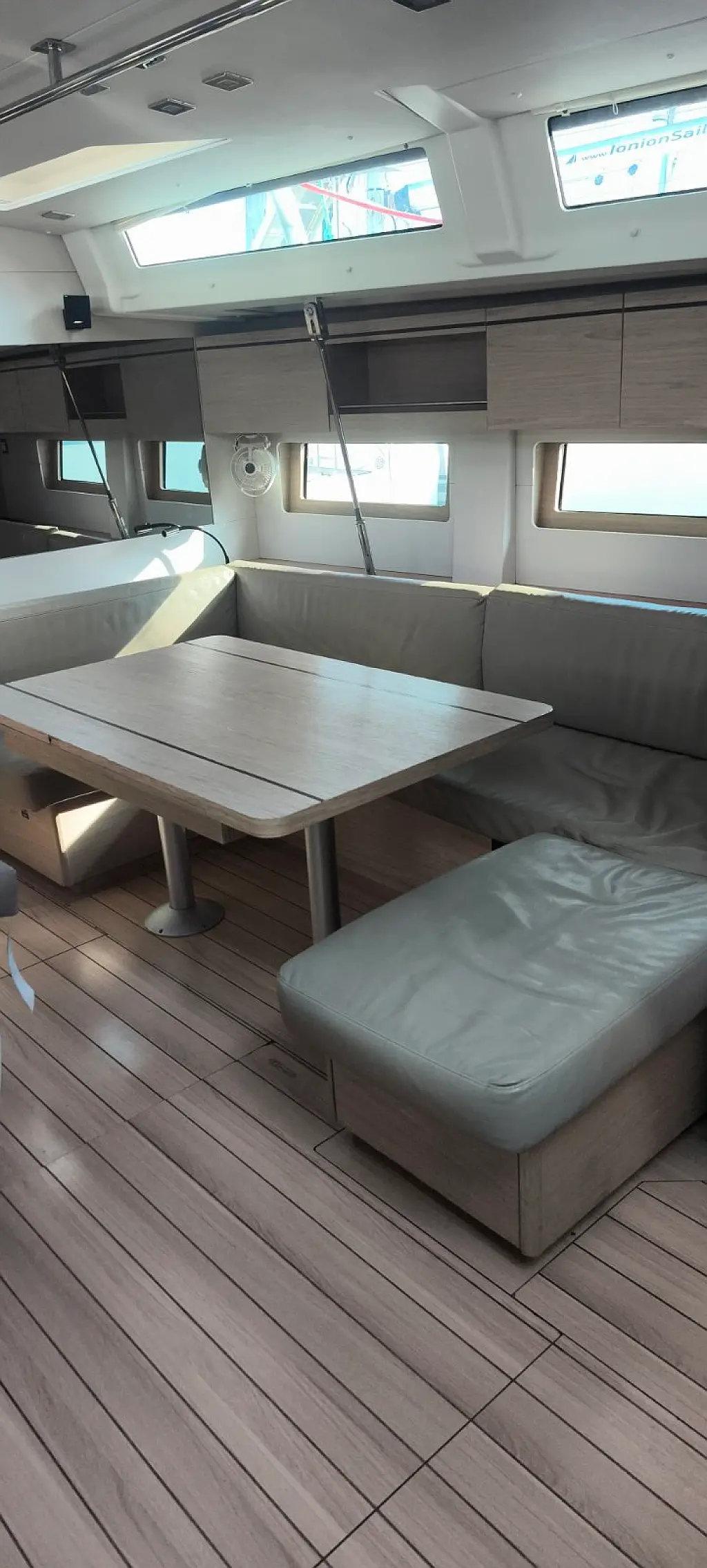 Klimaanlage, Umwandelbarer Tisch, Sprayhood, Bimini, Beiboot, Lautsprecher im Cockpit, Elektrische Winch (Segel), Elektrische Toilette, Solar-Panele, Generator, Cockpit-Kissen, Teak Cockpit