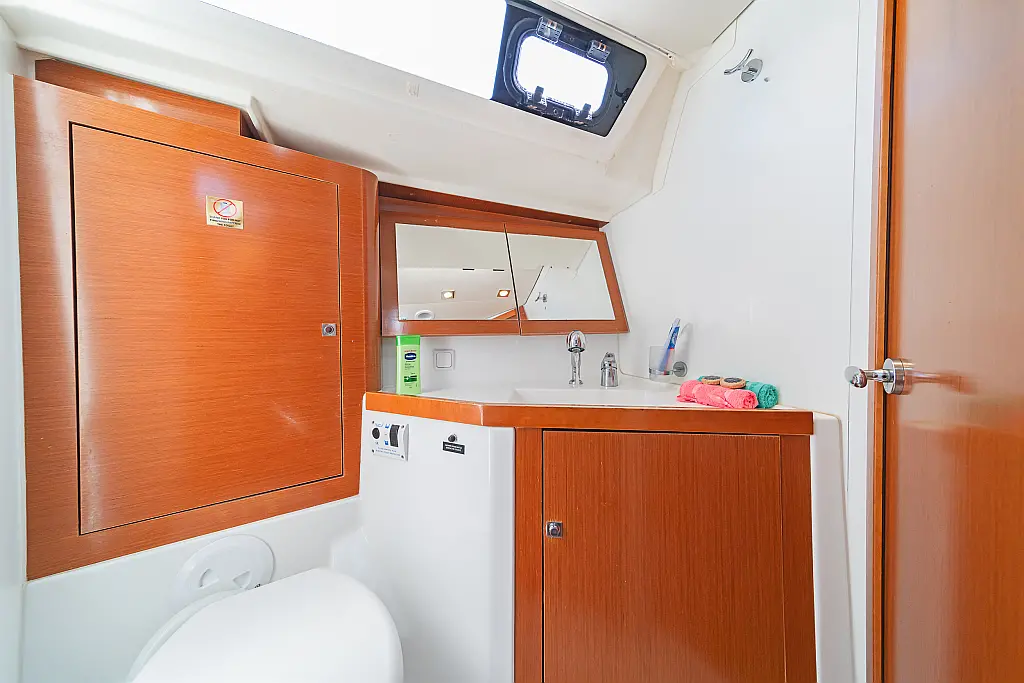 Cockpit-Kissen, Sprayhood, Bimini, Elektrische Toilette, Kühlschrank, Solar-Panele, Lautsprecher im Cockpit