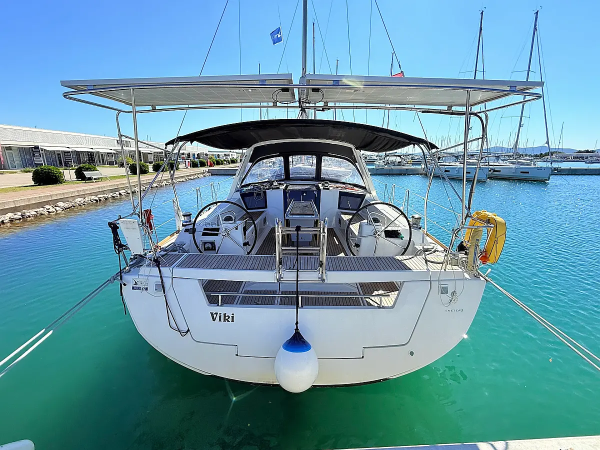 Kühlschrank, Beiboot, Heizung, Solar-Panele, Bimini, Cockpit-Kissen, Teak Cockpit, Badeplattform, Sprayhood