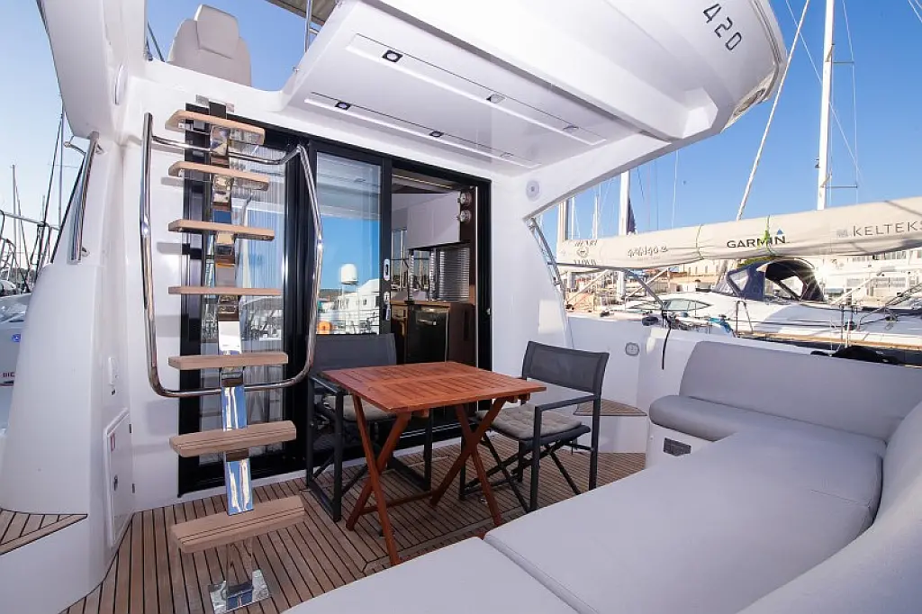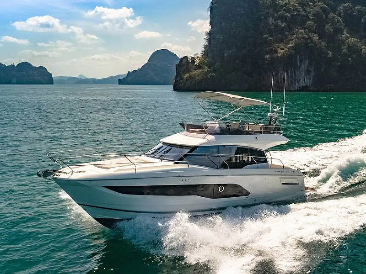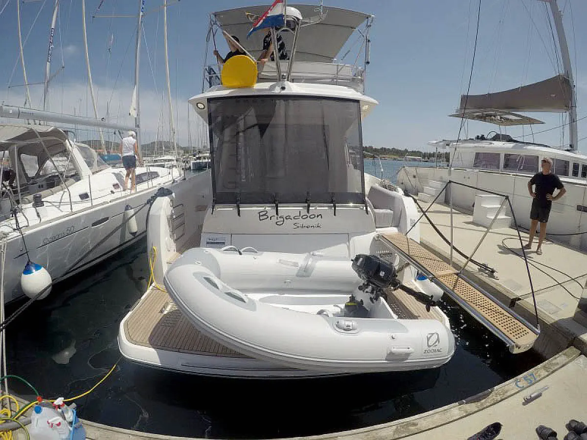 Generator, Heizung, Klimaanlage, Cockpit-Kissen, Außenbordmotor, Beiboot, Hydraulische Gangway, Flybridge, Wi-Fi und Internet