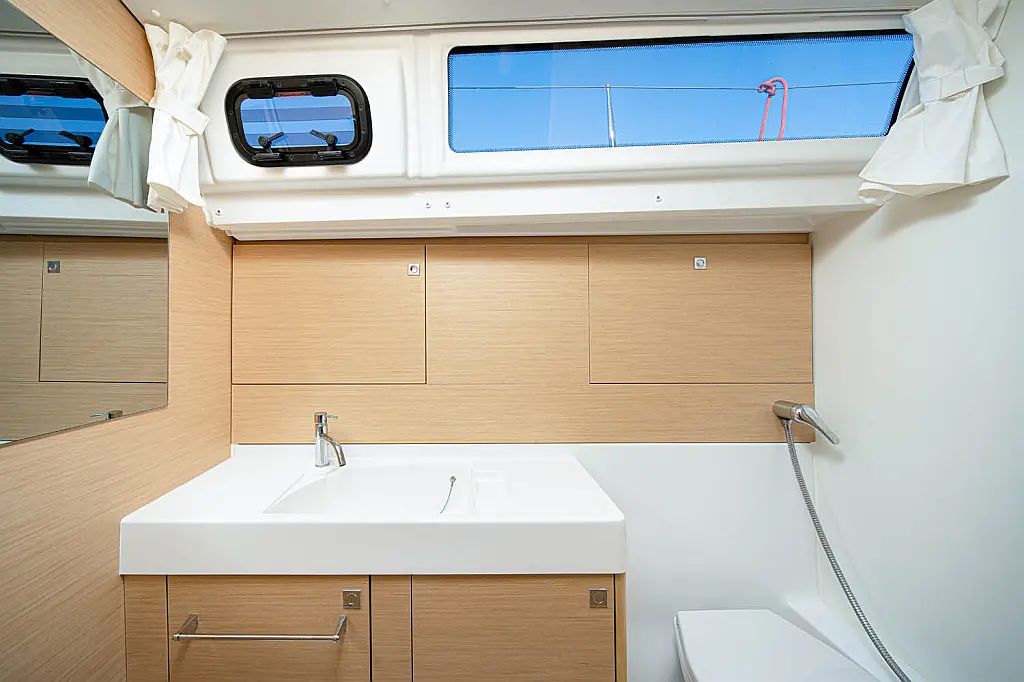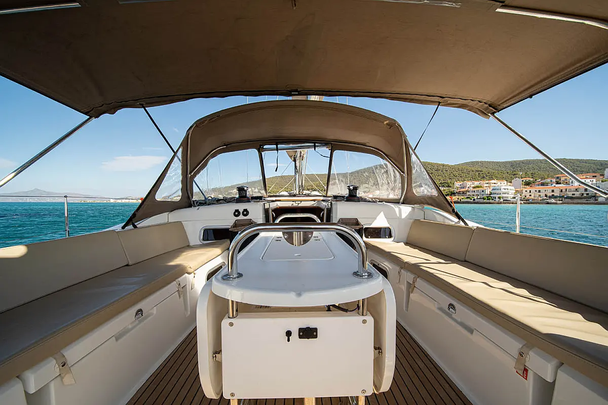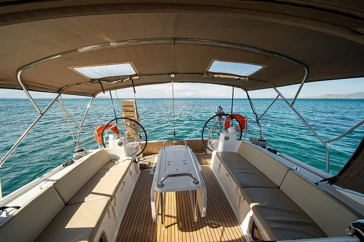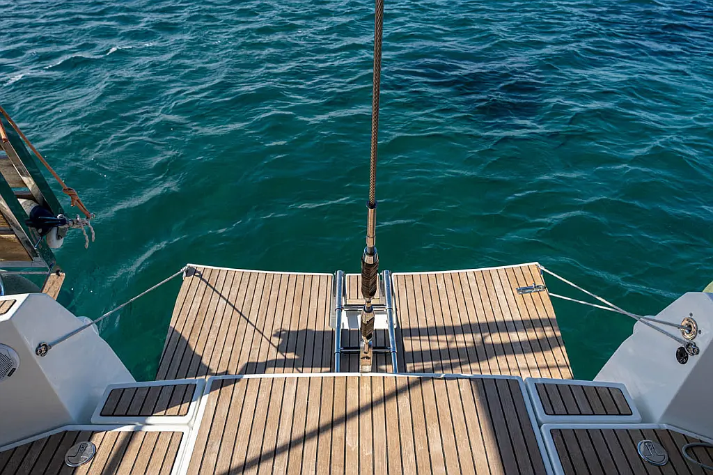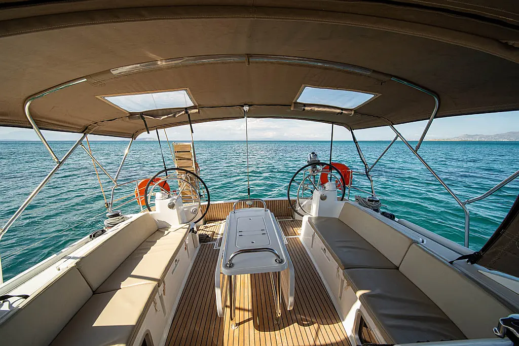 Beiboot, Badeplattform, Klimaanlage, Bimini, Sprayhood, Cockpit-Kissen, Elektrische Winch (Segel), Elektrische Toilette, Außenbordmotor, Teak Cockpit, Generator