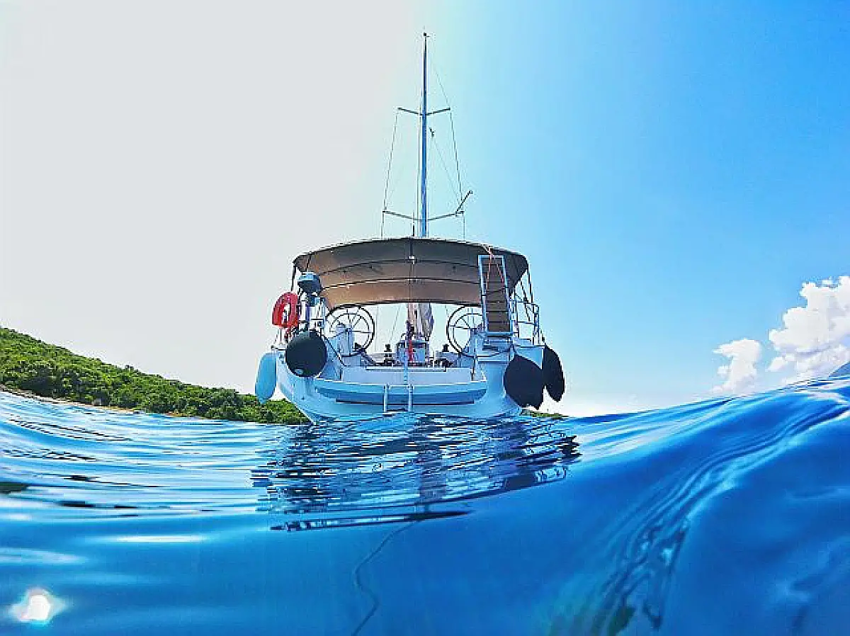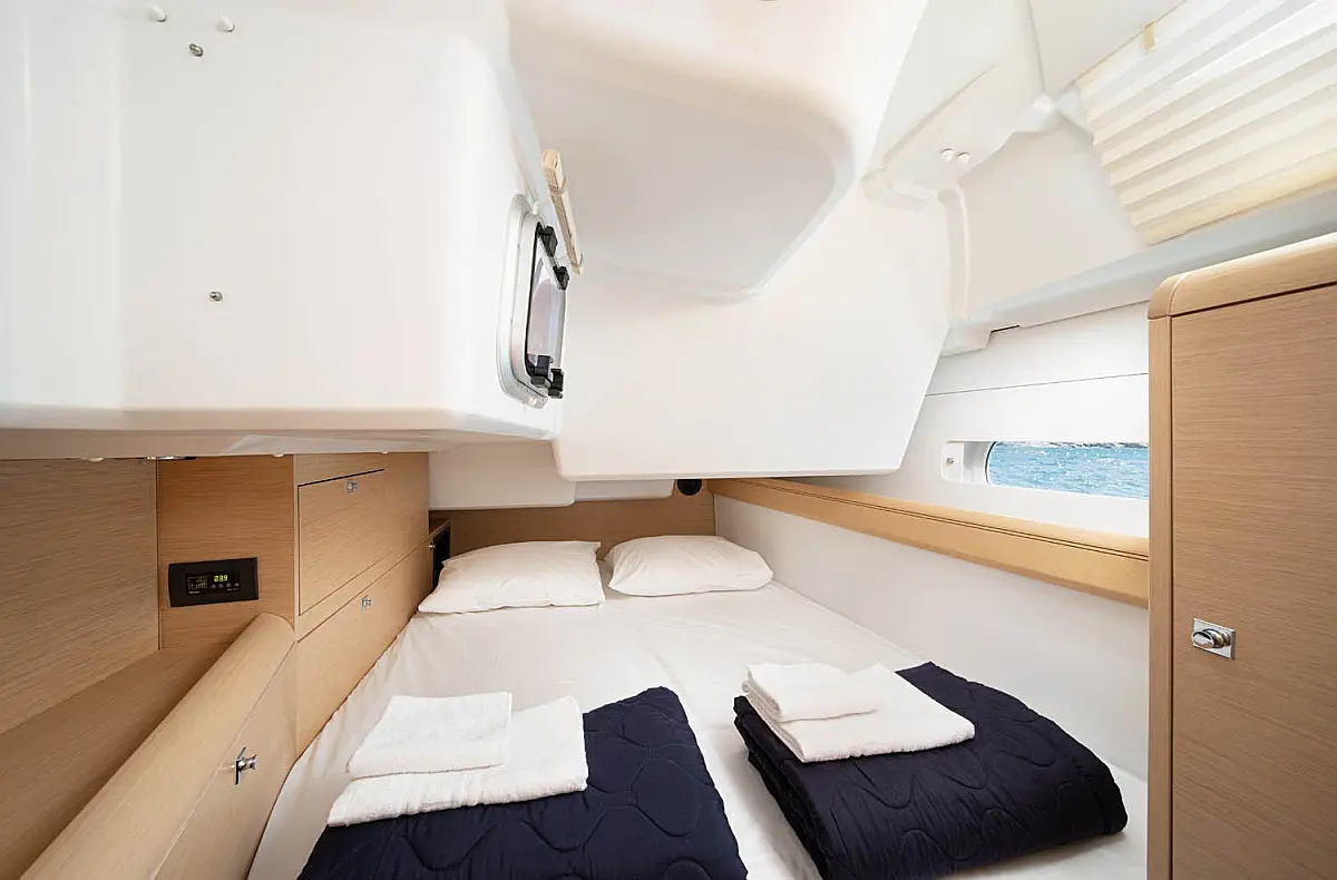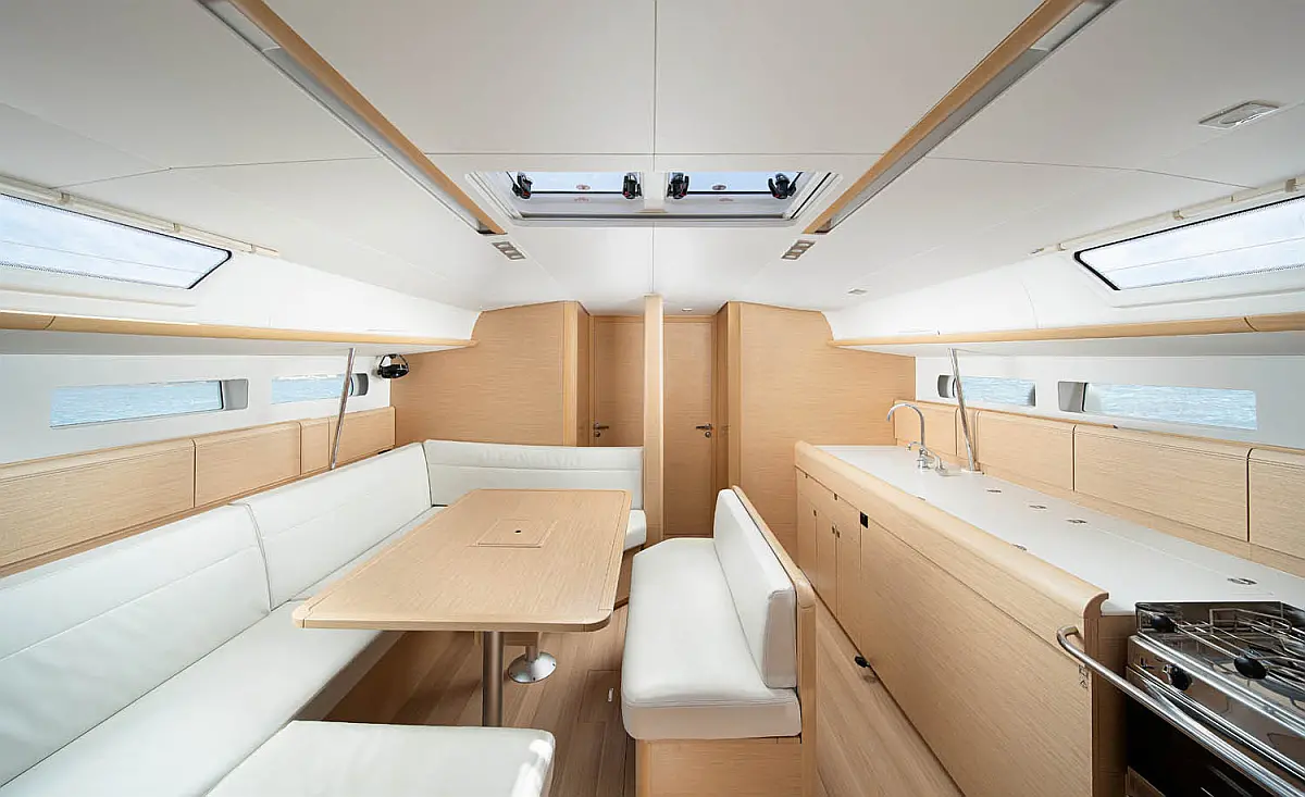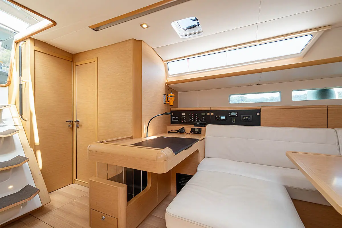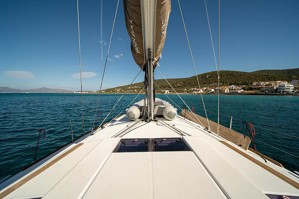 Beiboot, Badeplattform, Klimaanlage, Bimini, Sprayhood, Cockpit-Kissen, Elektrische Winch (Segel), Elektrische Toilette, Außenbordmotor, Teak Cockpit, Generator