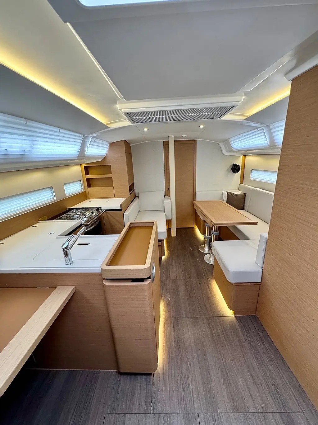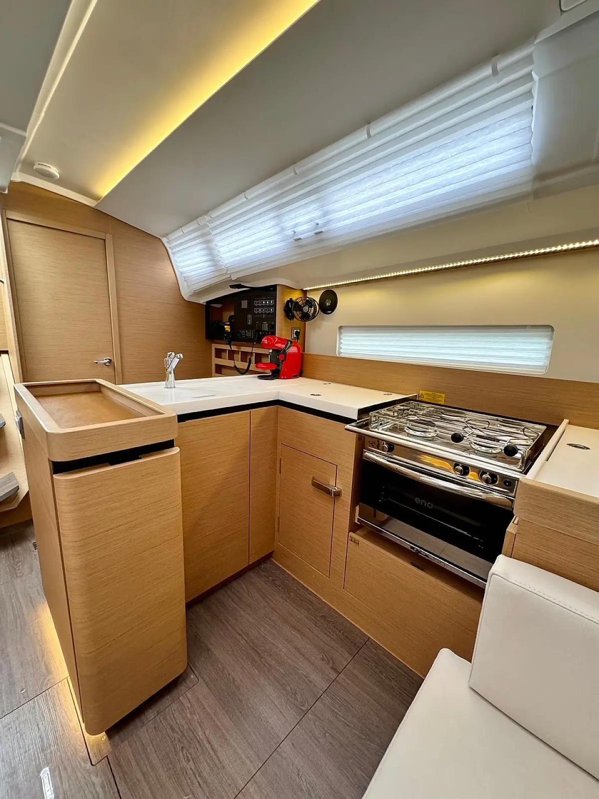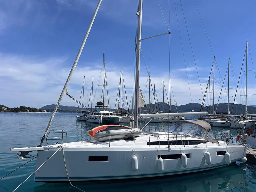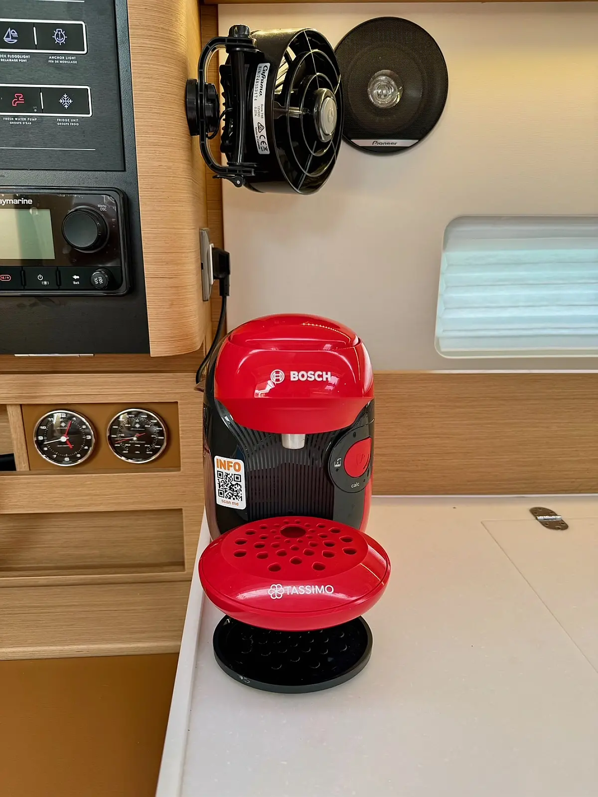 Bimini, Sprayhood, Solar-Panele, Beiboot, Außenbordmotor, Cockpit-Kissen, Elektrische Toilette, Inverter, Wassermacher, Wi-Fi und Internet, Kaffeemaschine, Eismaschine, Kühlschrank