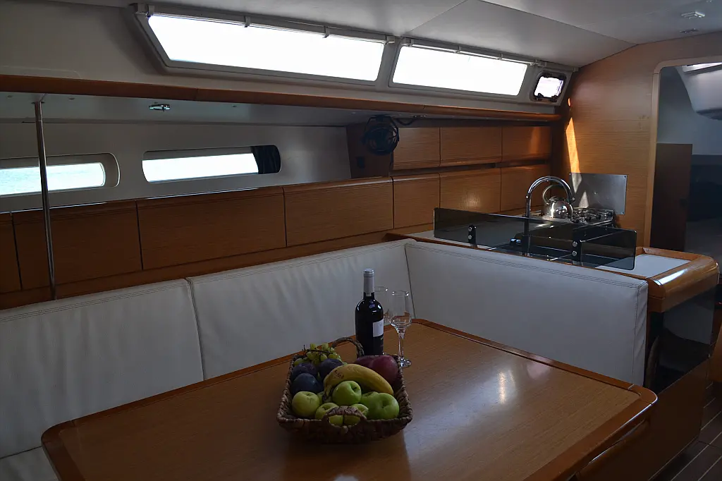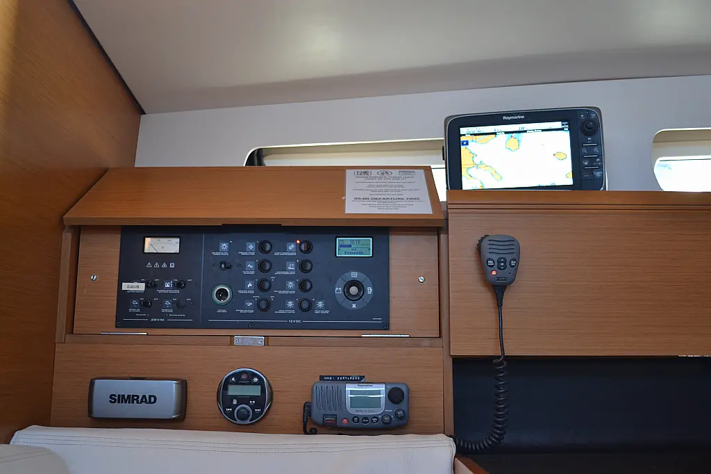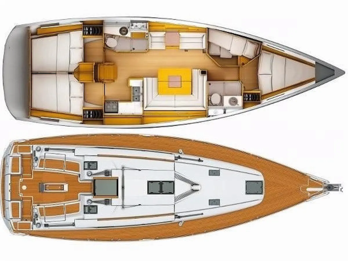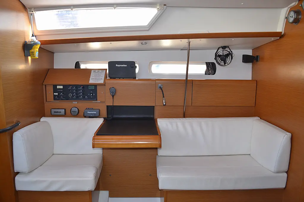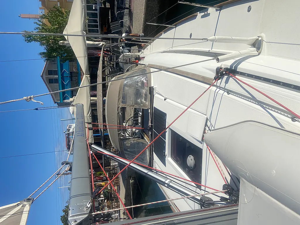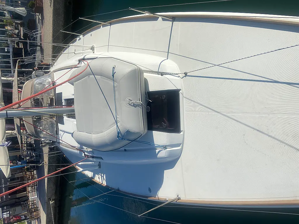 Lautsprecher im Cockpit, Solar-Panele, Elektrische Toilette, Elektrische Winch (Segel), Sprayhood, Bimini, Cockpit-Kissen, Beiboot, Teak Cockpit